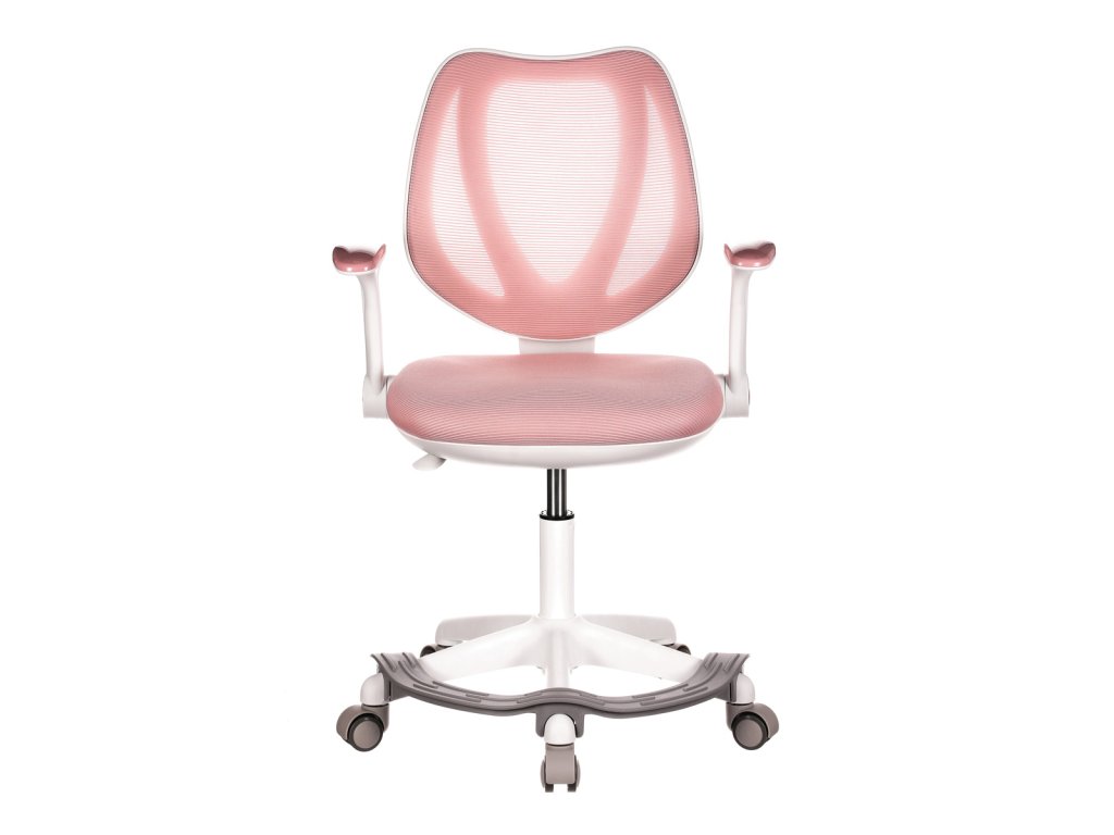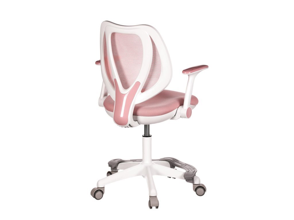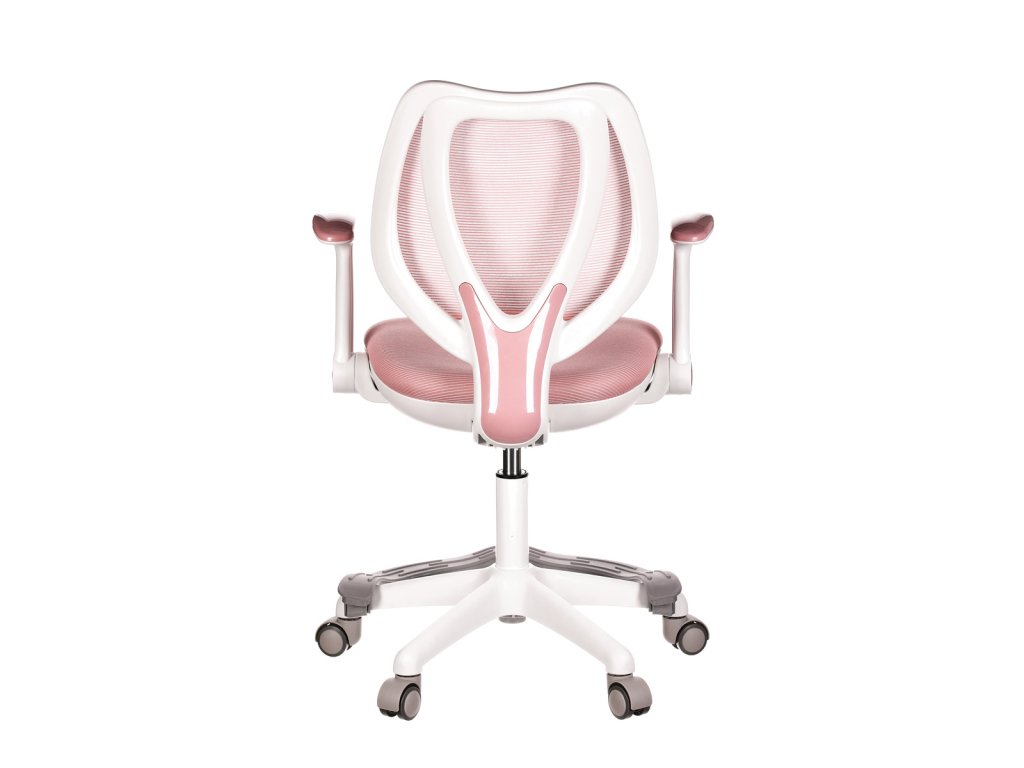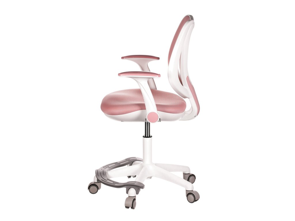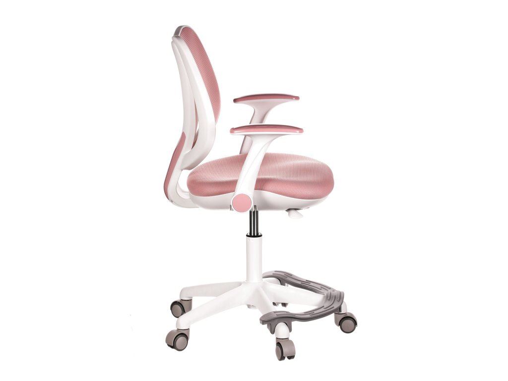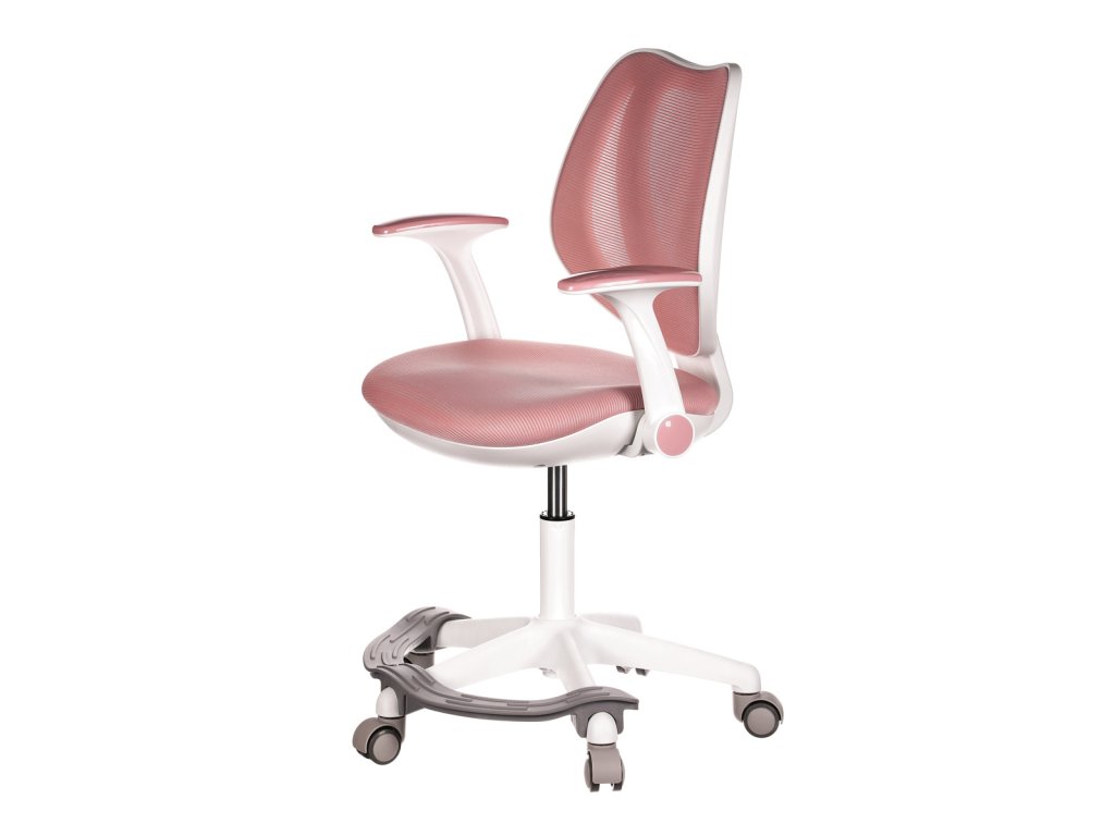 Dětská židle v příjemných pastelových barvách spolu s bílou kostrou nabízí jednoduchý a elegantní design. Židle má pevný opěrák potažený prodyšným síťovaným materiálem. Sedák ve stejném potahu poskytuje dostatek pohodlí díky svému vyměkčení. Pro pocit pohodlí slouží pevné područky, které jsou na své vrchní části opatřeny lesklým plastovým povrchem v barvě potahového materiálu. Důležitá je také integrovaná opěra nohou, která přispívá k pohodlnému sezení. Židle je opatřena speciálními funkčními kolečky, která se při zatížení automaticky zablokují, což zabraňuje nechtěným pohybům židle.Doplňkové parametry