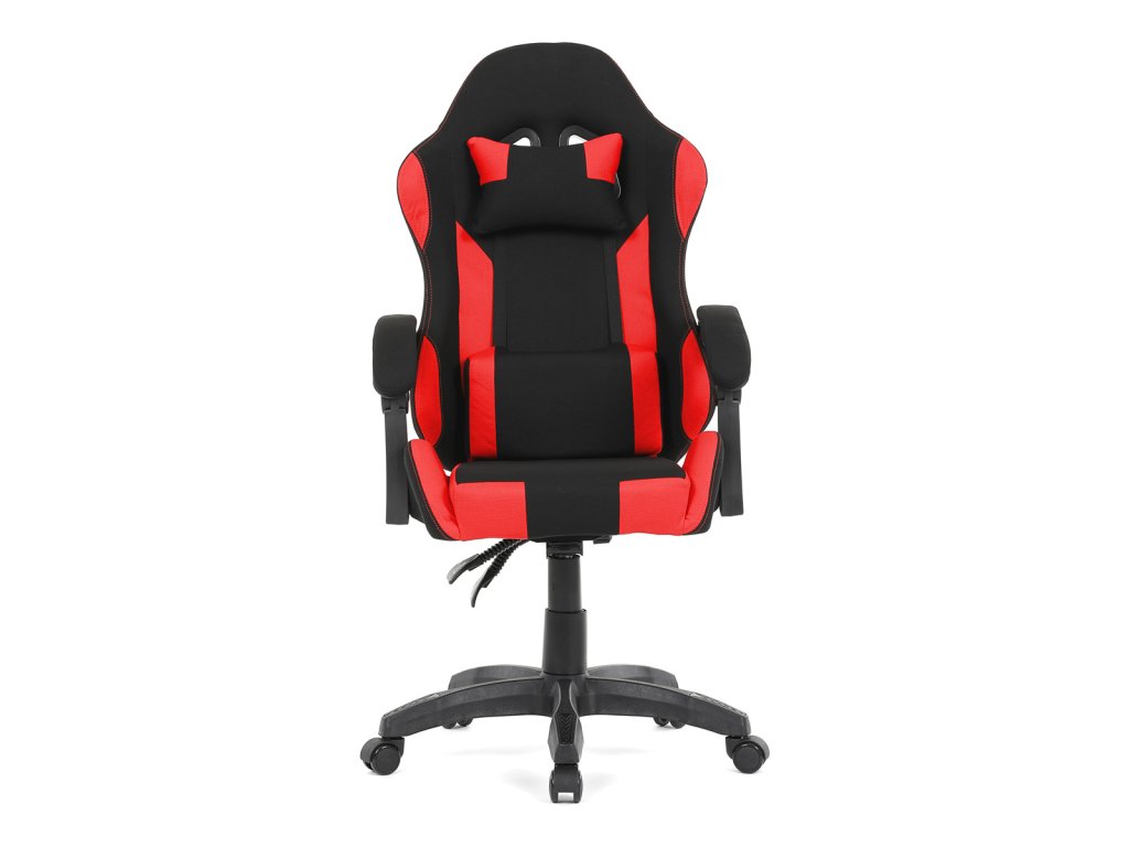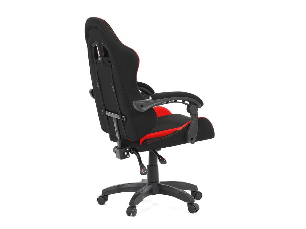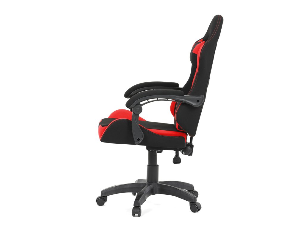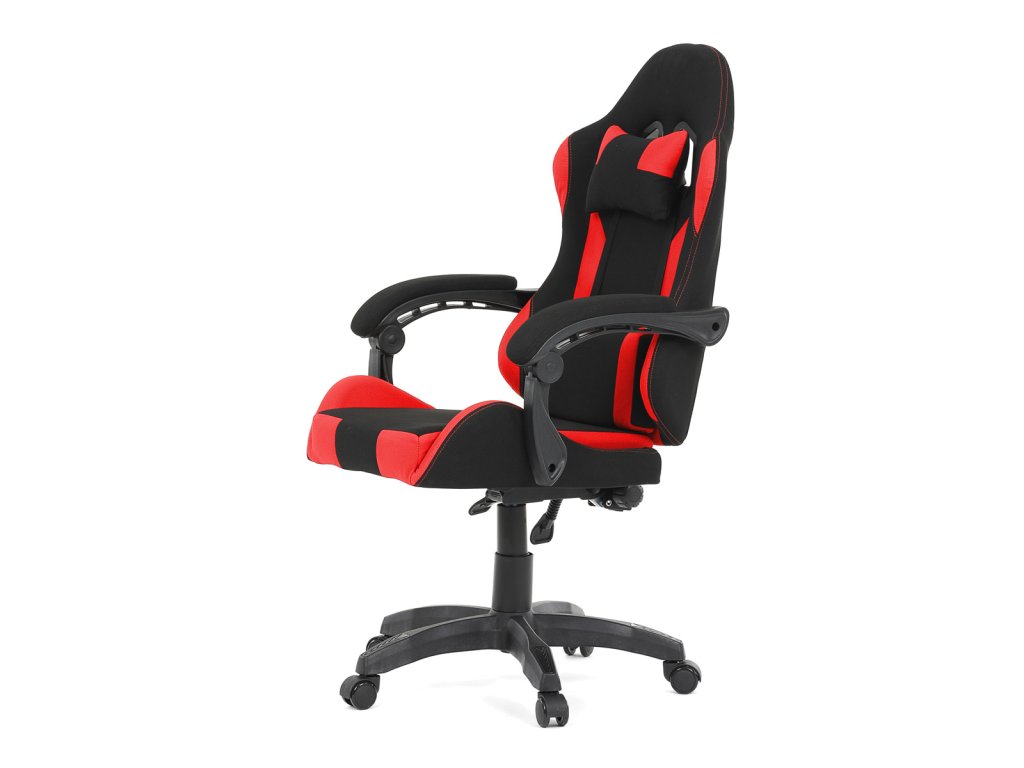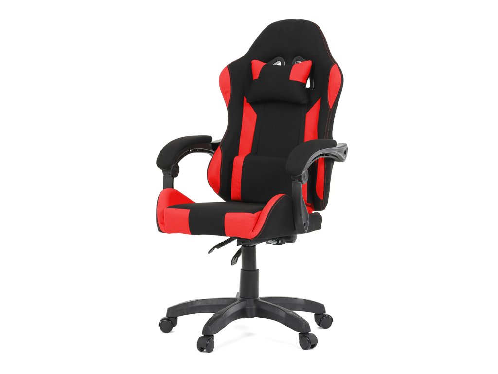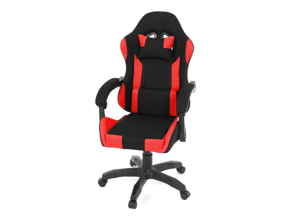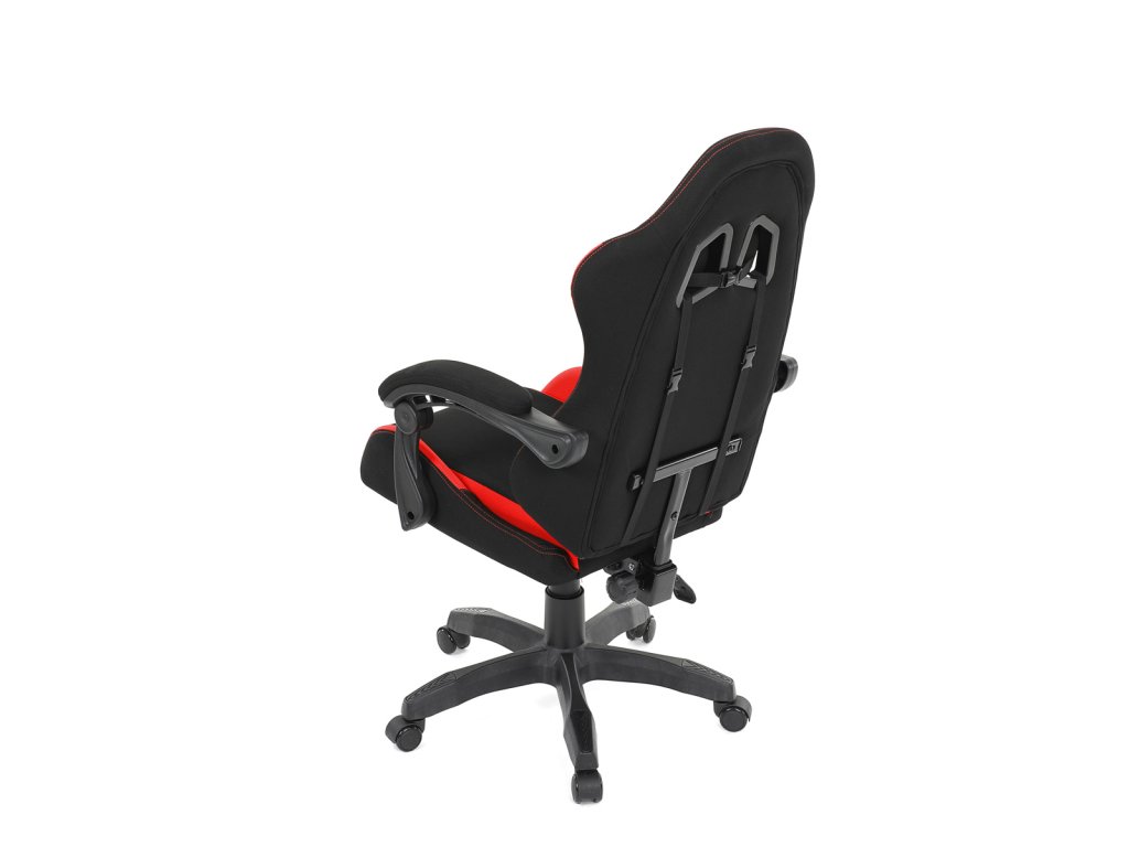 Herní křeslo, synchronní mechanismus, černá a červená látka, plast. kříž
