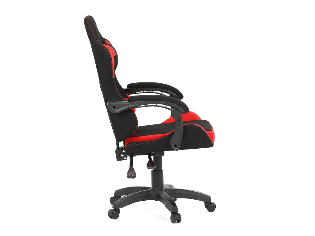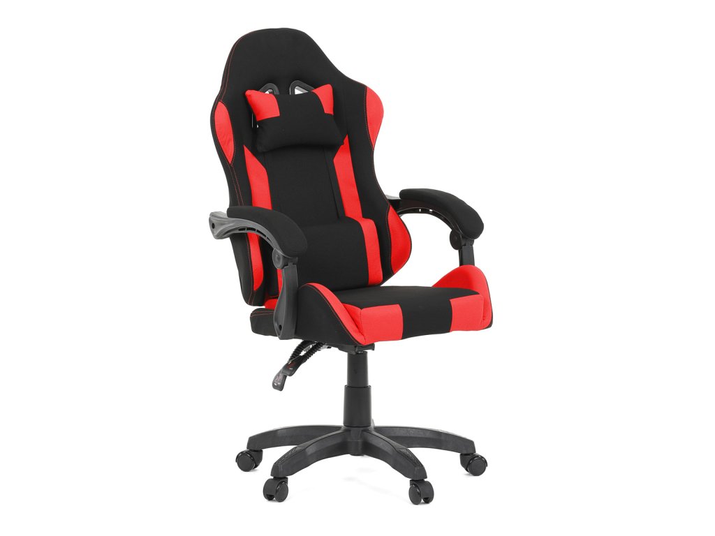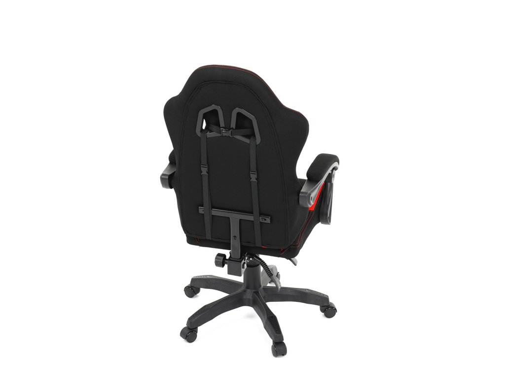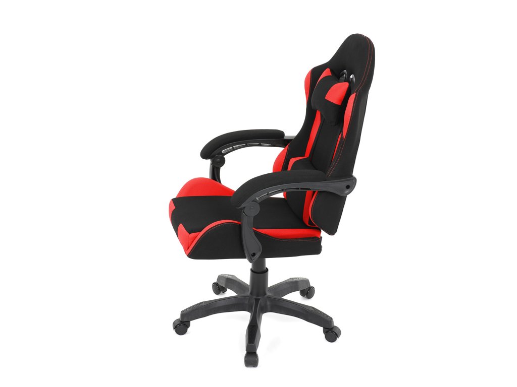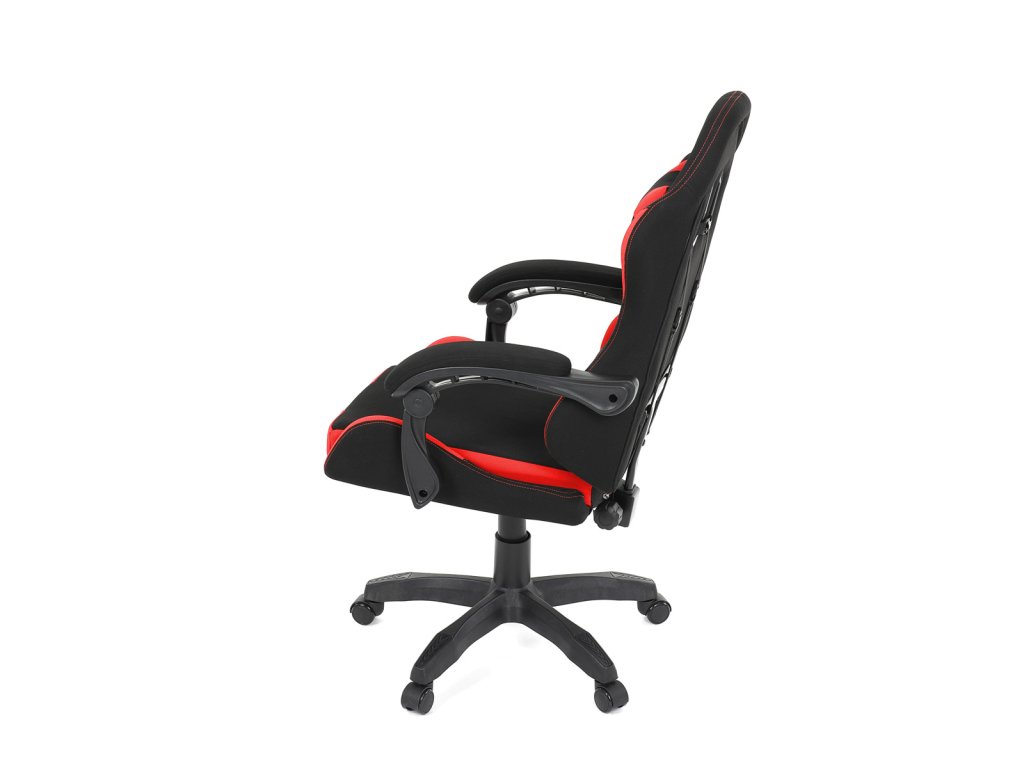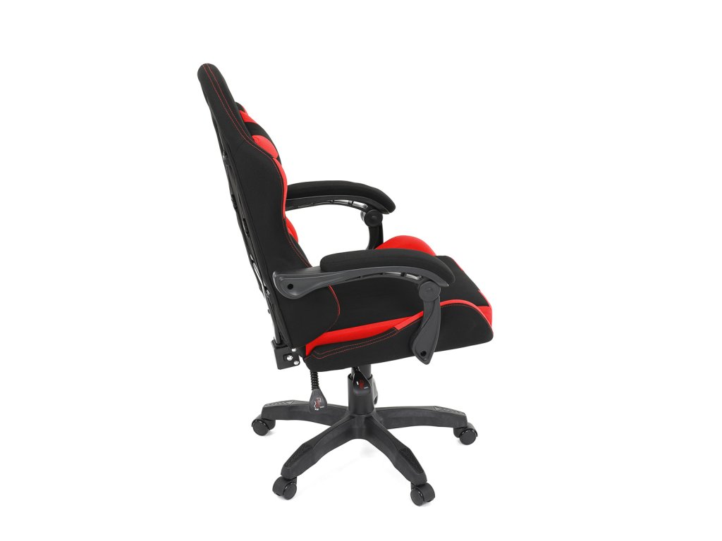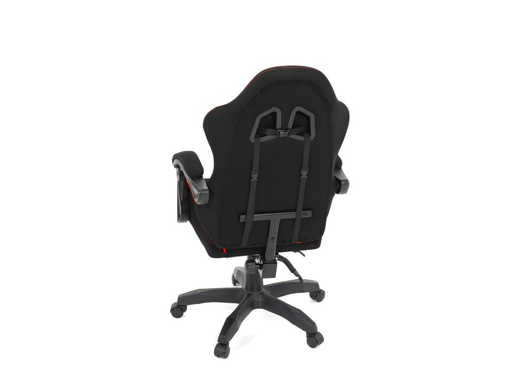 Herní křeslo, synchronní mechanismus, černá a červená látka, plast. kříž