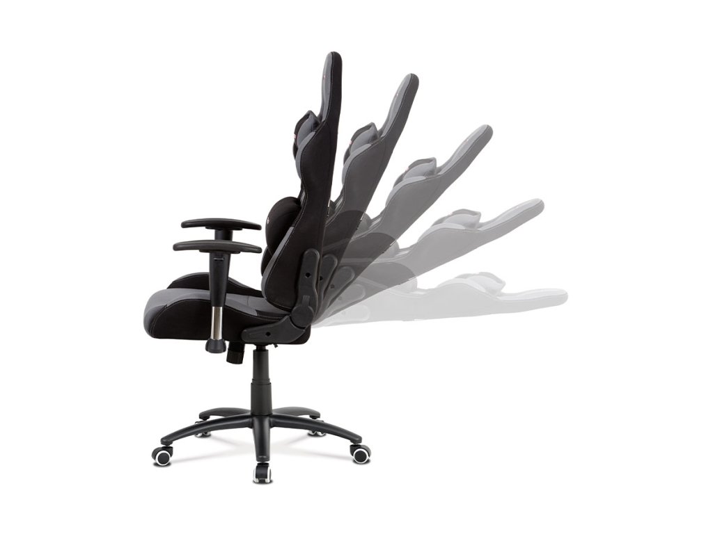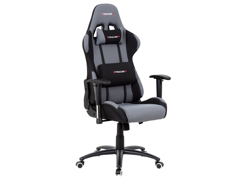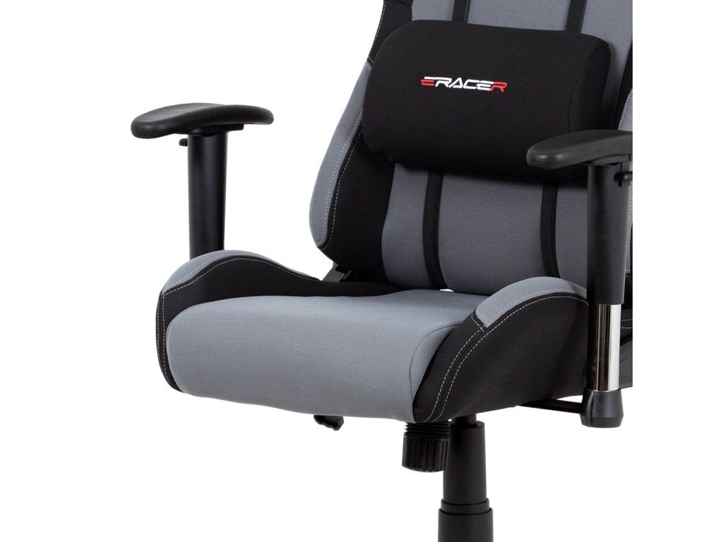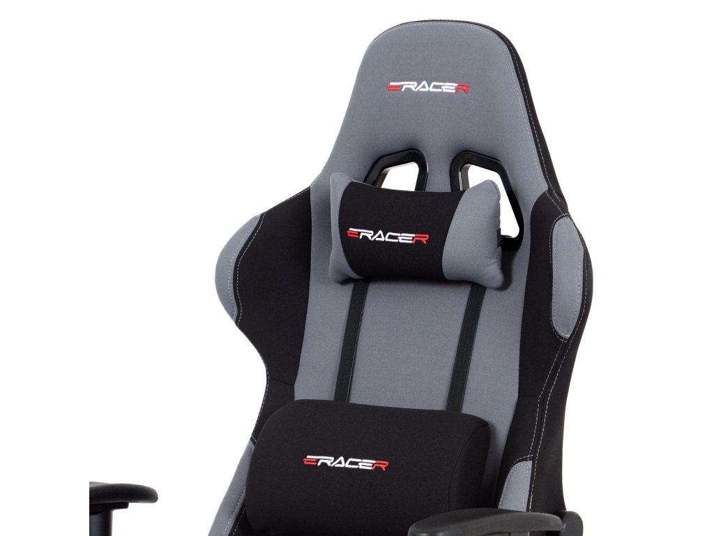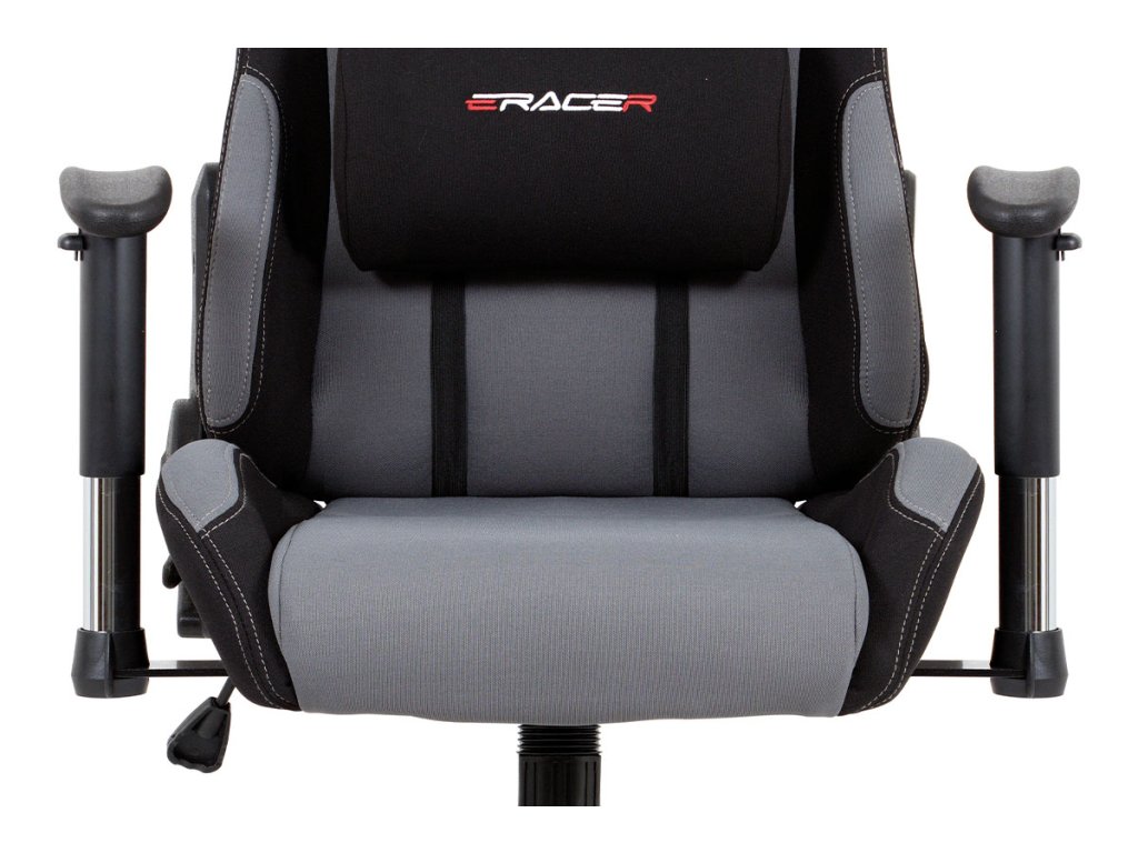 Herní křeslo E-racer, potah šedá-černá látka, houpací mechanismus, opěrák 90°-180
