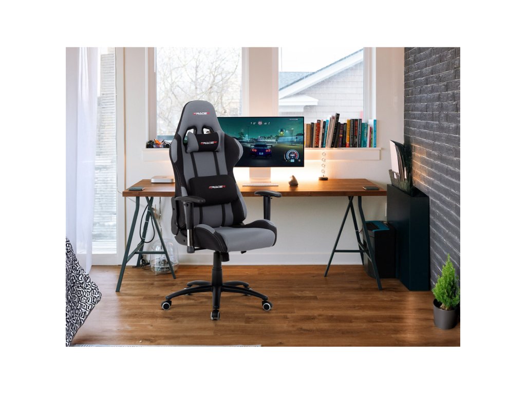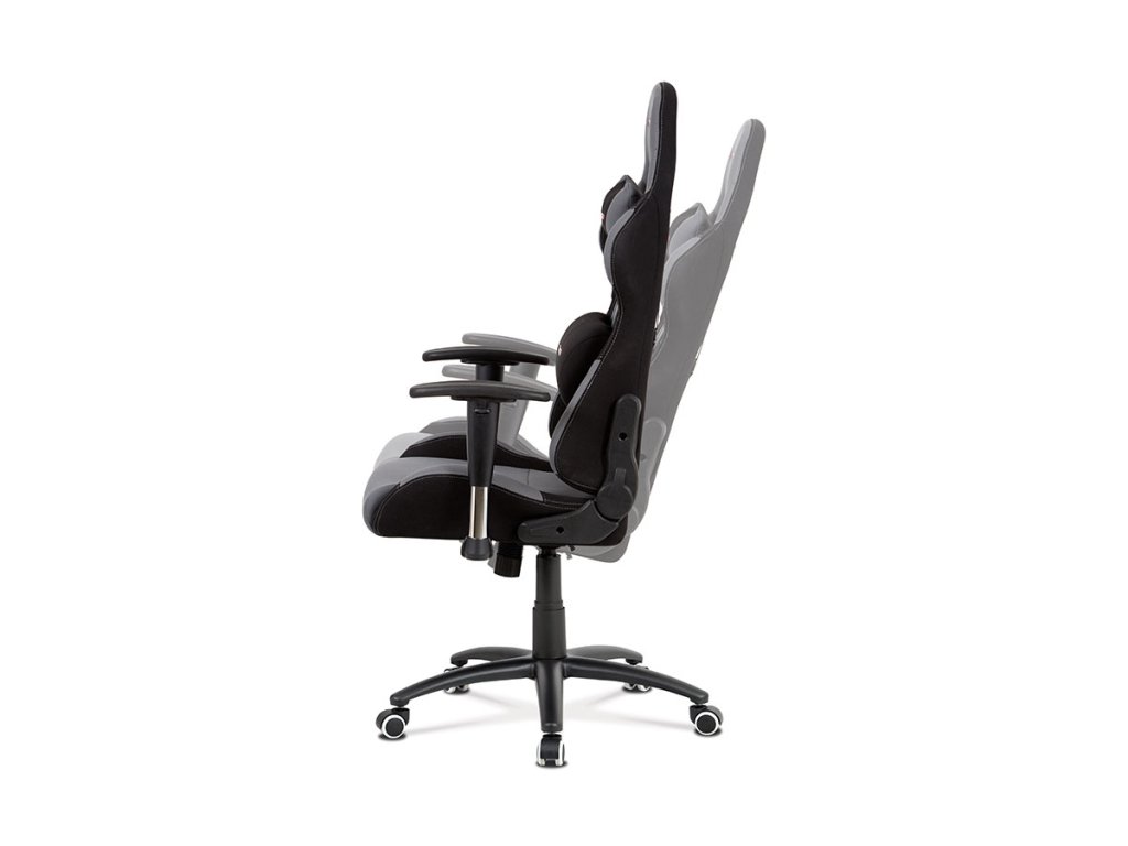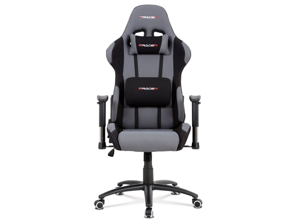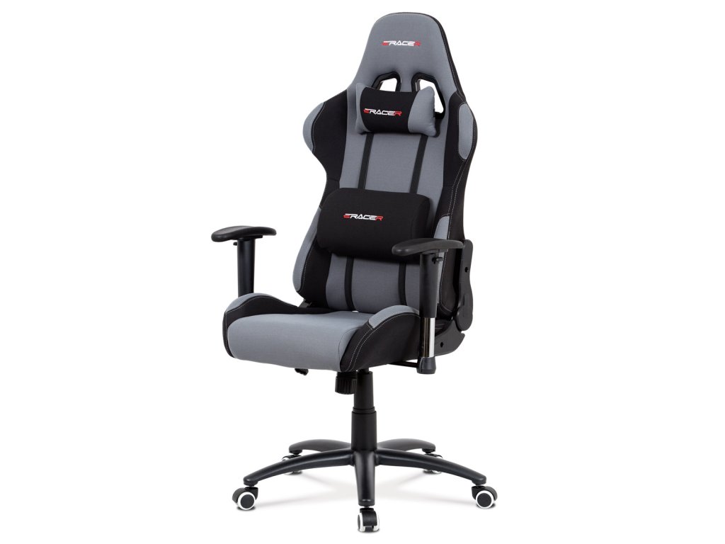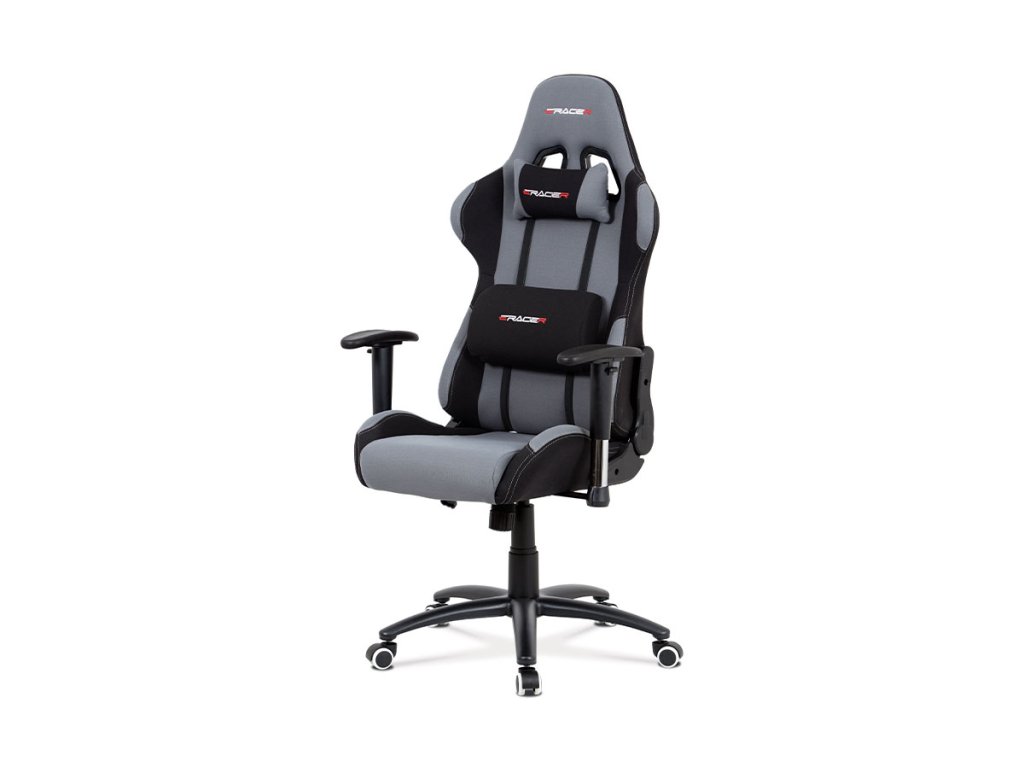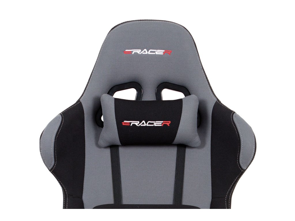 Herní křeslo E-racer, potah šedá-černá látka, houpací mechanismus, opěrák 90°-180