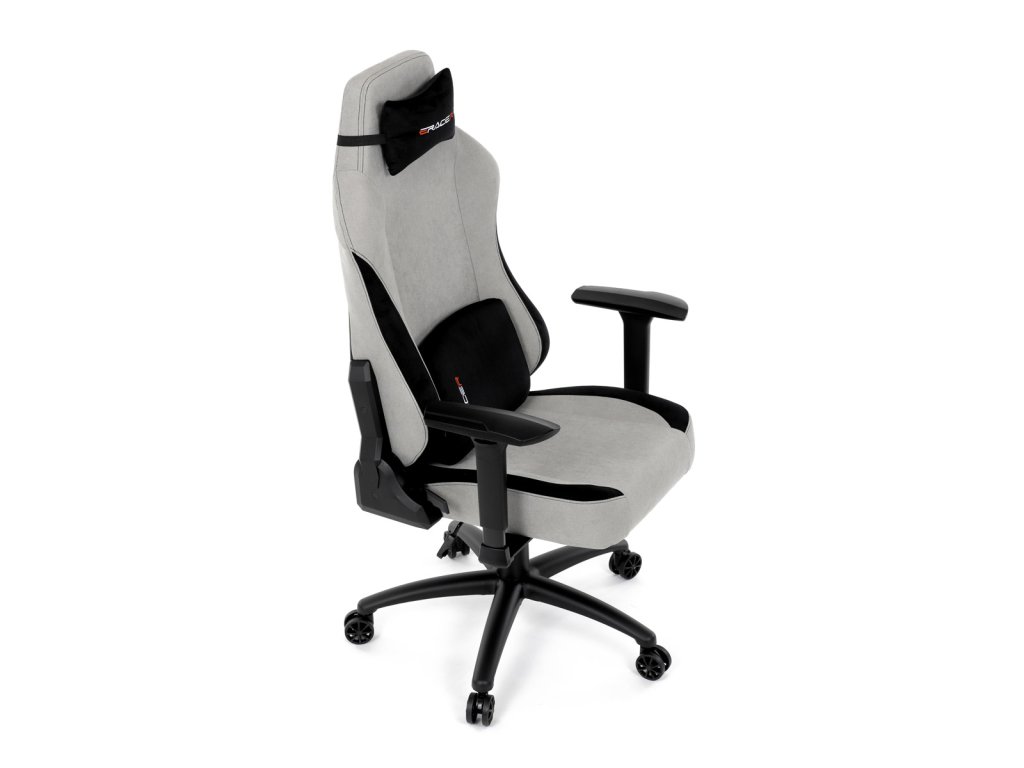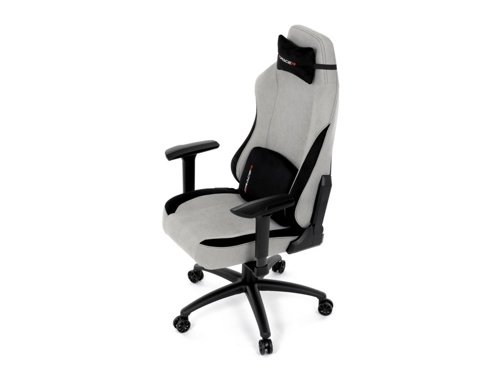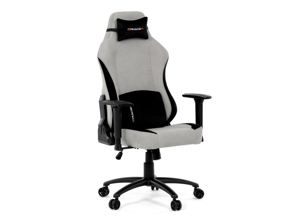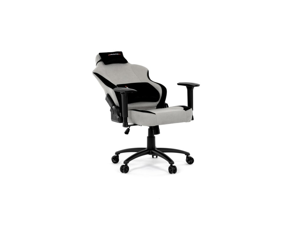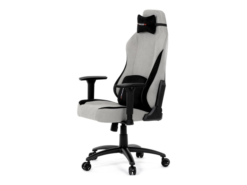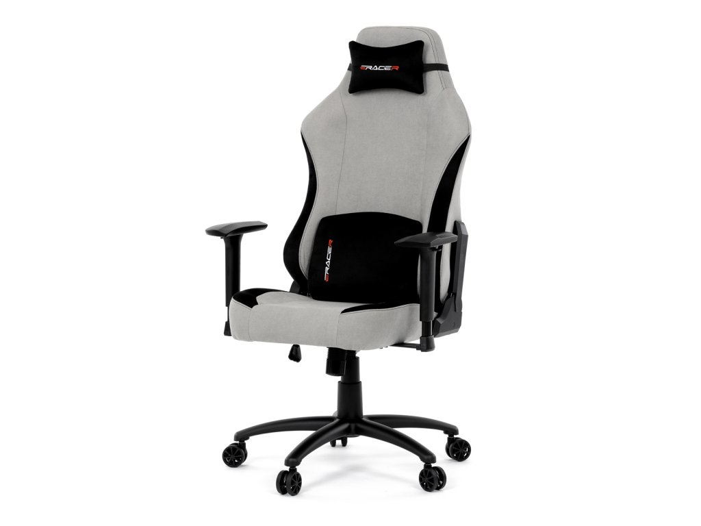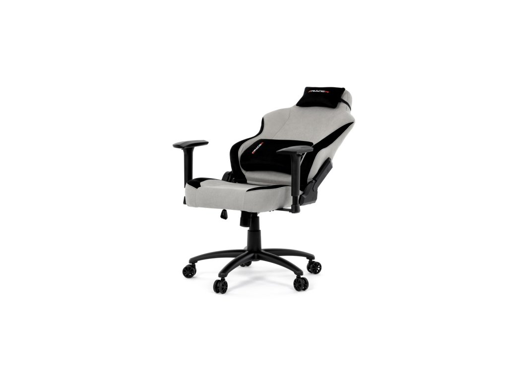 KA-F12 Herní křeslo, stříbrná látka, houpací mechanismus, polohování opěradla 90°-180°, 3D područky, polštáře z paměťové pěny,