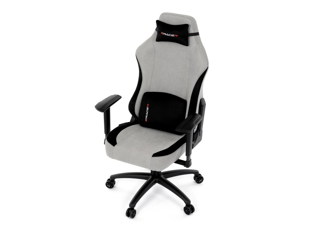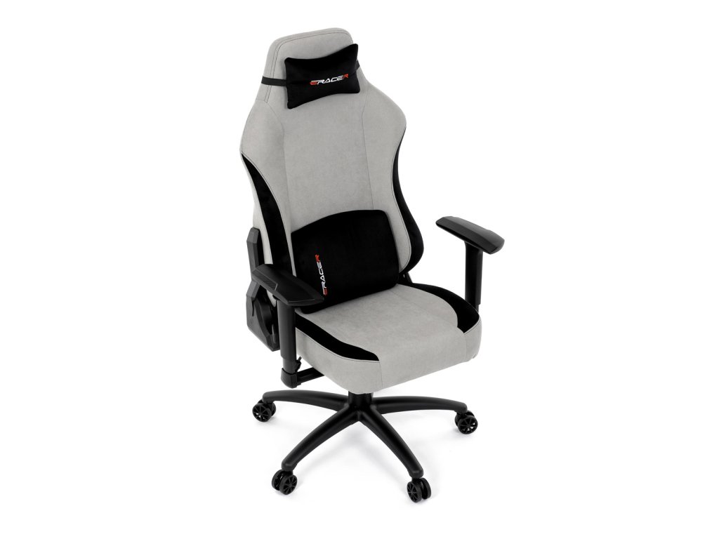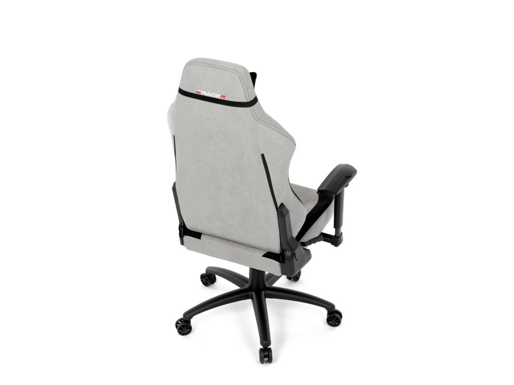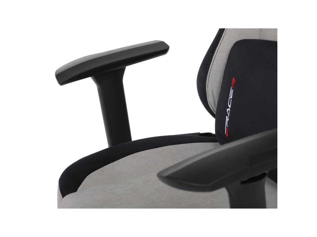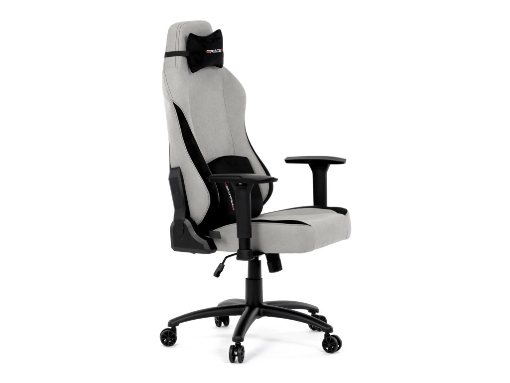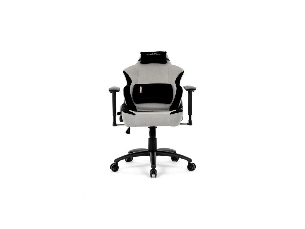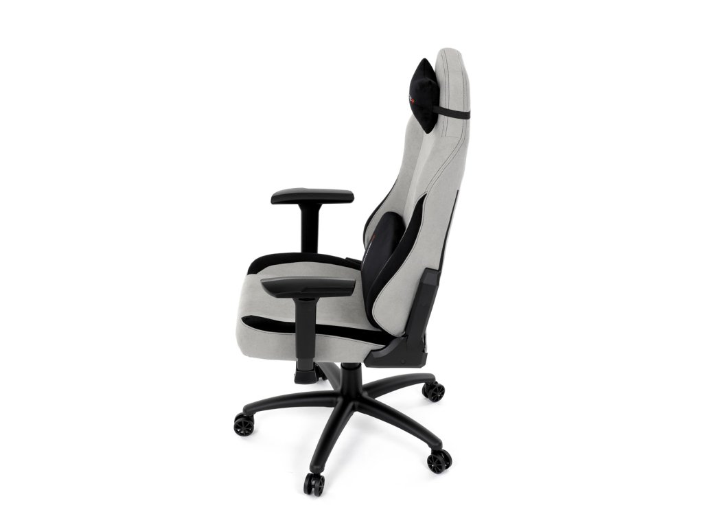 KA-F12 Herní křeslo, stříbrná látka, houpací mechanismus, polohování opěradla 90°-180°, 3D područky, polštáře z paměťové pěny,