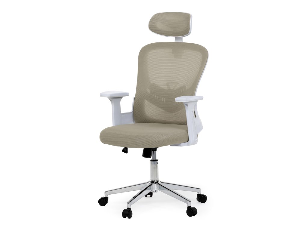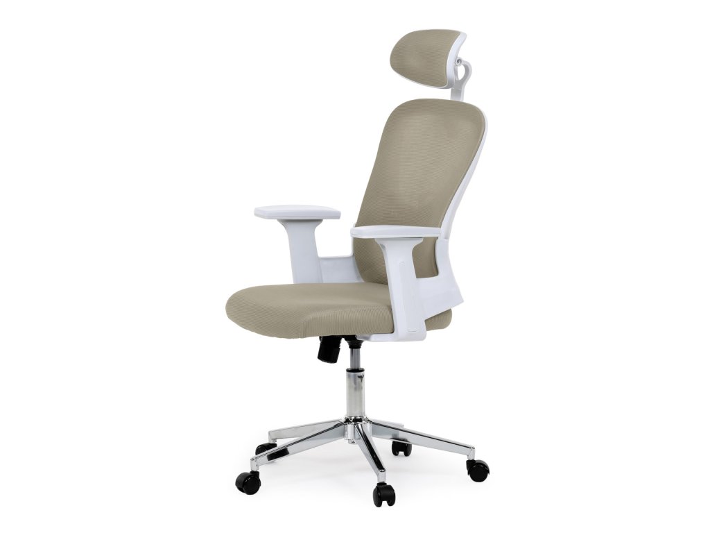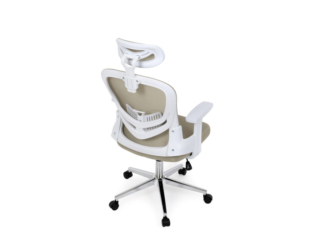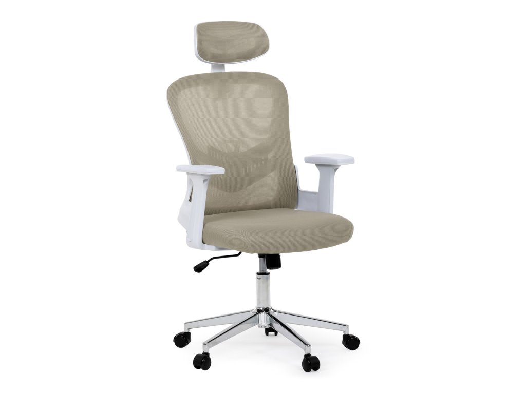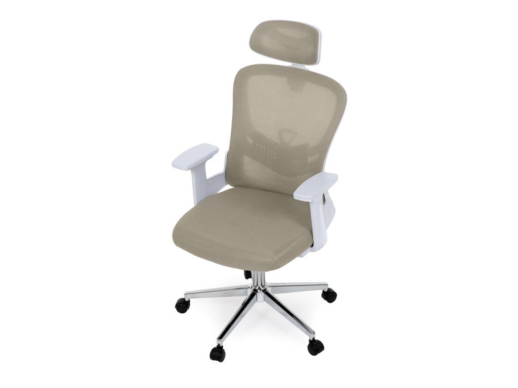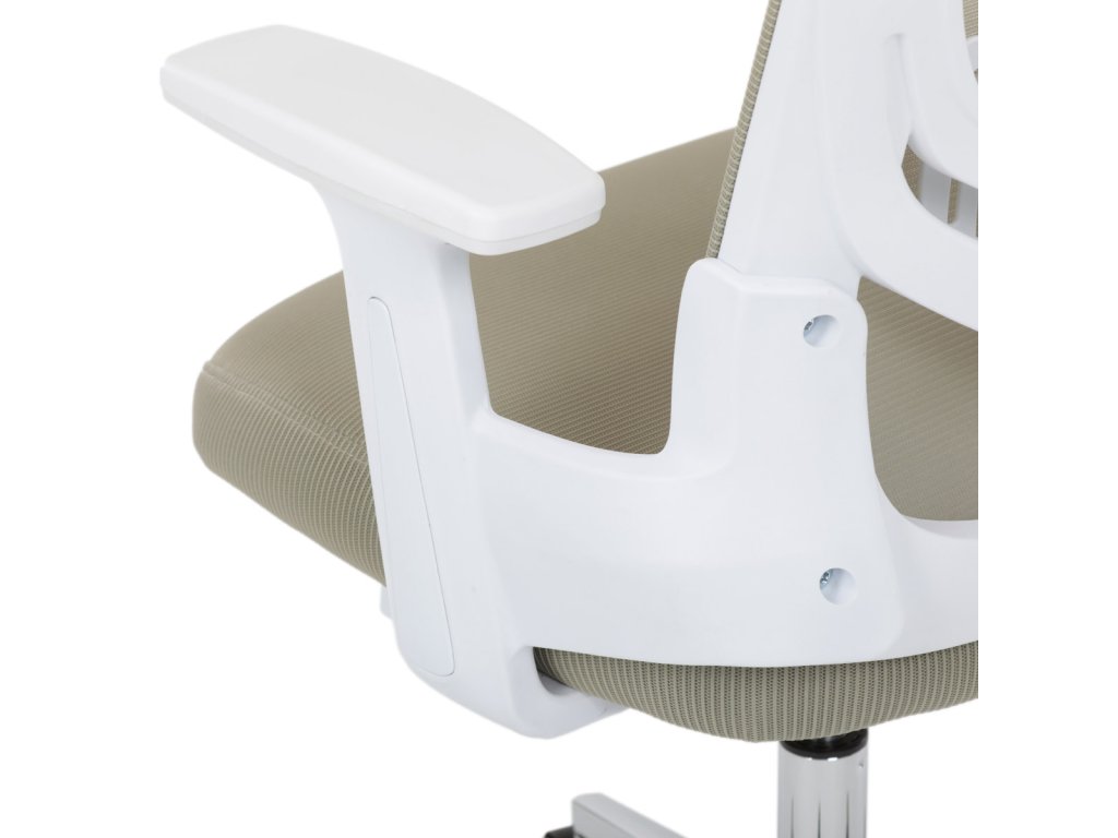 Kancelářská židle, béžová síťovina, bílý plast, kolečka na tvrdé podlahy, 2D područky