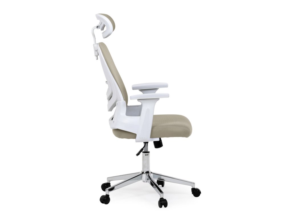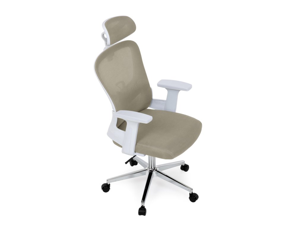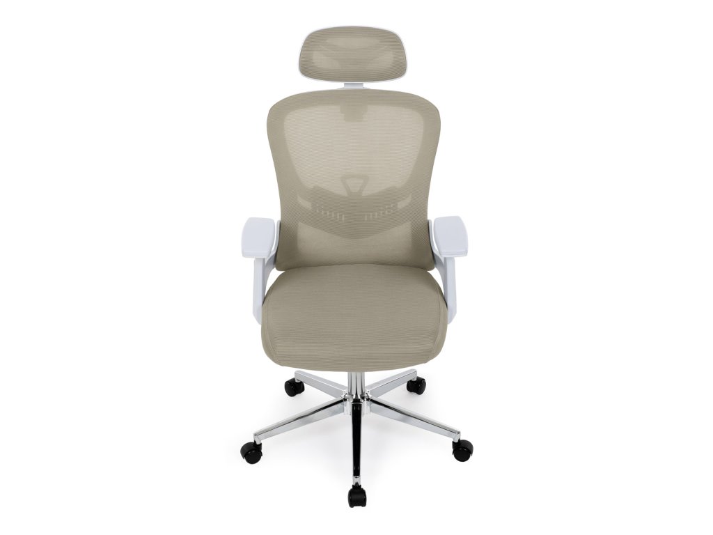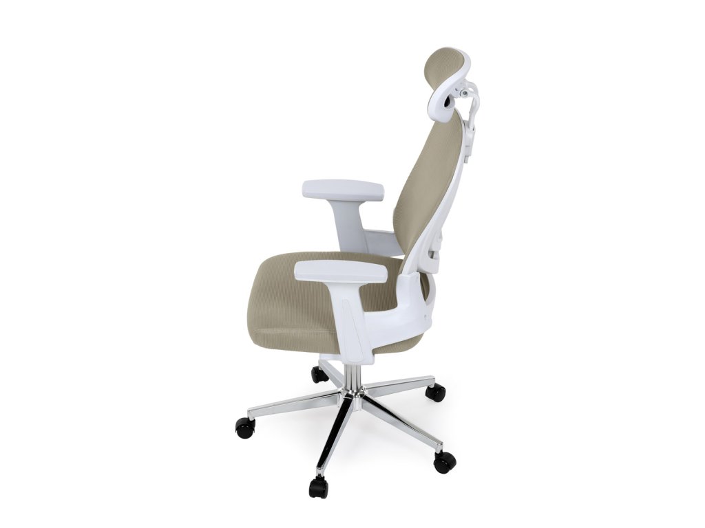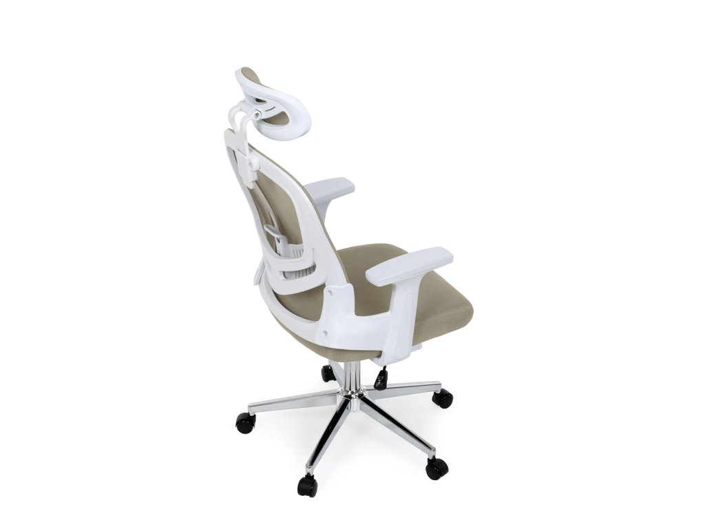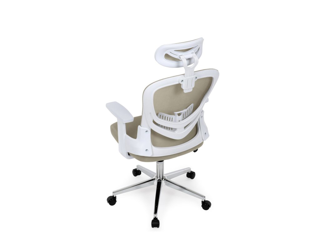 Kancelářská židle, béžová síťovina, bílý plast, kolečka na tvrdé podlahy, 2D područky