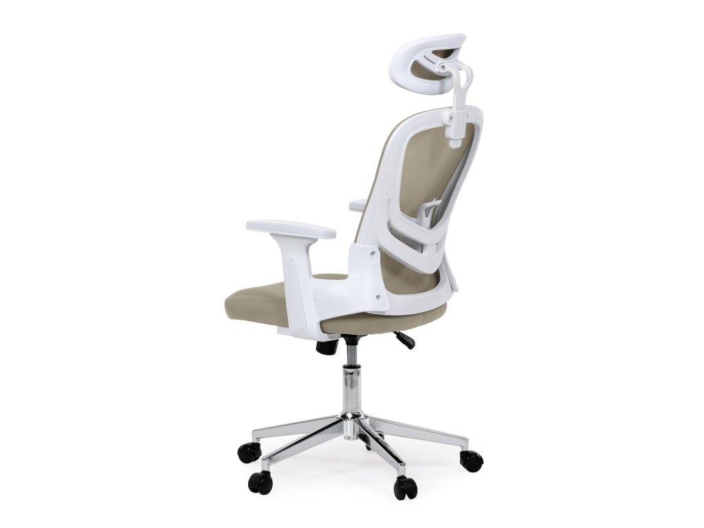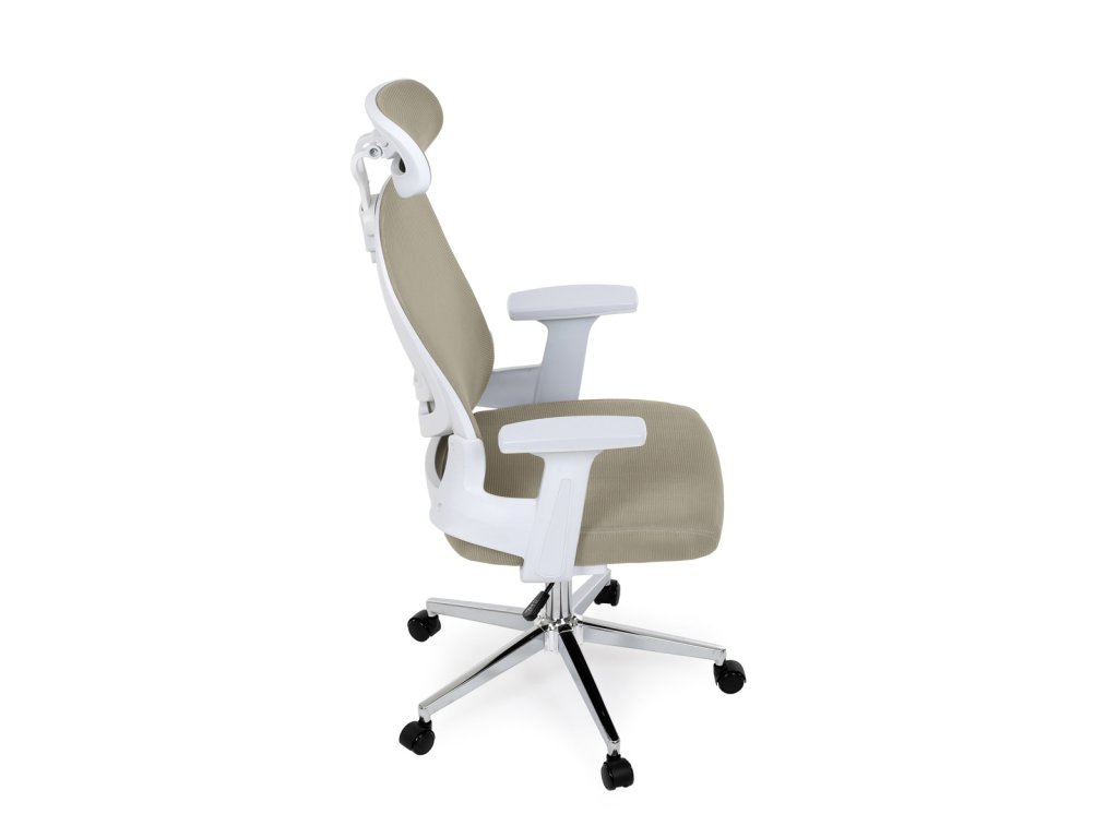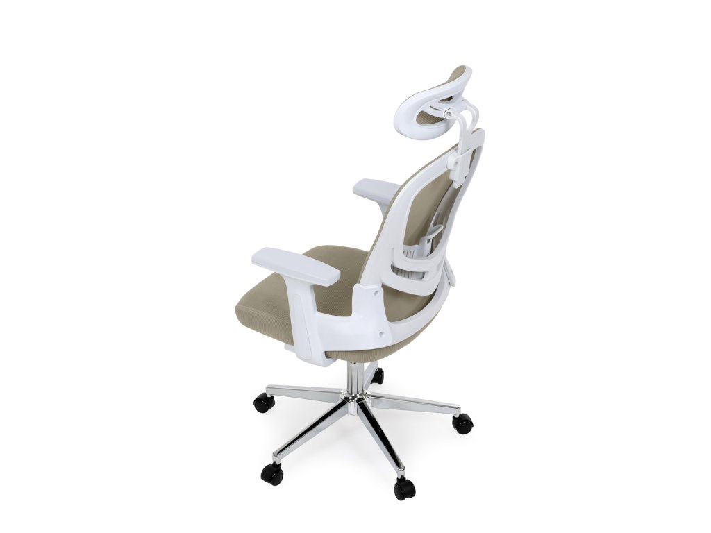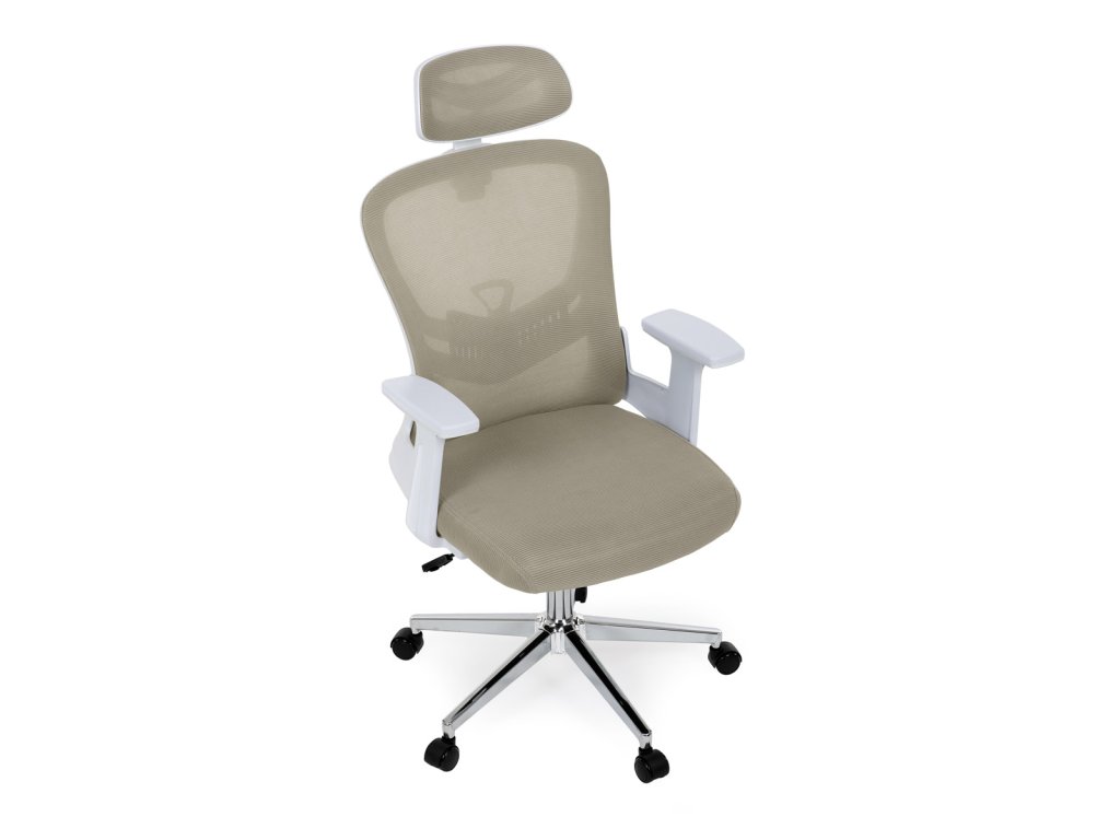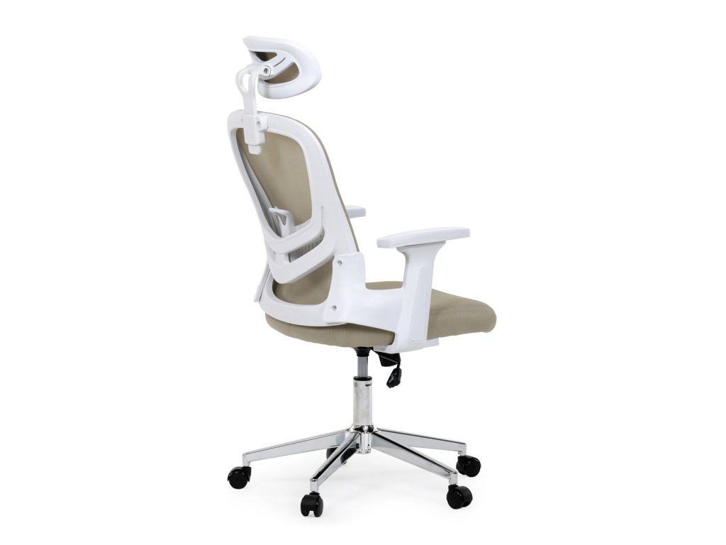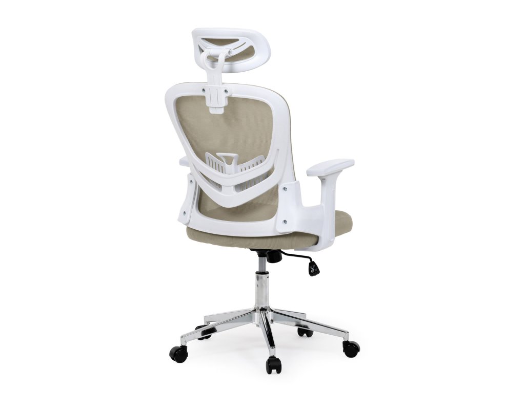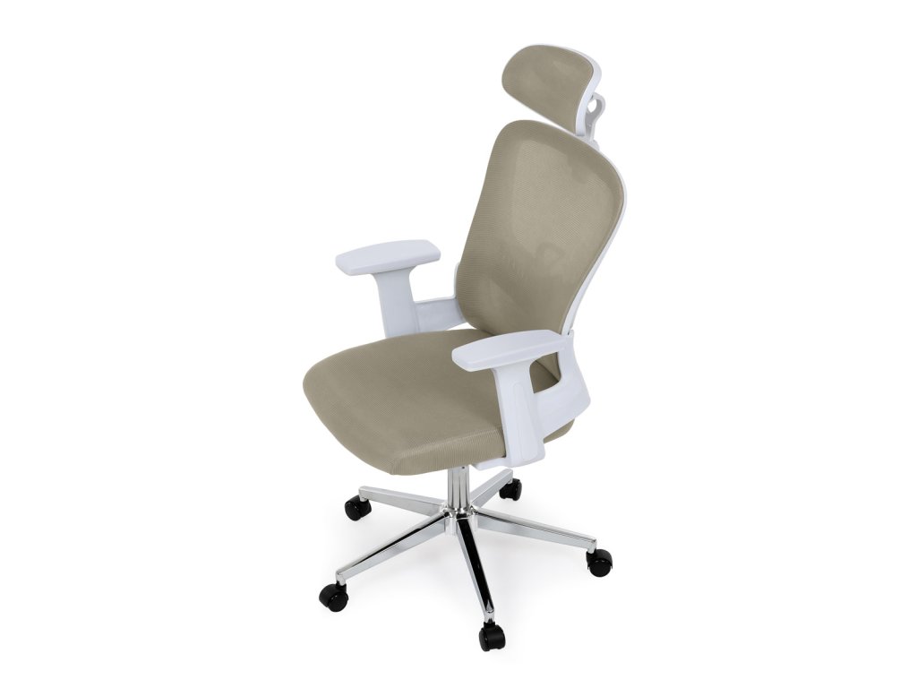 Kancelářská židle, béžová síťovina, bílý plast, kolečka na tvrdé podlahy, 2D područky