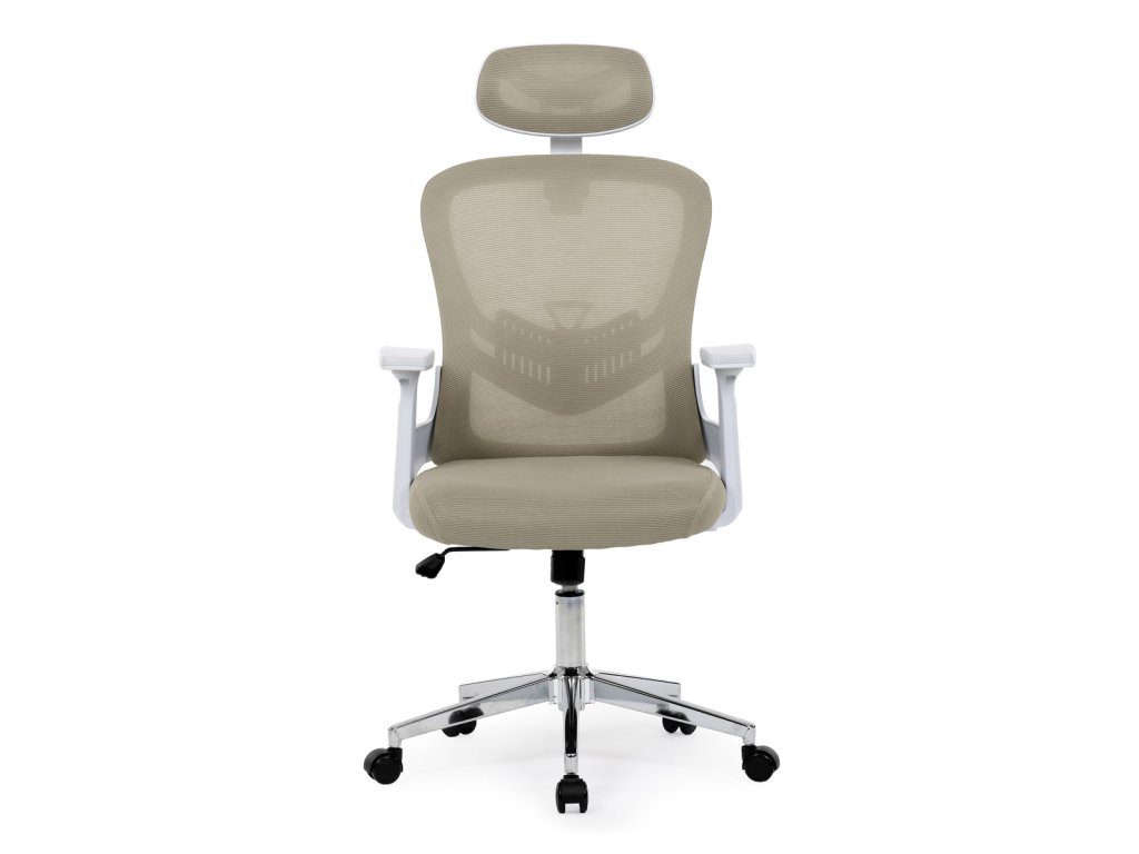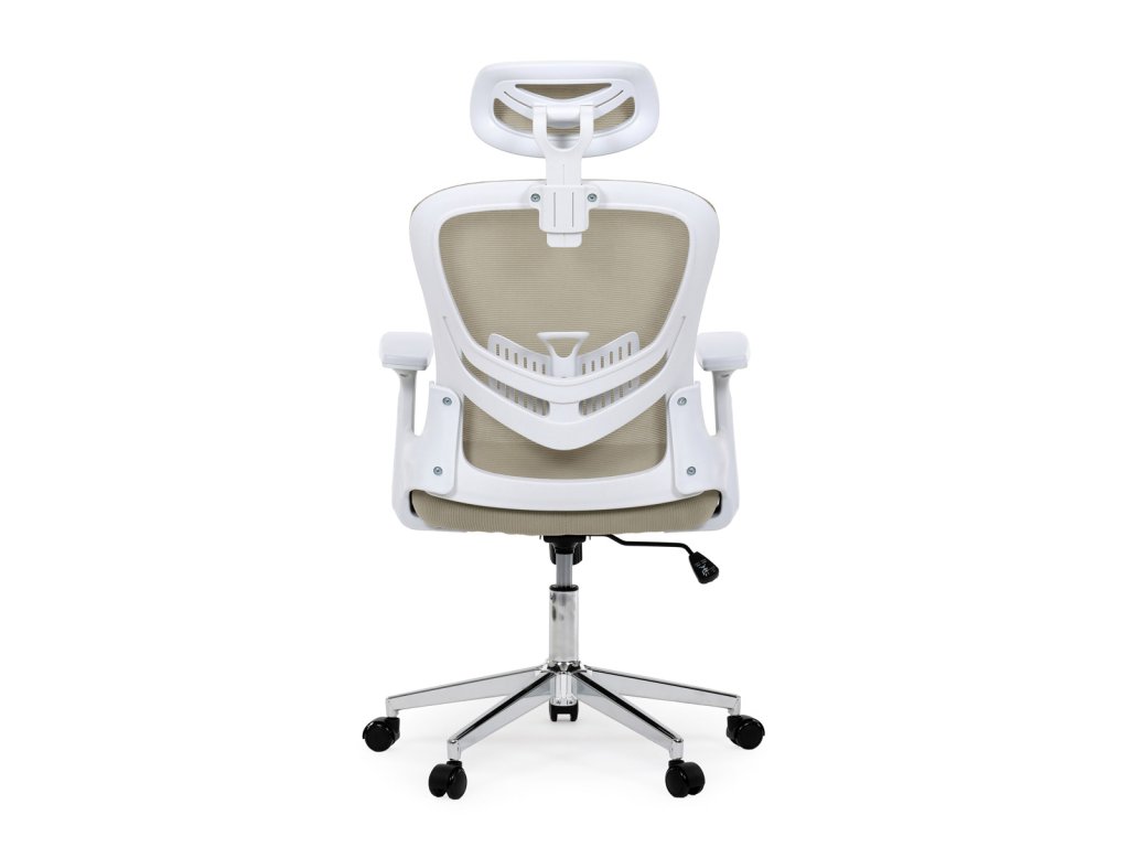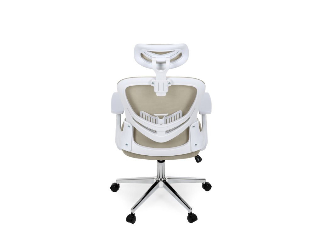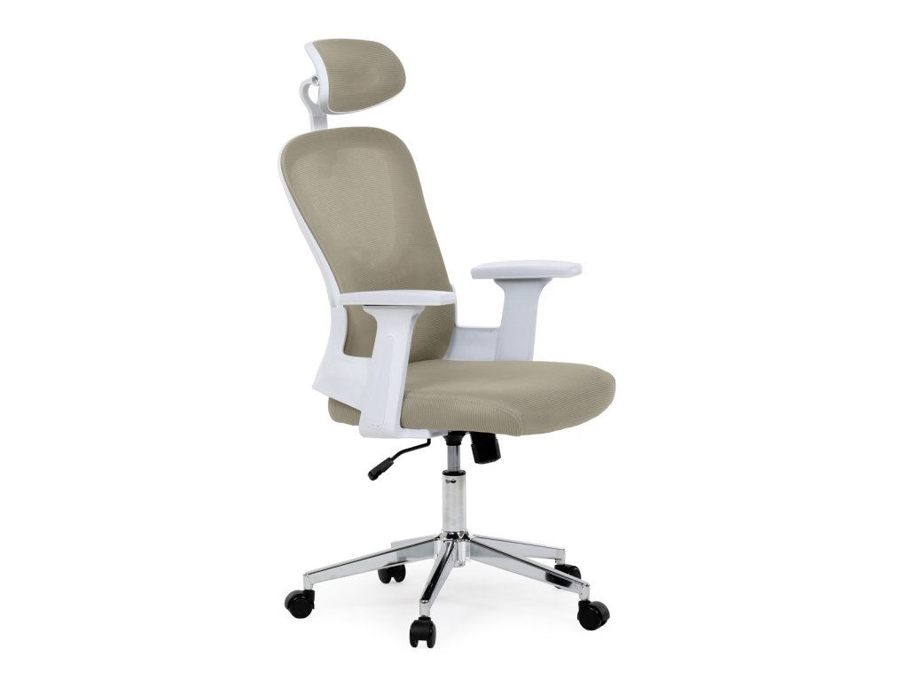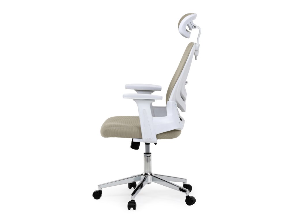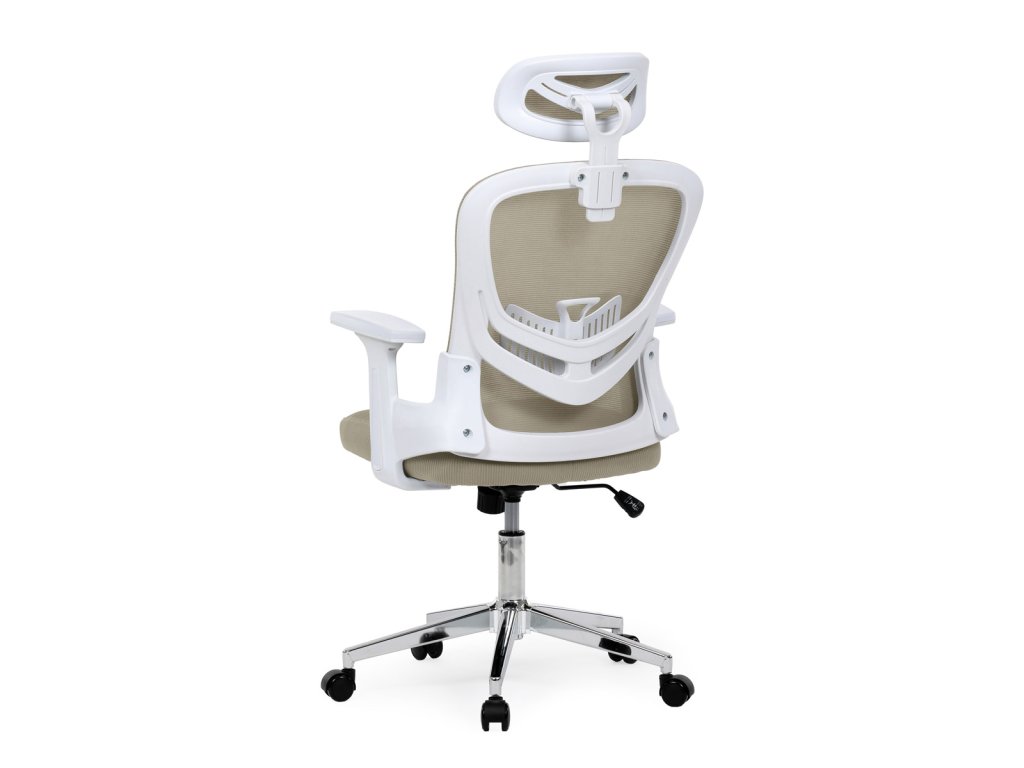 Kancelářská židle, béžová síťovina, bílý plast, kolečka na tvrdé podlahy, 2D područky