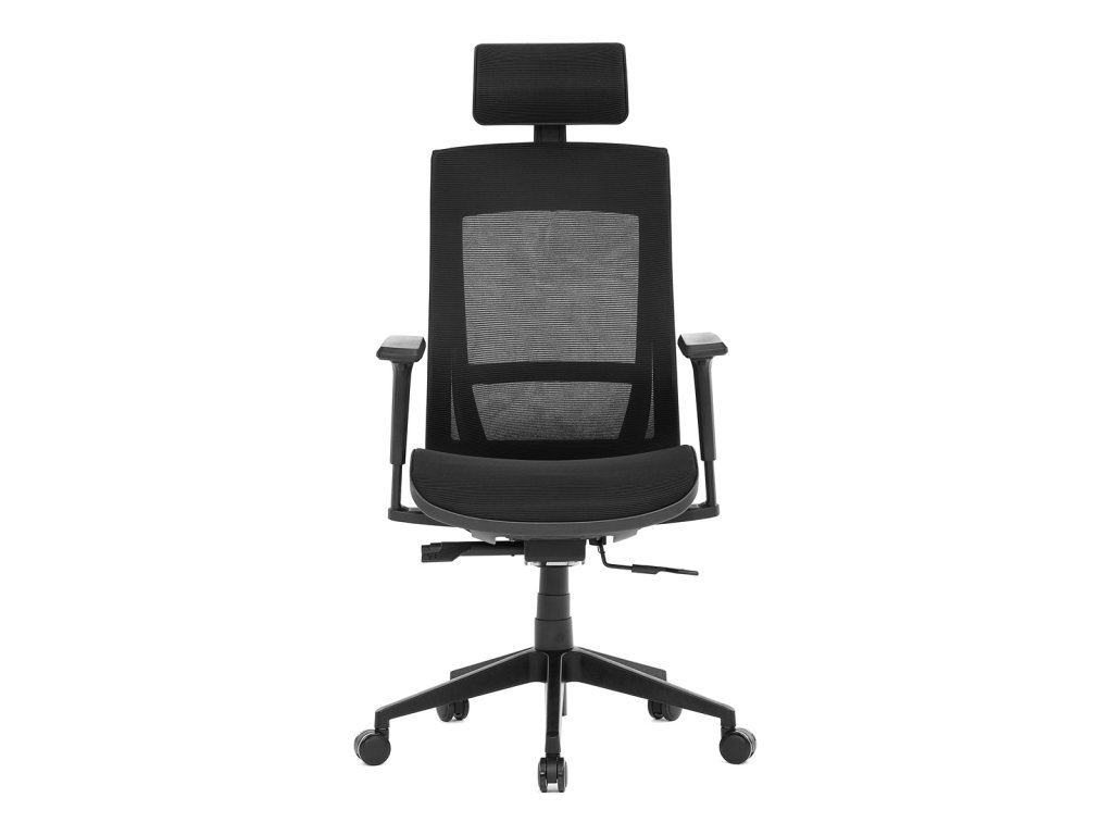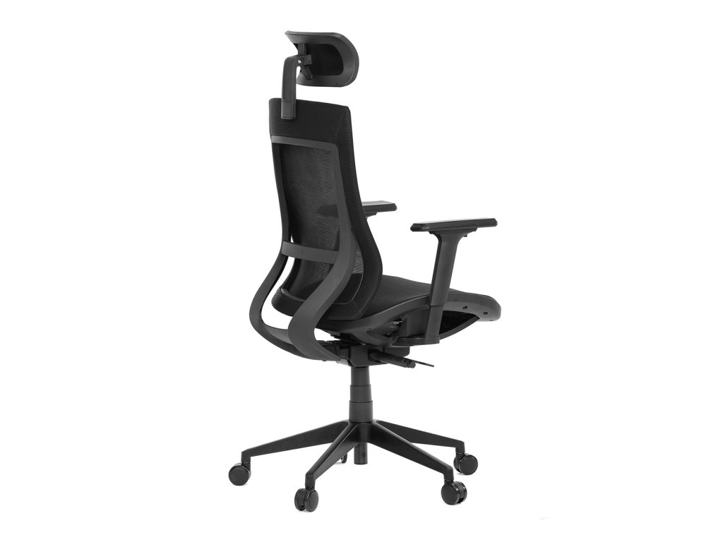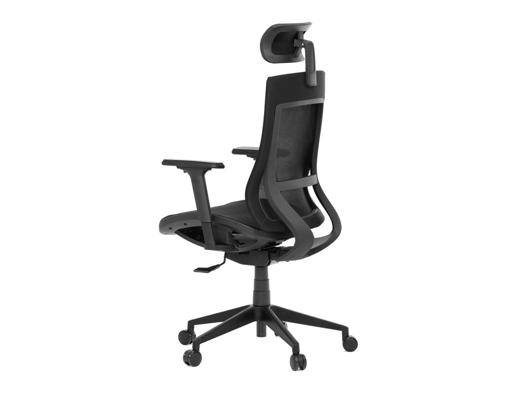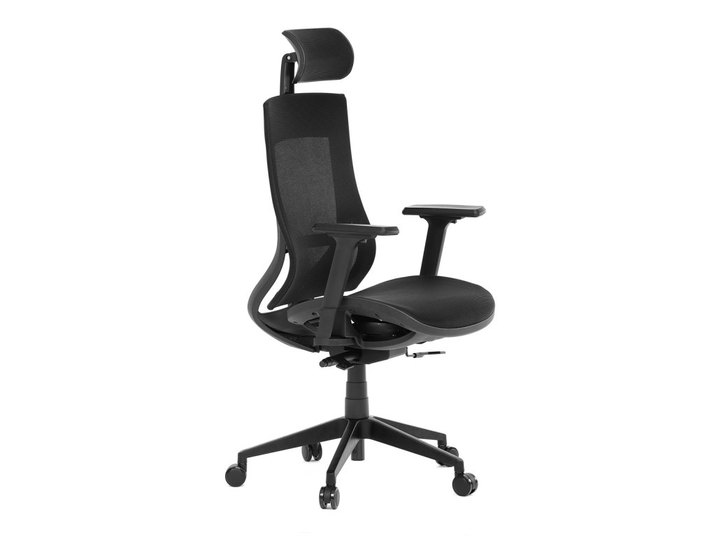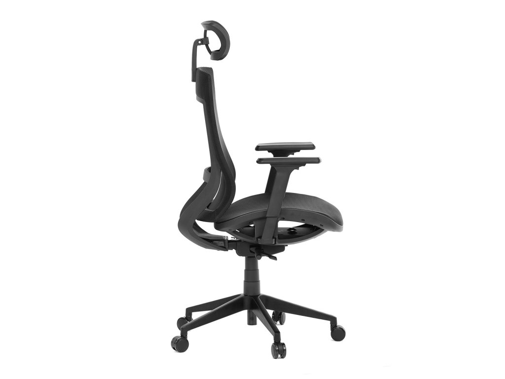 Kancelářská židle v černé síťovině nabízí moderní ergonomii a komfort pro dlouhé hodiny práce. Opěradlo je vybaveno pevnou bederní opěrkou a výškově nastavitelnou hlavovou opěrkou, která podporuje správné držení hlavy a krční páteře. Sedák s posuvným mechanismem umožňuje individuální nastavení hloubky sedu pro maximální pohodlí. Synchronní mechanika umožňuje aretaci opěradla ve více polohách, což zvyšuje flexibilitu sezení. Výškově stavitelné jednosměrné područky přispívají k ergonomickému držení paží, zatímco plastový kříž s kolečky je určený pro tvrdé podlahy a zajišťuje stabilitu i snadnou mobilitu.Doplňkové parametry