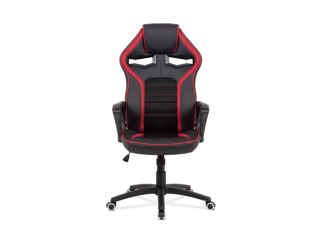 Kancelářská židle, potah černá ekokůže, černá a červená látka MESH, černý plasto