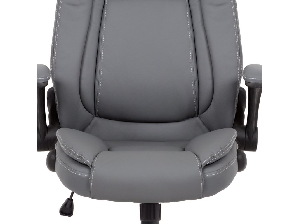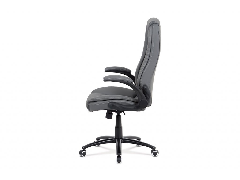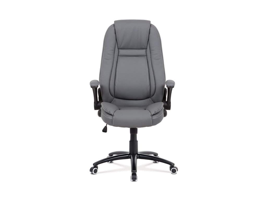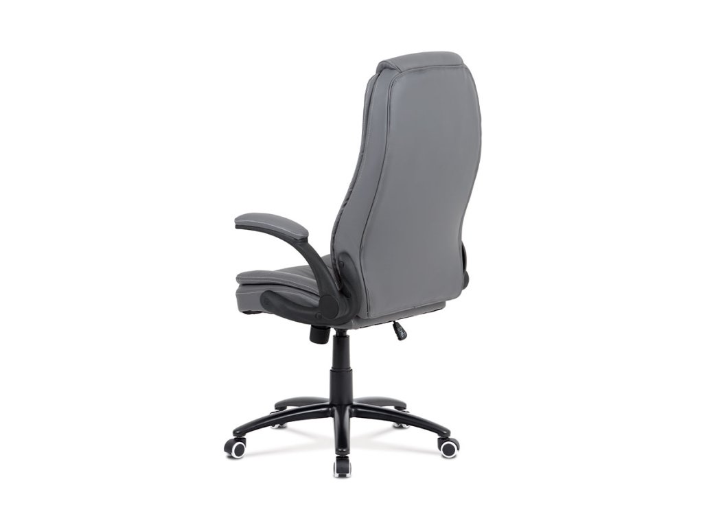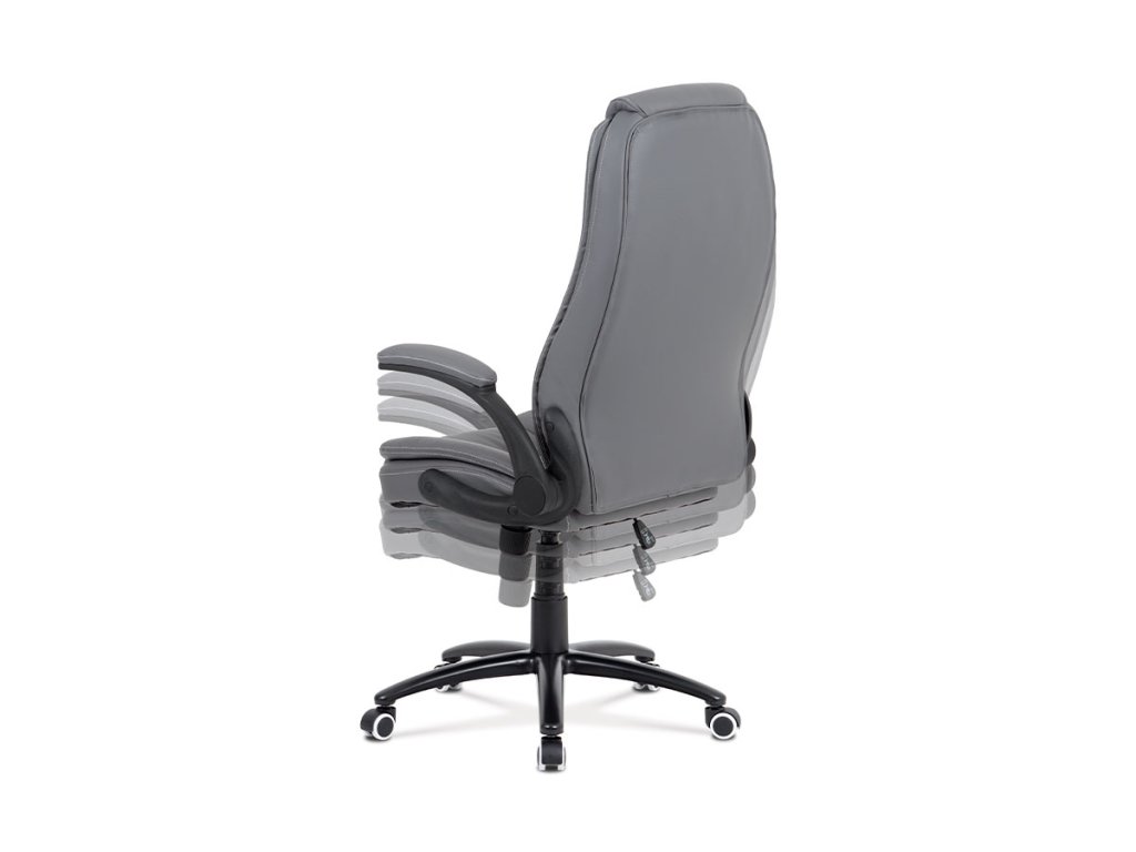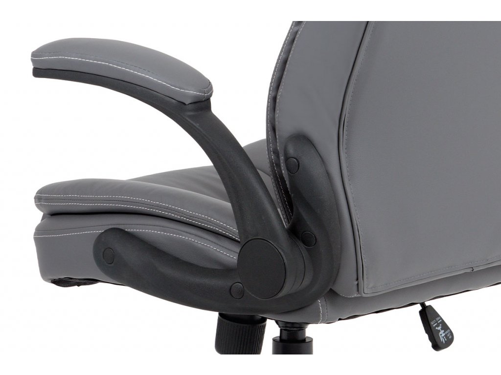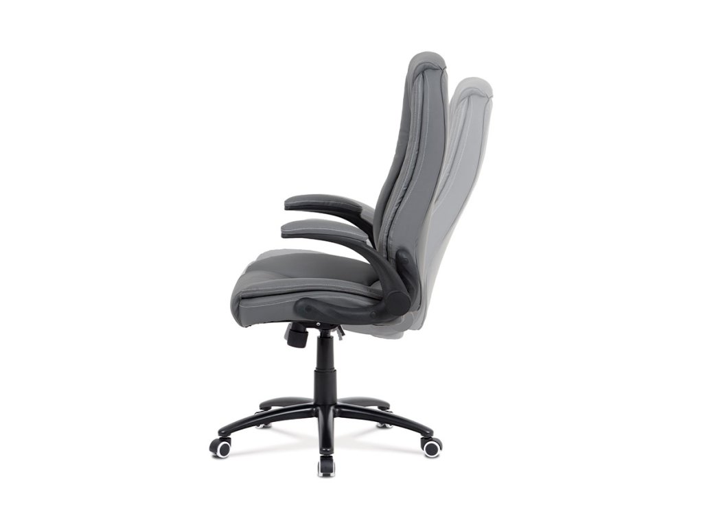 Kancelářská židle s šedým potahem z ekokůže nabízí ergonomicky tvarované opěradlo s vyměkčenou vrchní částí pro zvýšený komfort při delším sezení. Odklápěcí čalouněné područky umožňují snadné přizpůsobení prostoru a přispívají k flexibilitě používání. Stabilní kovový kříž zajišťuje pevnou oporu a je osazen kolečky vhodnými pro různé typy podlahových krytin. Houpací mechanismus umožňuje plynulé naklápění a nastavení výšky sedáku podle individuálních potřeb. Židle je navržena tak, aby poskytovala pohodlné a ergonomické sezení v kancelářském prostředí.Doplňkové parametry