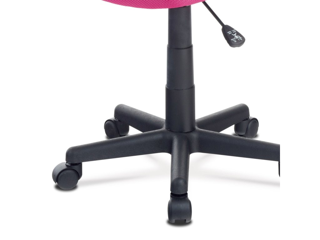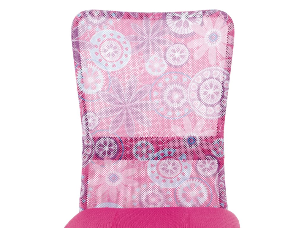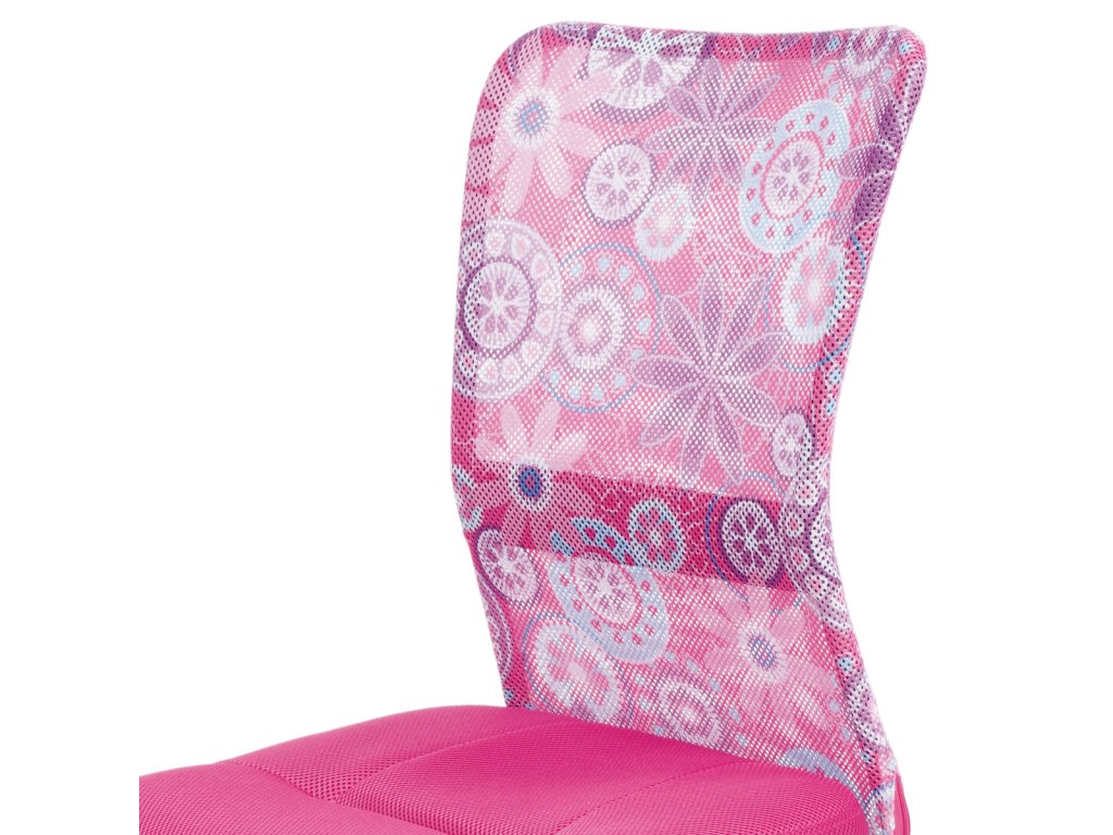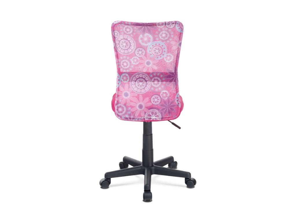 Dětská kancelářská židle čalouněná látkou MESH ve stylové růžové barvě, opěrák s motivem. Díky plynovému pístu je židle výškově nastavitelná. Židle má také plastový kříž s plastovými kolečky vhodnými na koberce. Nosnost 60 kg.