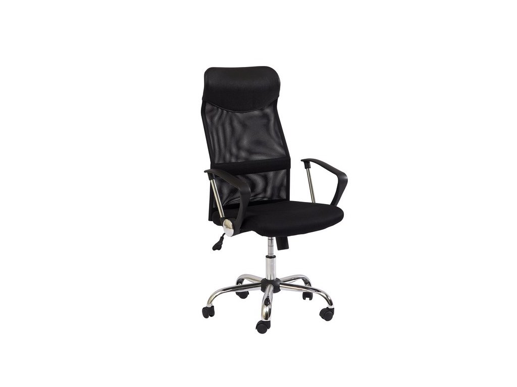 Otáčecí kancelářská židle, kovový podstavec je pochromovaný, čalounění a síťovaná membránová tkanina se vyrábí ve více barevných provedeních. Sedák a část opěradla je z membránové tkaniny černé barvy, další část opěradla je ze síťky. Nastavitelná výška sedadla je v rozmezí 45 - 53 cm.Doplňkové parametry