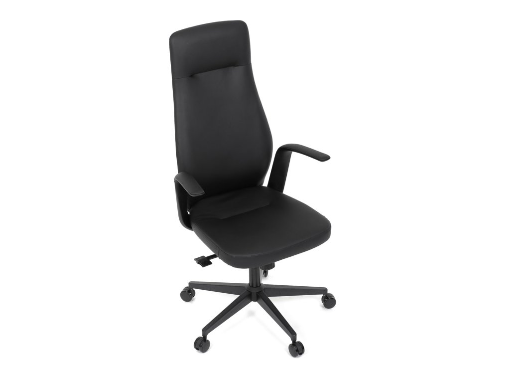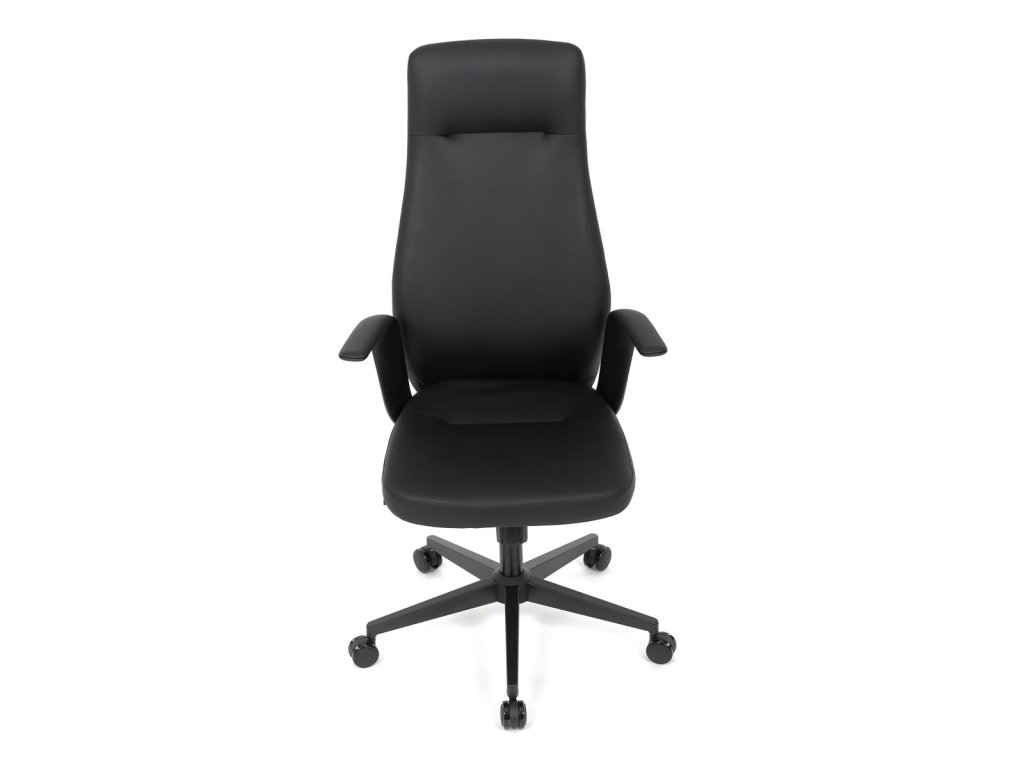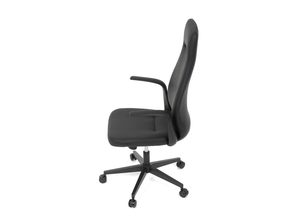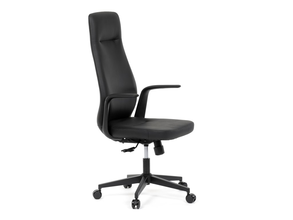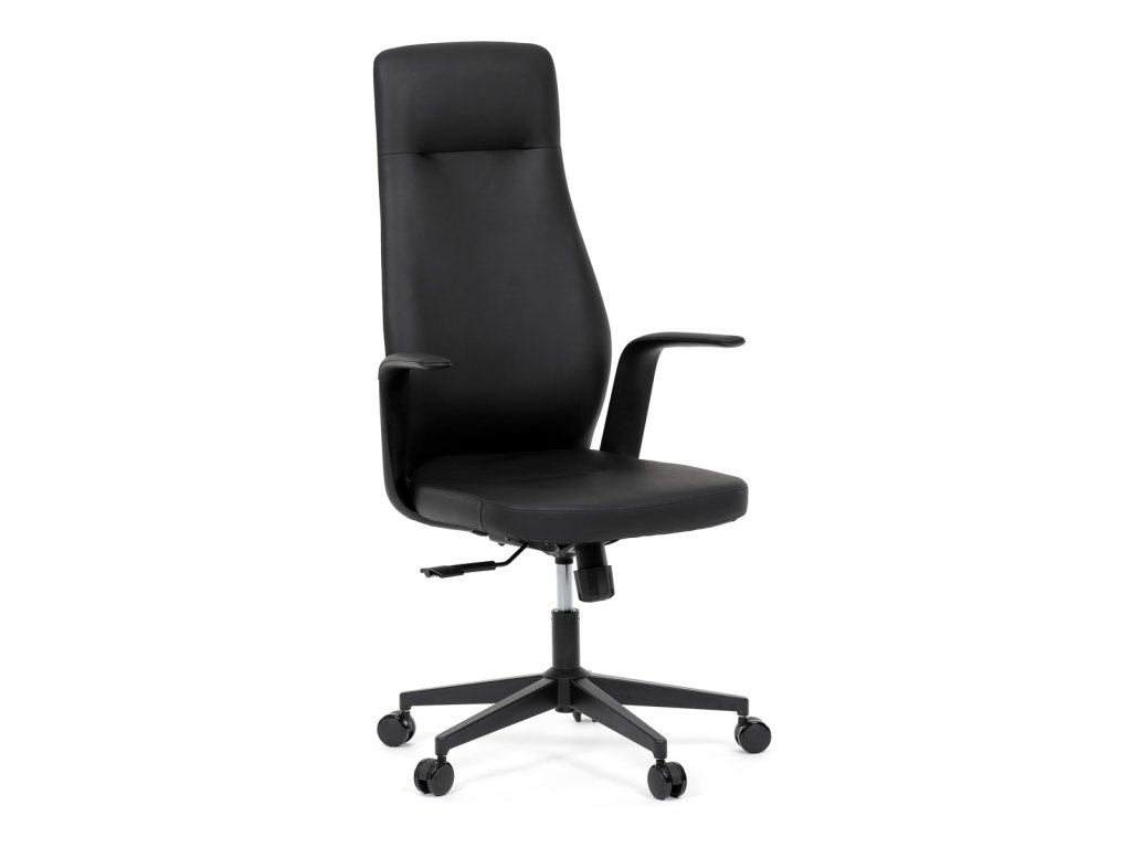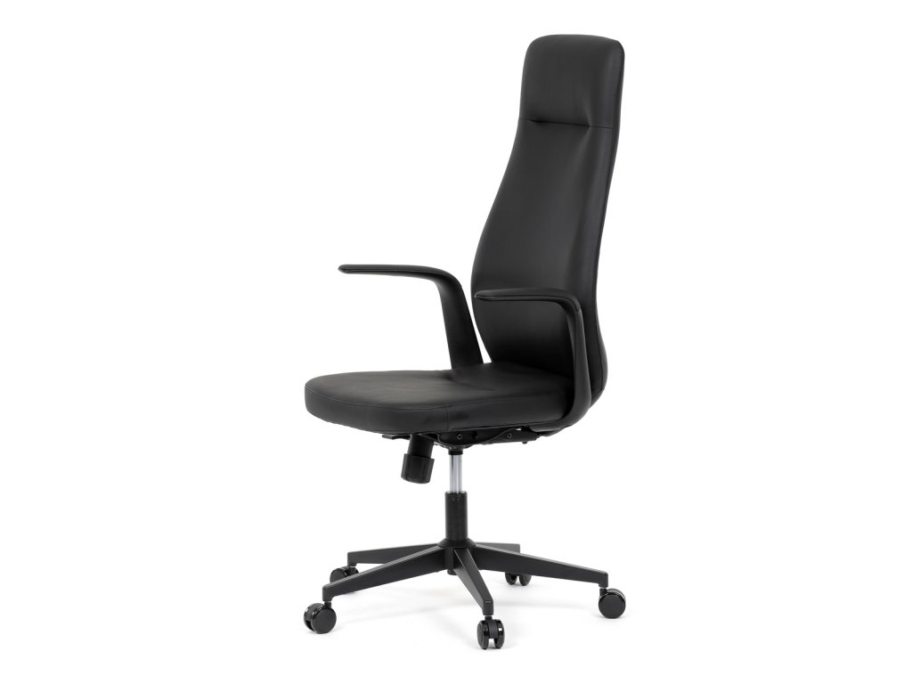 Kancelářské křeslo, černá ekokůže, houpací mechanismus s aretací ve 3 polohách, kovový kříž, kolečka pro tvrdé povrchy