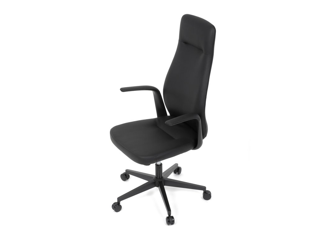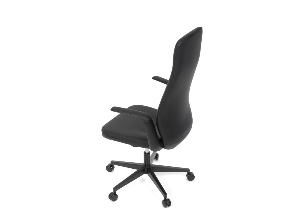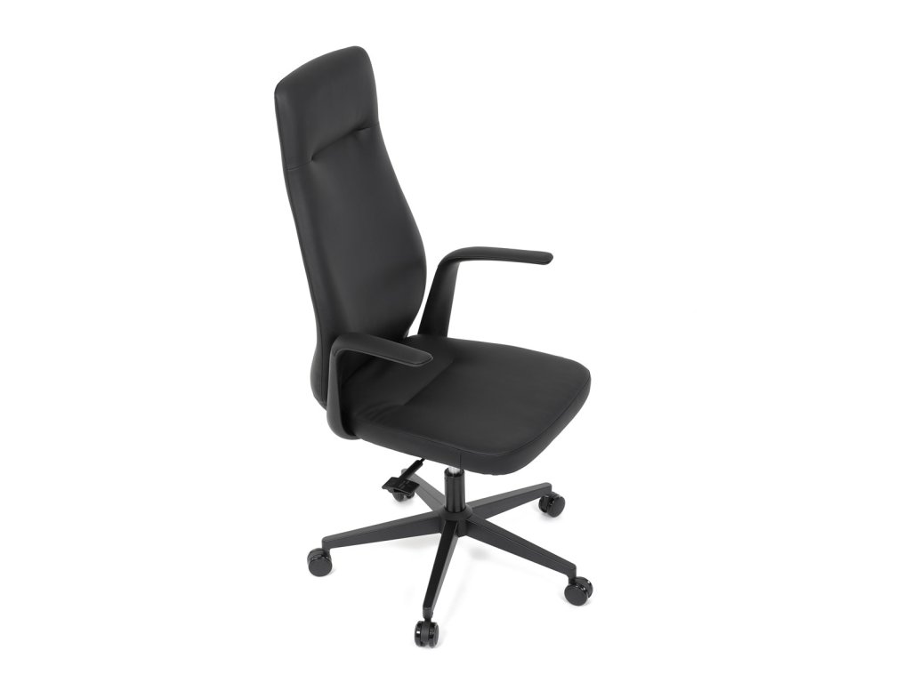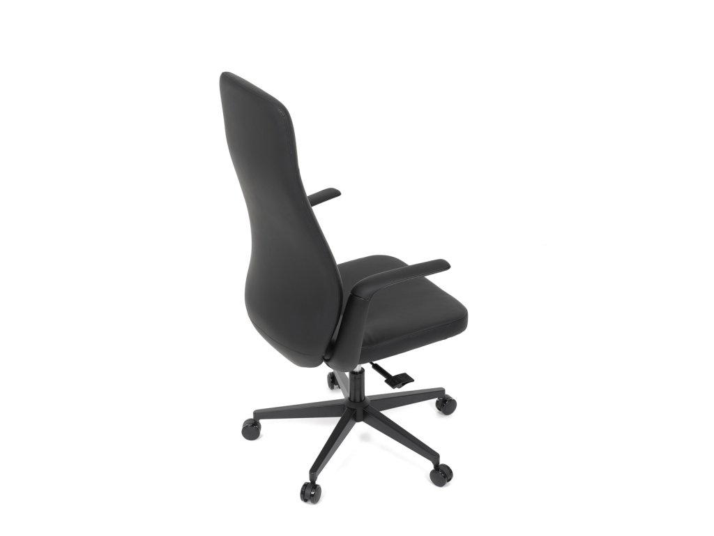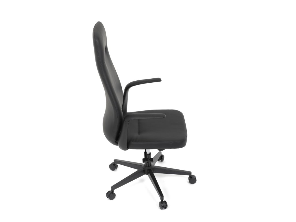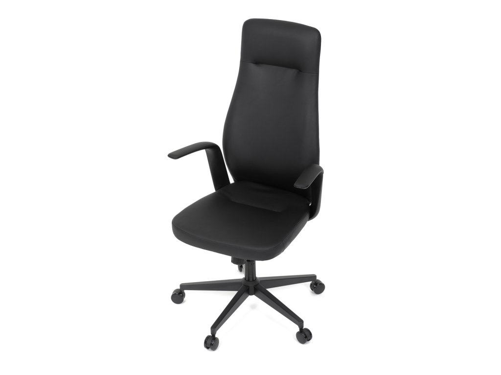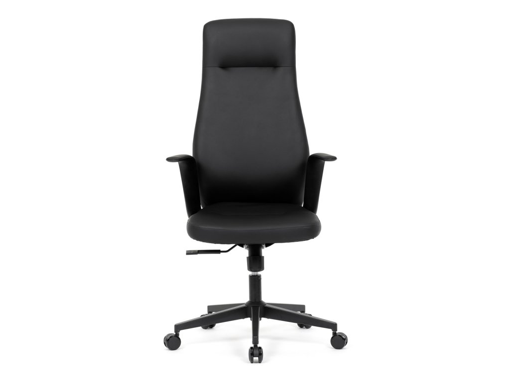 Kancelářské křeslo, černá ekokůže, houpací mechanismus s aretací ve 3 polohách, kovový kříž, kolečka pro tvrdé povrchy