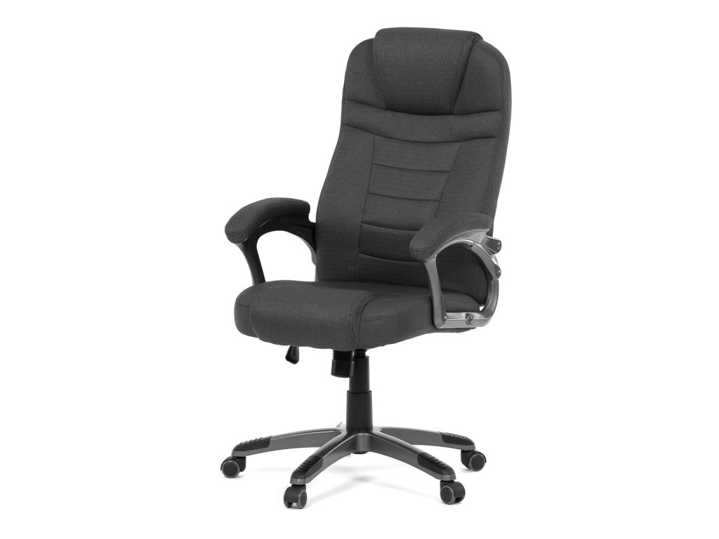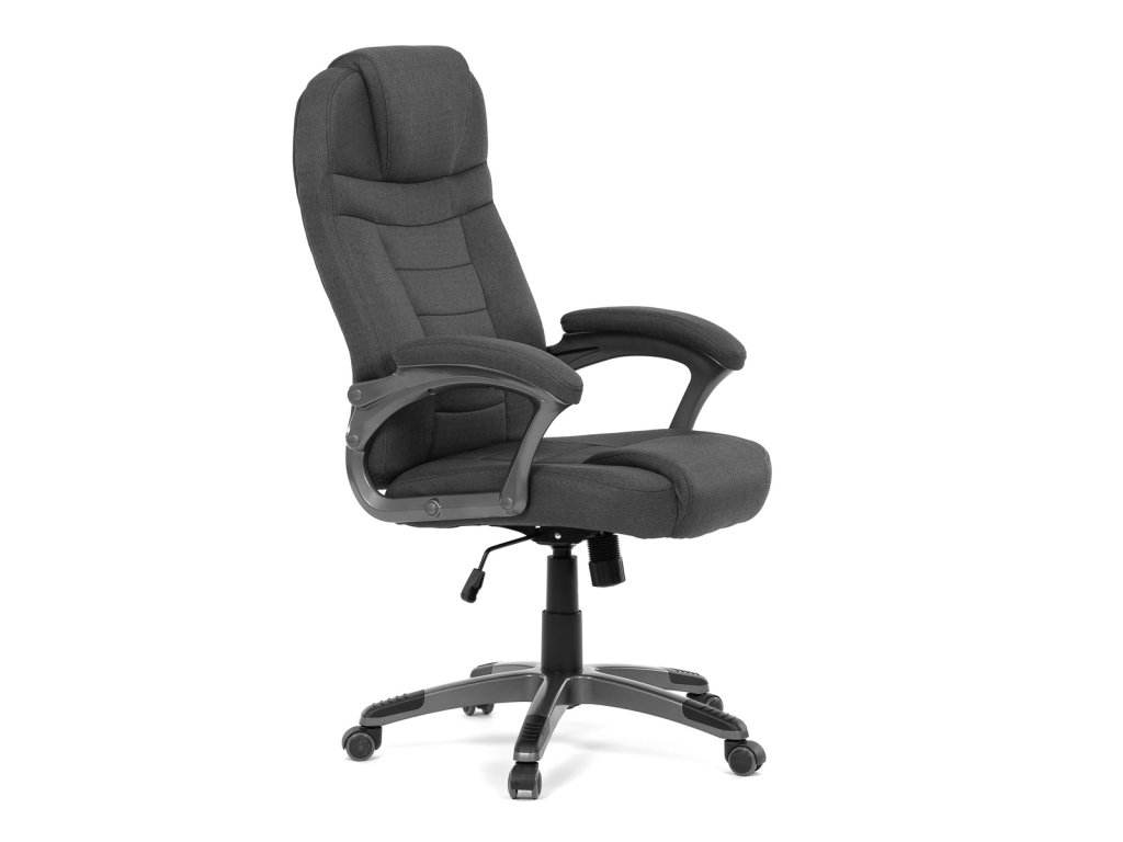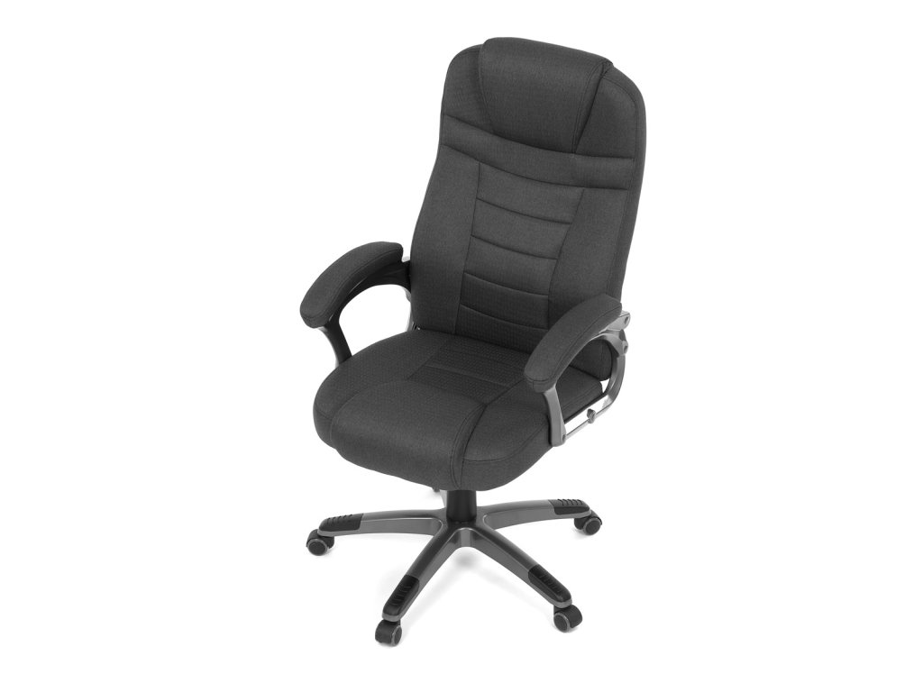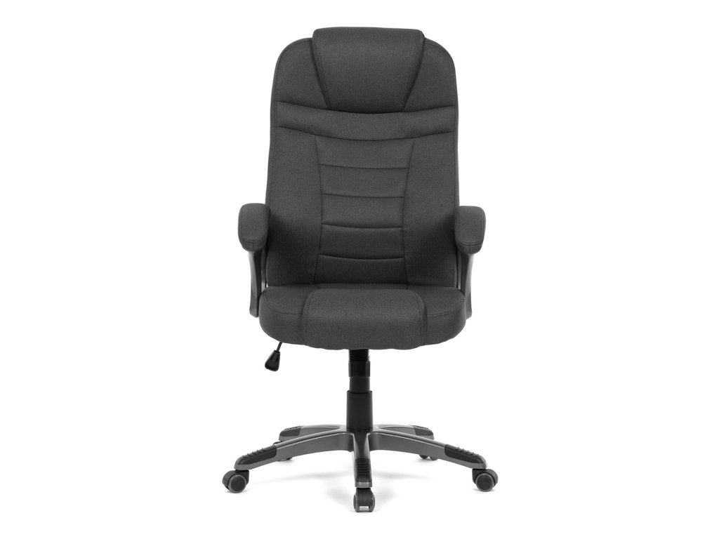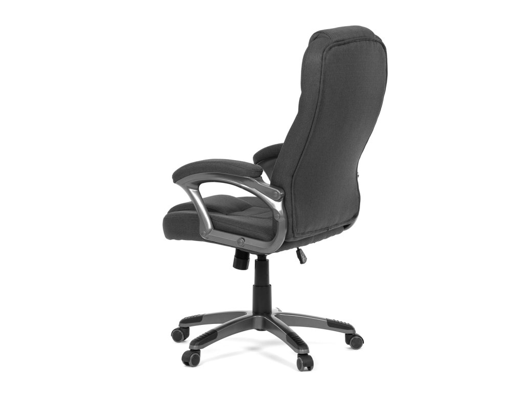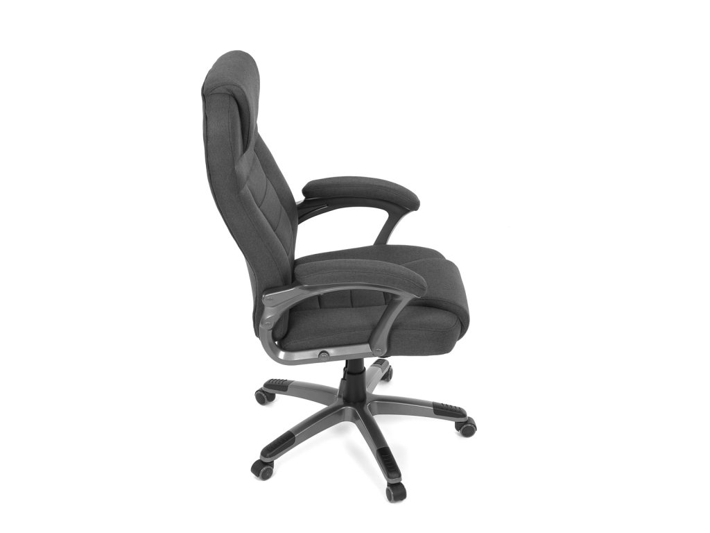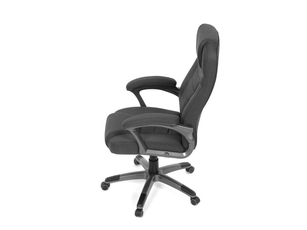 Kancelářské křeslo v černé látce nabízí vysoký opěrák s pevnou opěrkou hlavy a vyměkčenou vrchní částí pro zvýšený komfort při dlouhodobém sezení. Pevné čalouněné područky jsou integrovány do šedého plastového rámu, který spolu s plastovým křížem zajišťuje stabilitu a lehkost. Houpací mechanismus umožňuje příjemné naklánění s možností aretace v základní poloze, zatímco výškově nastavitelná sedací plocha umožňuje přizpůsobení výšky podle potřeby uživatele. Kolečka jsou vhodná pro tvrdé povrchy, což zajišťuje snadný pohyb bez poškození podlahy. Celkově je židle navržena pro pohodlné a ergonomické sezení v kancelářském prostředí.Doplňkové parametry