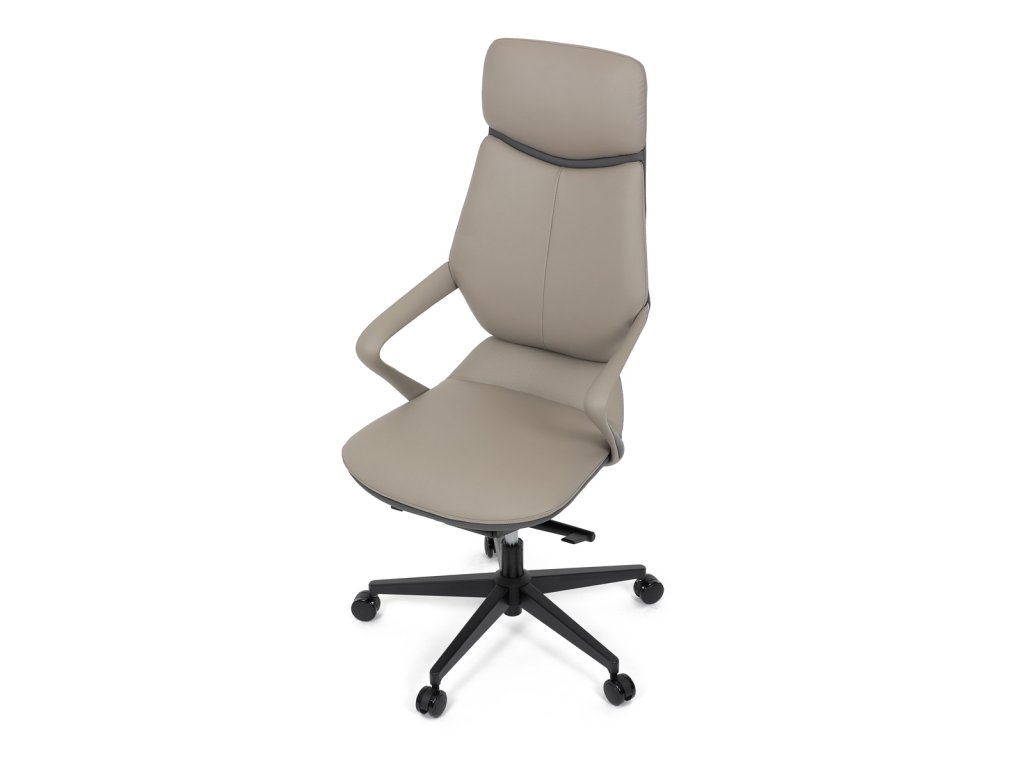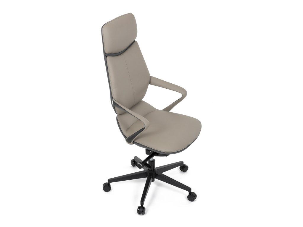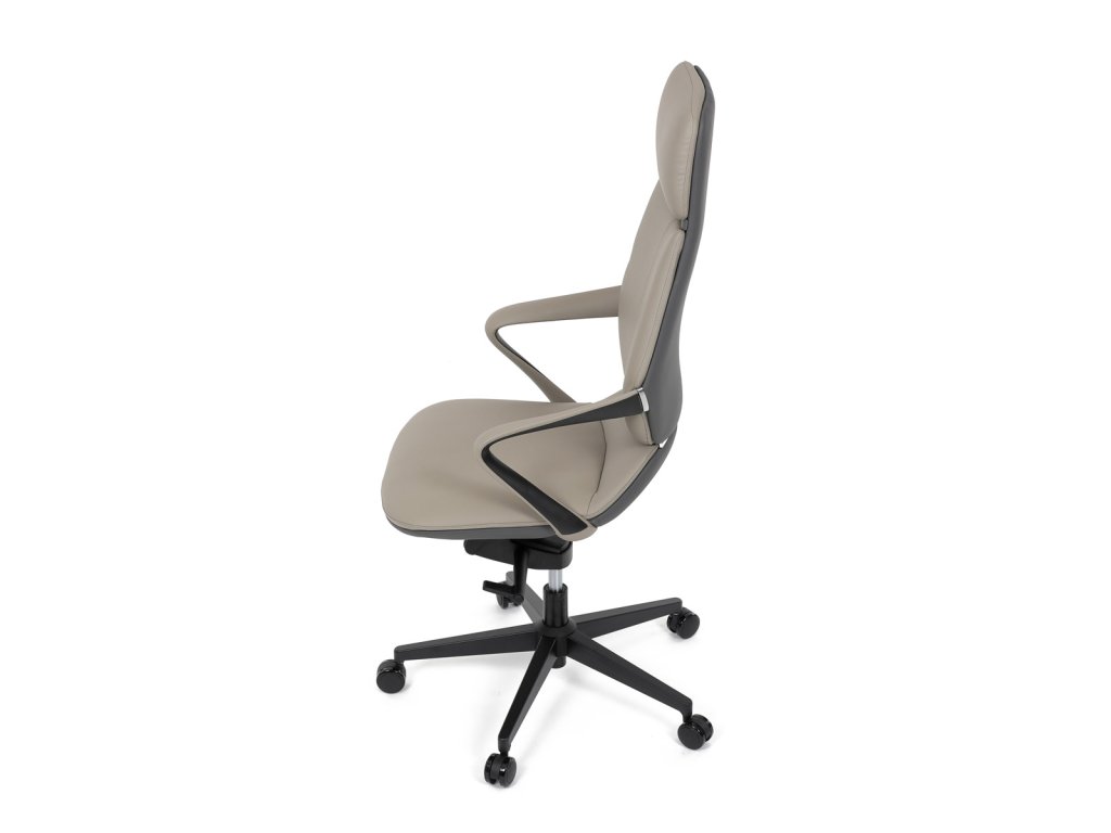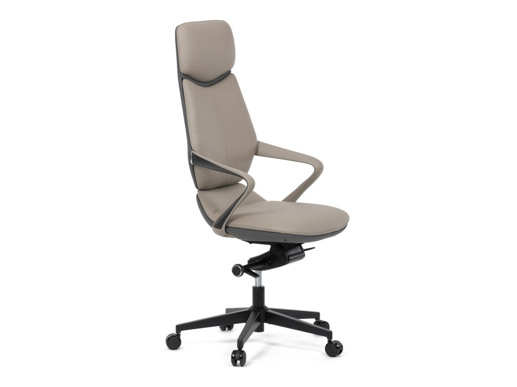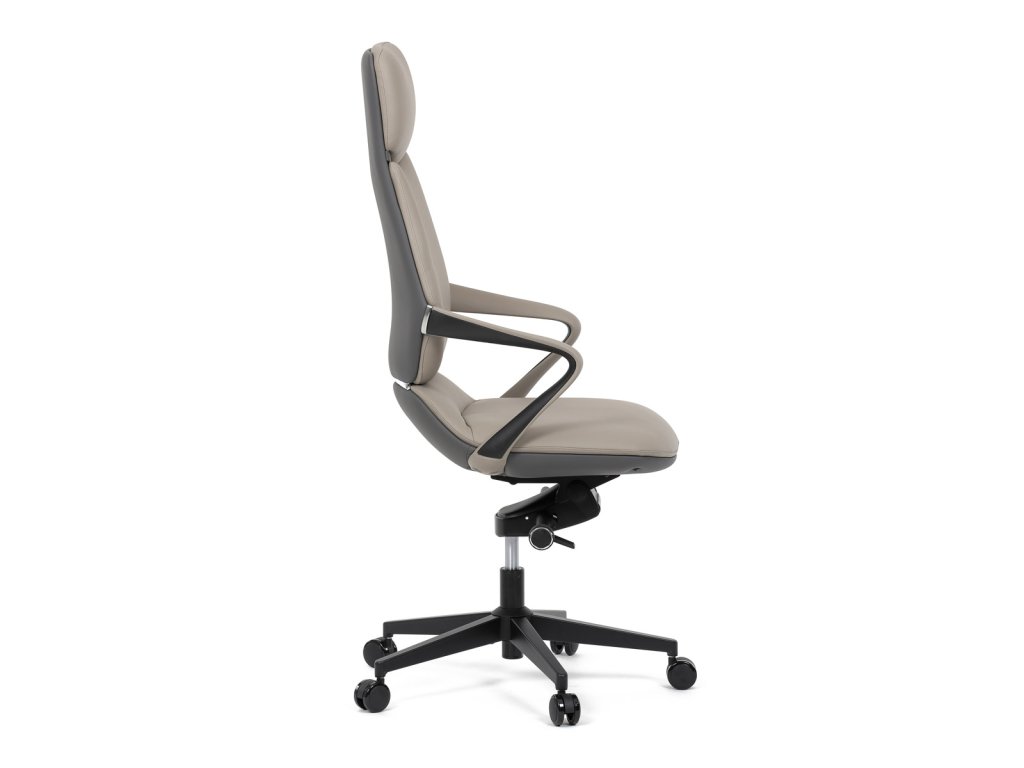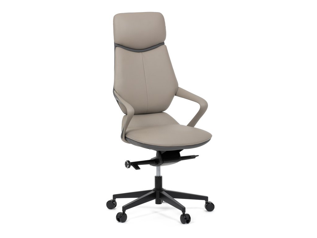 Kancelářské křeslo, šedá ekokůže, houpací mechanismus s aretací ve 4 polohách, kovový kříž, kolečka pro tvrdé povrchy
