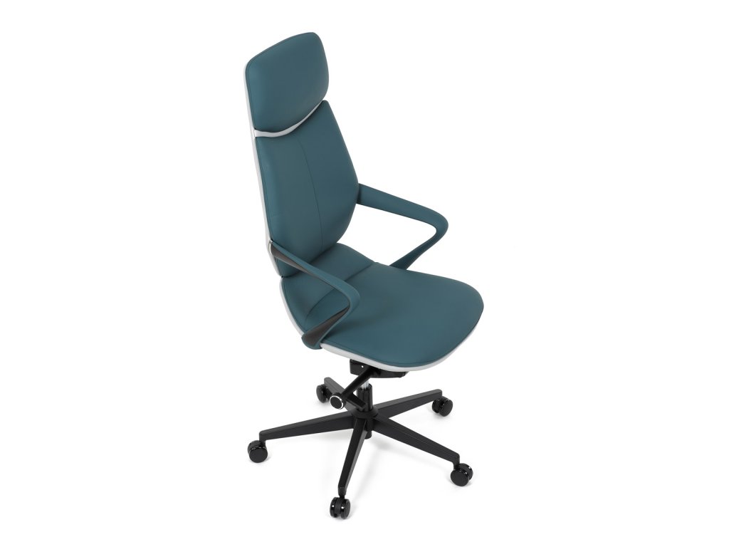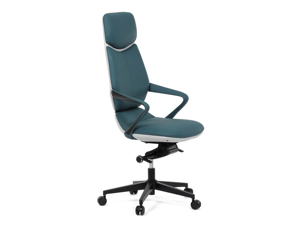 Kancelářské křeslo, zelená ekokůže, houpací mechanismus s aretací ve 4 polohách, kovový kříž, kolečka pro tvrdé povrchy
