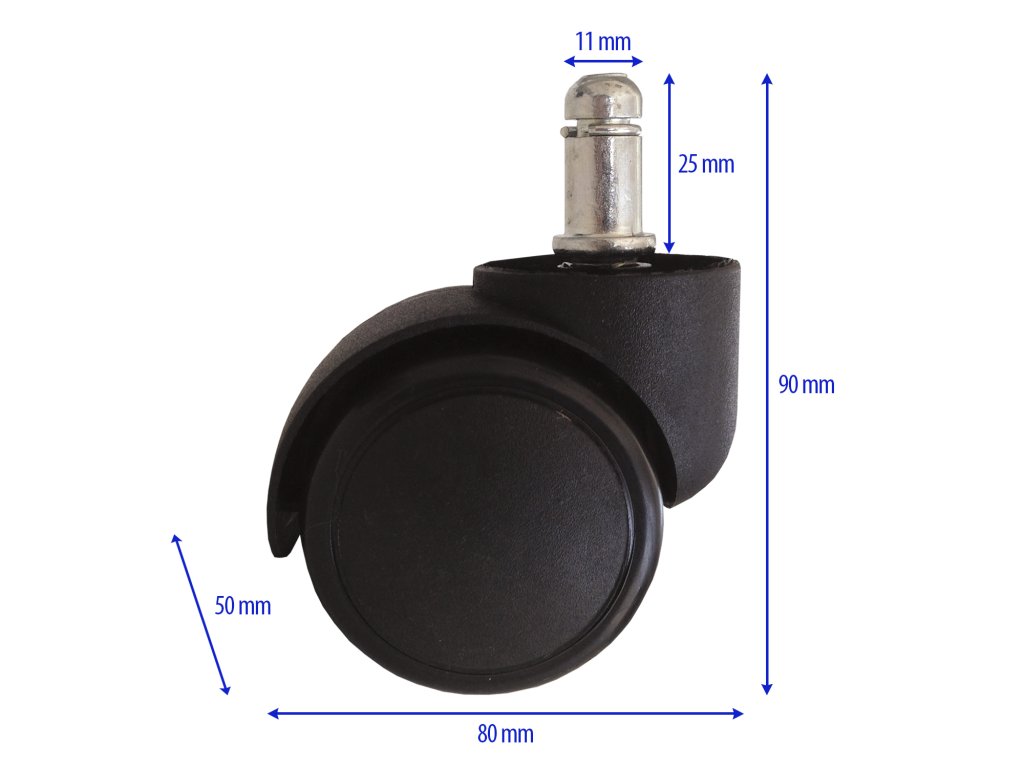 materiál PVC, barevné provedení černá sada obsahuje 5 kusů koleček vhodné pro většinu našich kancelářských židlí a křeselDoplňkové parametry