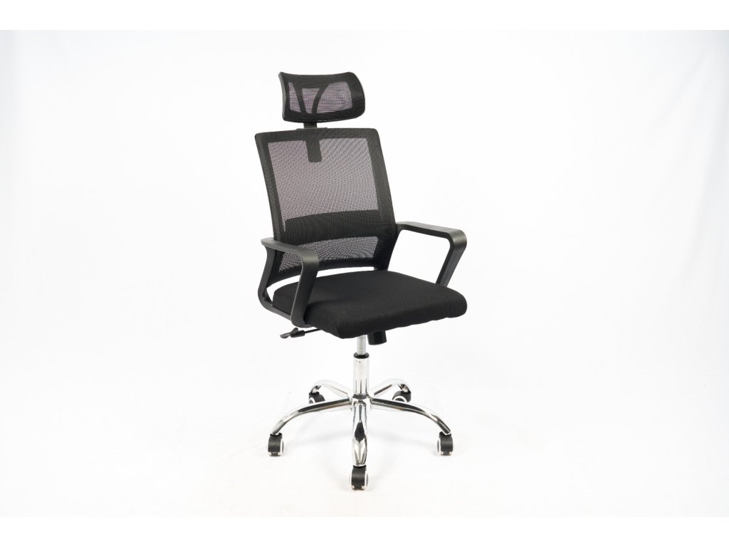 Kancelářské křeslo s membránovou síťkou, která umožňuje větrání zad při sezení, ocení každý majitel. Opěrka i sedák jsou v černém provedení. Nosný kříž je z chromu. Plastové kolečka jsou šetrné k podlaze. Křeslo je výškově nastavitelné pomocí plynového mechanizmu. Oceníte také výškově nastavitelnou opěrku hlavy. Výška je nastavitelná od 106-114cm.Doplňkové parametry