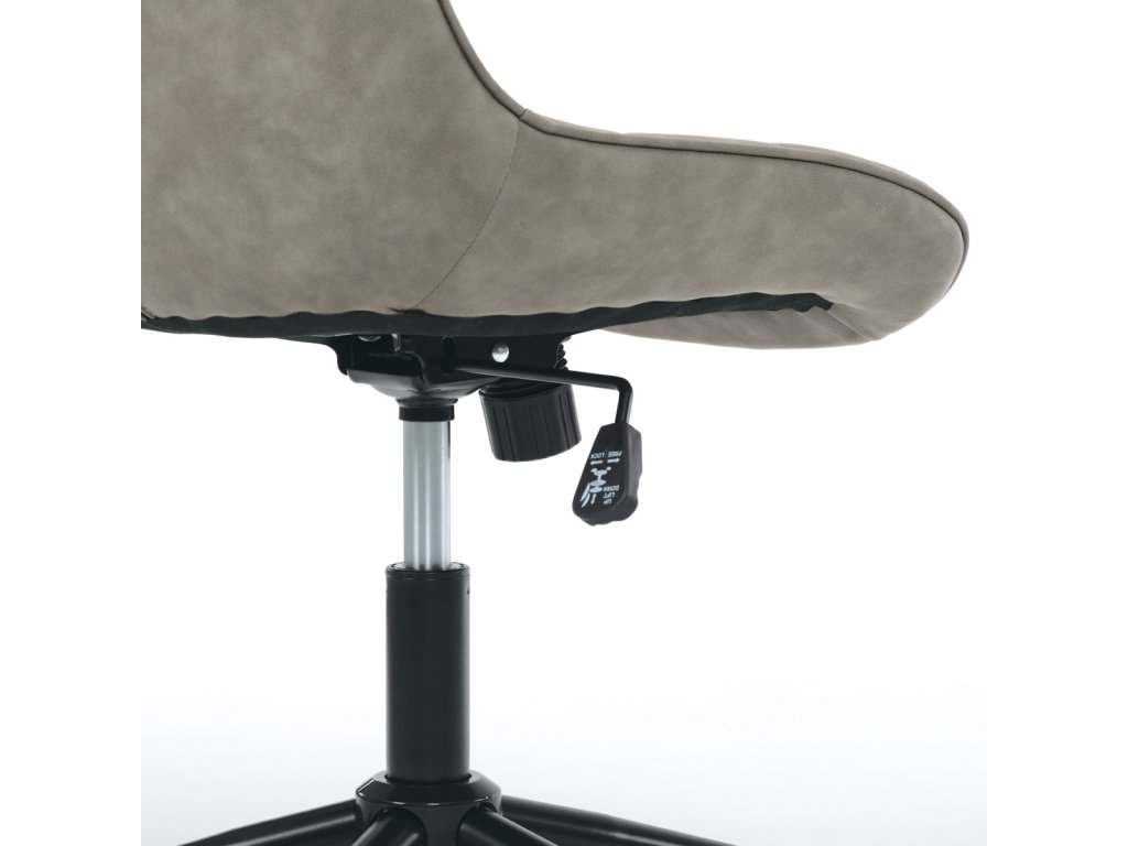 Kancelářská židle s béžovým čalouněním v dekoru broušené kůže nabízí kombinaci moderního vzhledu a komfortního sezení. Sedák i opěradlo jsou potažené prémiovou látkou, která je příjemná na dotek a snadno se udržuje. Černý kovový kříž zajišťuje stabilitu a pevnost celé židle, zatímco houpací mechanika umožňuje plynulé pohupování pro uvolnění během práce. Výškově nastavitelná sedací plocha umožňuje individuální přizpůsobení výšky sezení podle potřeby uživatele. Absence područek a opěrky hlavy dává židli minimalistický a vzdušný design vhodný do moderních pracovních prostor.Doplňkové parametry