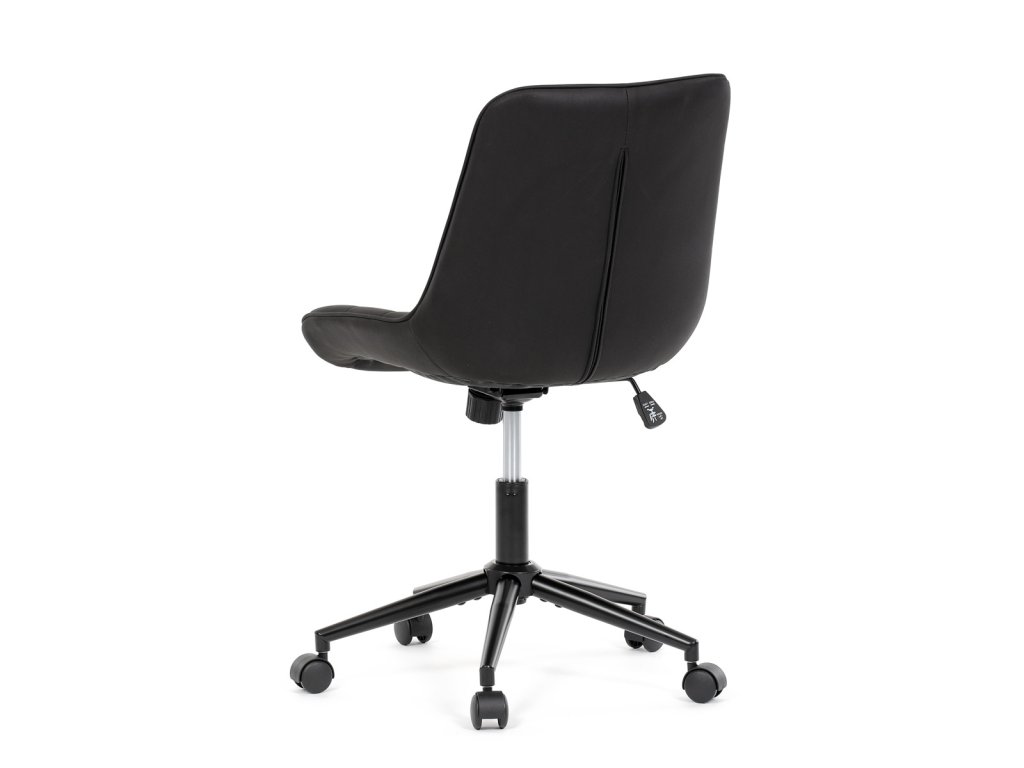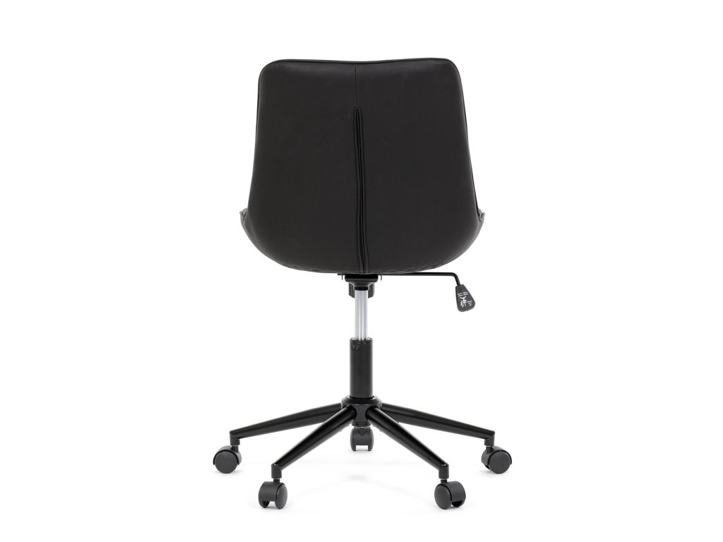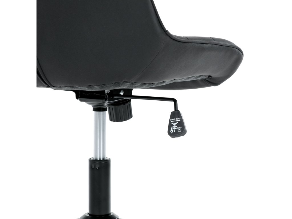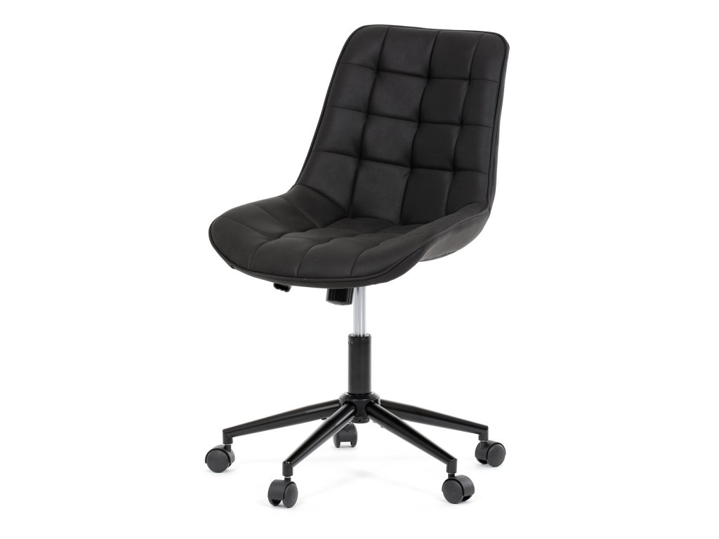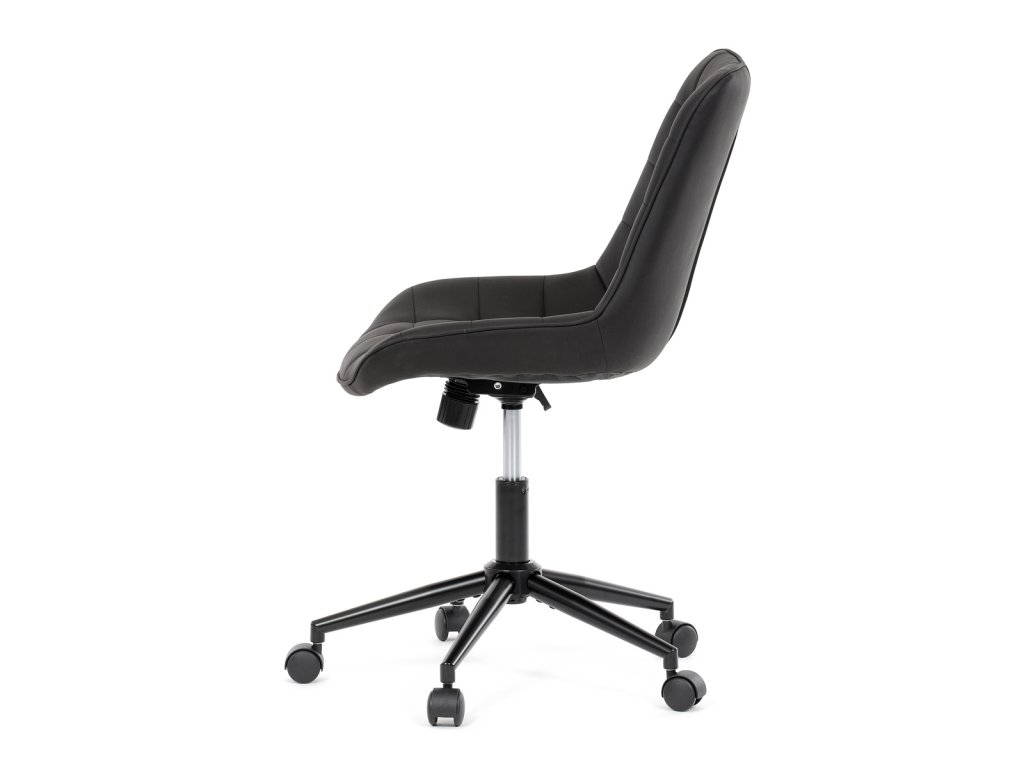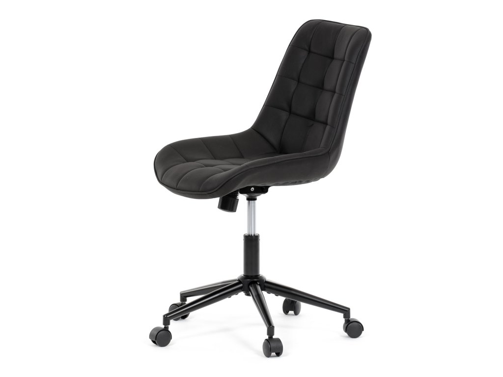 Kancelářská židle s černým potahem v dekoru broušené kůže nabízí moderní vzhled a komfortní sezení. Sedák i opěradlo jsou čalouněné kvalitní látkou, která je příjemná na dotek a snadno se udržuje. Pevný kovový kříž zajišťuje stabilitu a odolnost, zatímco houpací mechanika umožňuje plynulé naklápění pro uvolnění během práce. Výškově nastavitelná sedací plocha umožňuje přizpůsobení výšky podle individuálních potřeb uživatele. Absence područek a bederní opěrky podtrhuje minimalistický design vhodný do různých pracovních prostor.Doplňkové parametry