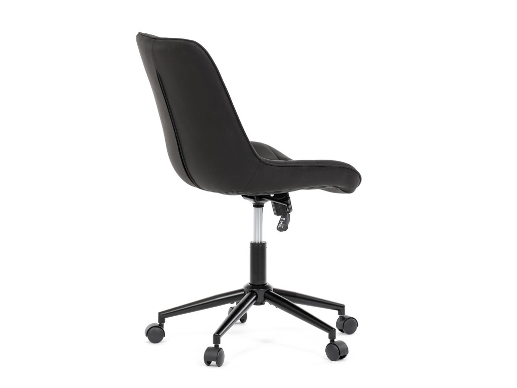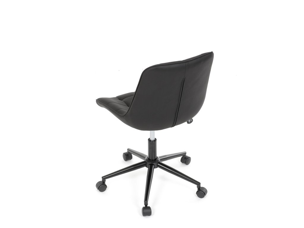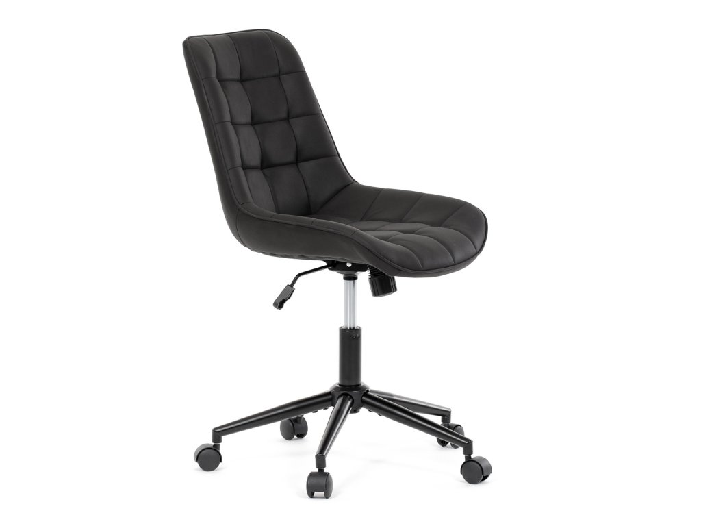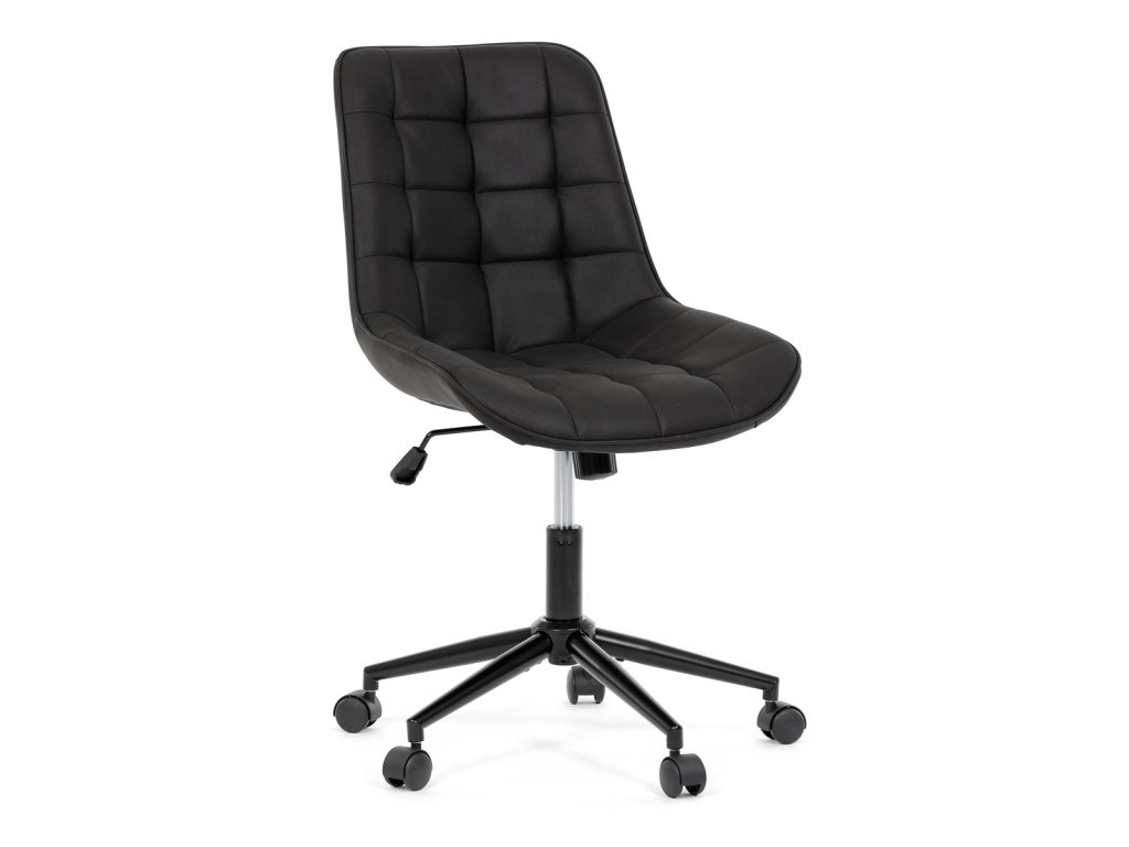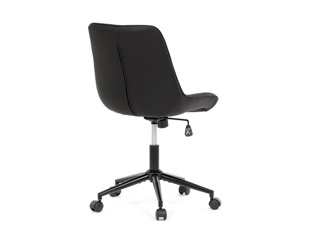 Kancelářská židle s černým potahem v dekoru broušené kůže nabízí moderní vzhled a komfortní sezení. Sedák i opěradlo jsou čalouněné kvalitní látkou, která je příjemná na dotek a snadno se udržuje. Pevný kovový kříž zajišťuje stabilitu a odolnost, zatímco houpací mechanika umožňuje plynulé naklápění pro uvolnění během práce. Výškově nastavitelná sedací plocha umožňuje přizpůsobení výšky podle individuálních potřeb uživatele. Absence područek a bederní opěrky podtrhuje minimalistický design vhodný do různých pracovních prostor.Doplňkové parametry