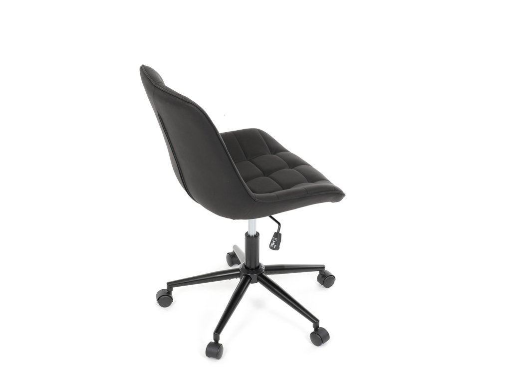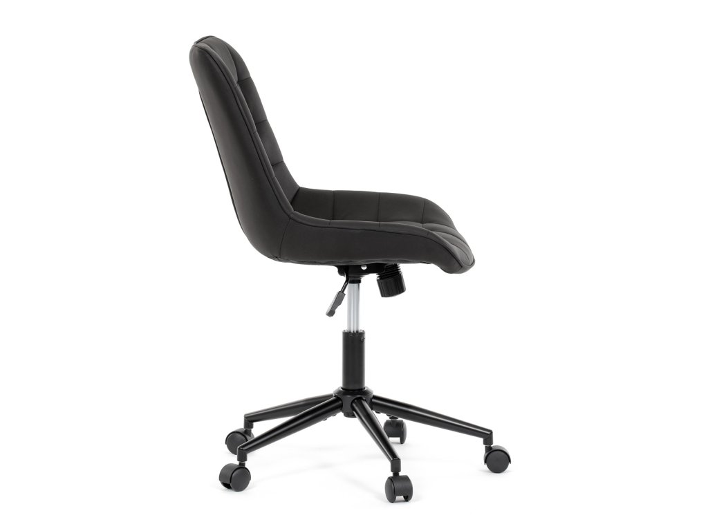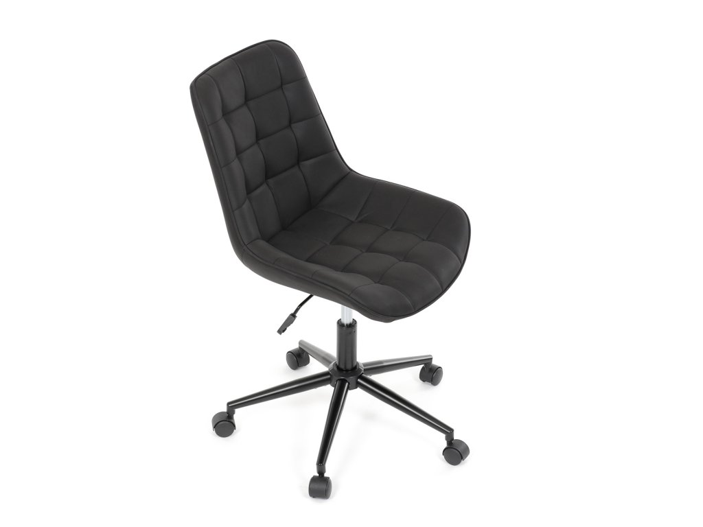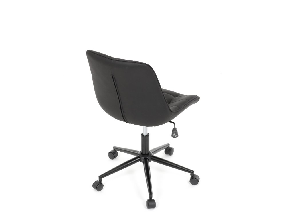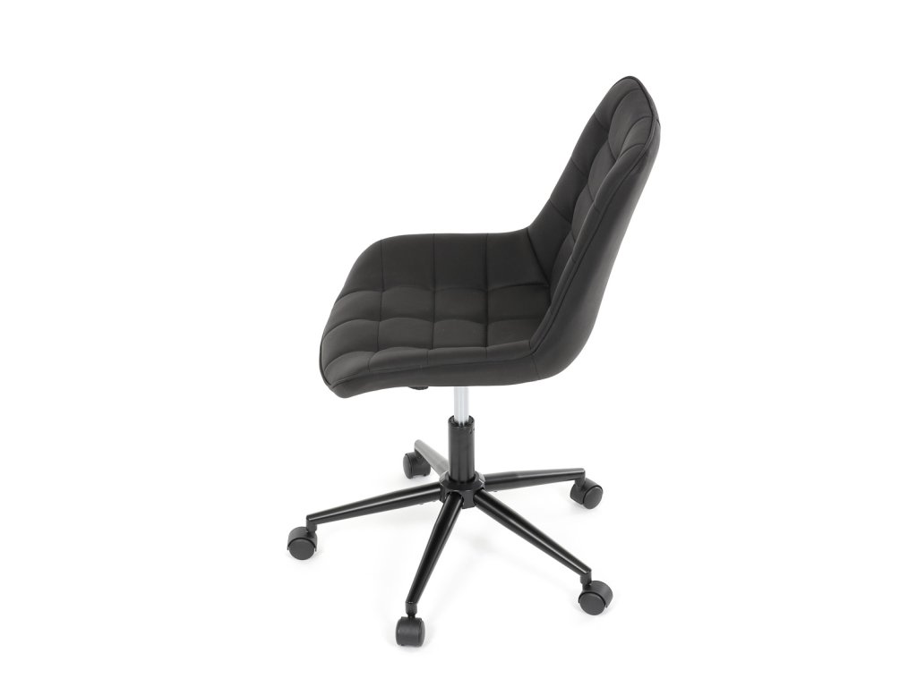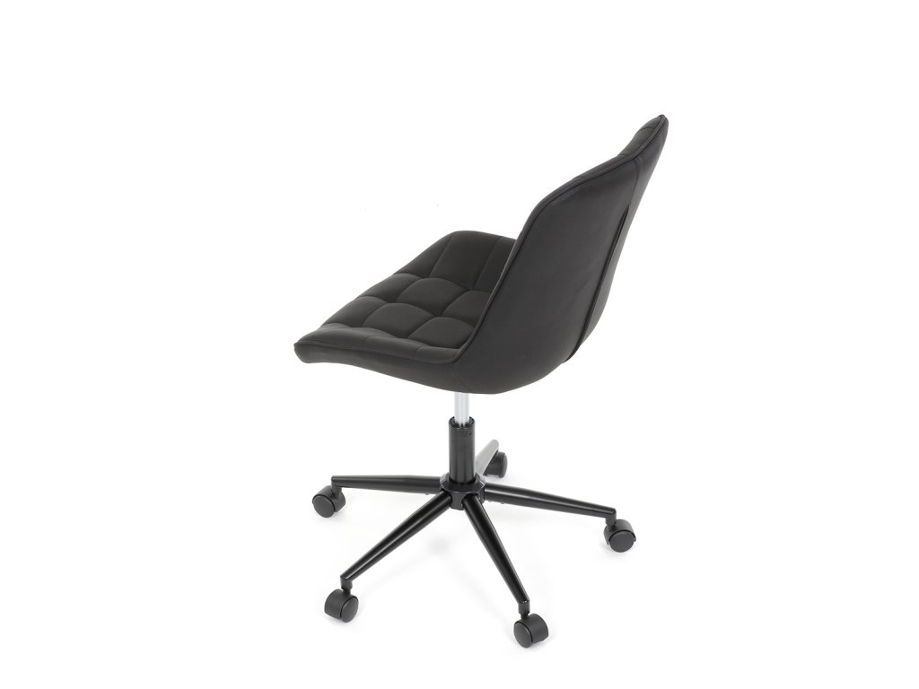 Kancelářská židle s černým potahem v dekoru broušené kůže nabízí moderní vzhled a komfortní sezení. Sedák i opěradlo jsou čalouněné kvalitní látkou, která je příjemná na dotek a snadno se udržuje. Pevný kovový kříž zajišťuje stabilitu a odolnost, zatímco houpací mechanika umožňuje plynulé naklápění pro uvolnění během práce. Výškově nastavitelná sedací plocha umožňuje přizpůsobení výšky podle individuálních potřeb uživatele. Absence područek a bederní opěrky podtrhuje minimalistický design vhodný do různých pracovních prostor.Doplňkové parametry