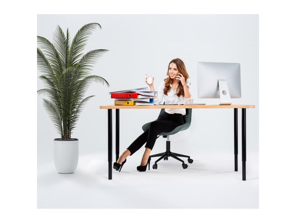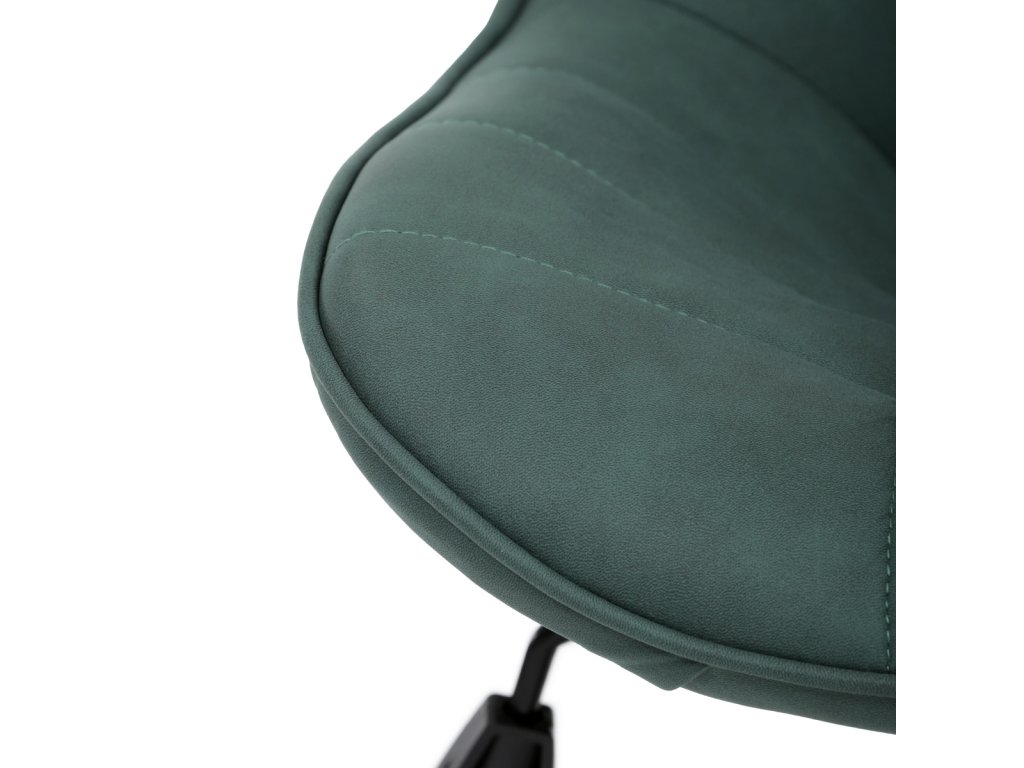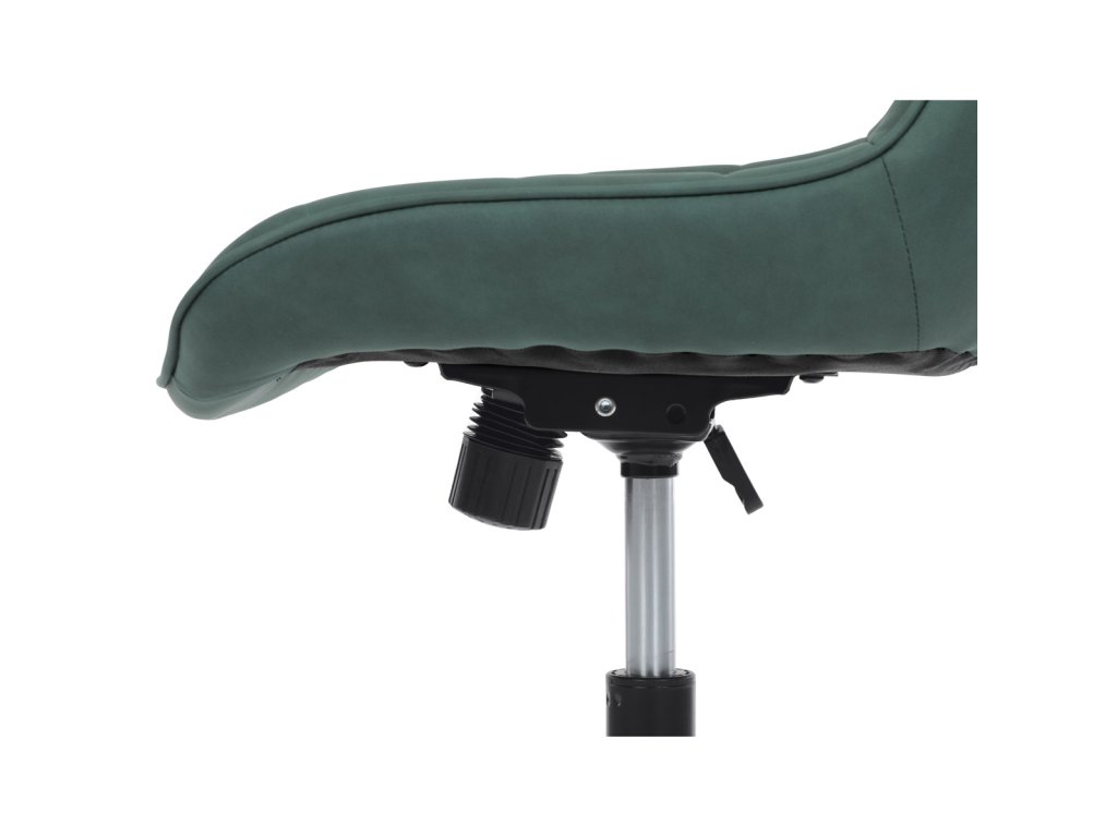 Kancelářská židle v zelené látce s dekorem broušené kůže nabízí komfortní sezení díky výškově nastavitelné sedací ploše a houpacímu mechanismu, který umožňuje mírné pohupování pro uvolnění během práce. Sedák i opěradlo jsou čalouněné prémiovou látkou, která kombinuje příjemný vzhled s kvalitním zpracováním. Pevný černý kovový kříž zajišťuje stabilitu a odolnost celé židle. Absence područek a bederní opěrky přispívá k jednoduchému a modernímu designu, který se snadno integruje do různých pracovních prostorů. Židle je navržena tak, aby podporovala ergonomii a dlouhodobý komfort při práci.Doplňkové parametry
