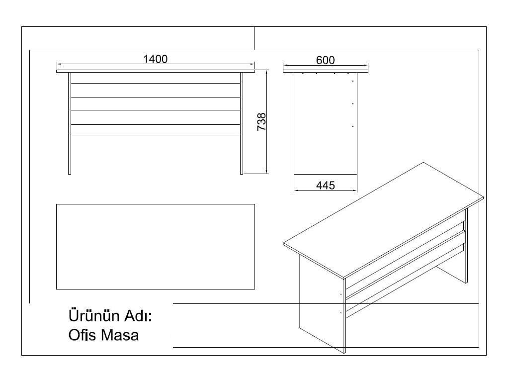 - Psací stůl: 140 x 60 x 73,8 cm
