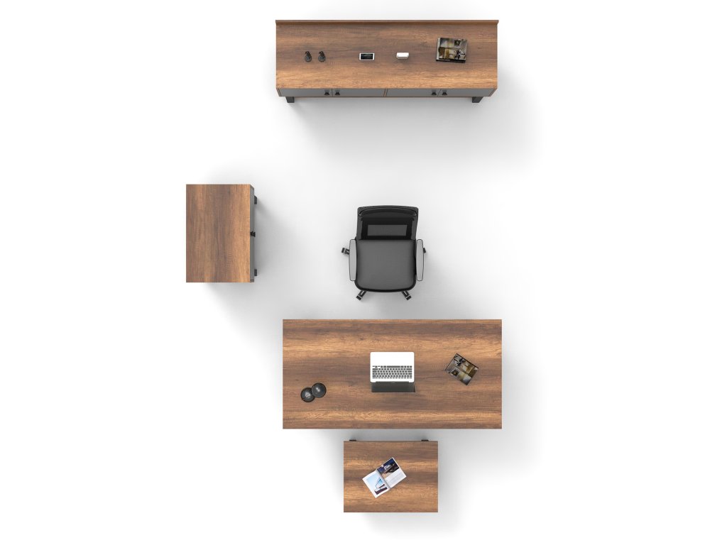 je navržen pro ty, kteří hledají moderní pracovní prostředí s dostatkem úložného prostoru a jedinečným vzhledem. Psací stůl nabízí dostatek místa pro práci, zatímco konferenční stolek doplňuje set a slouží jako praktický prostor pro schůzky nebo odkládání dokumentů. Malá komoda poskytuje organizovaný prostor pro pracovní potřeby, a konzole rozšiřuje úložné možnosti, čímž zajišťuje maximální komfort a přehlednost.