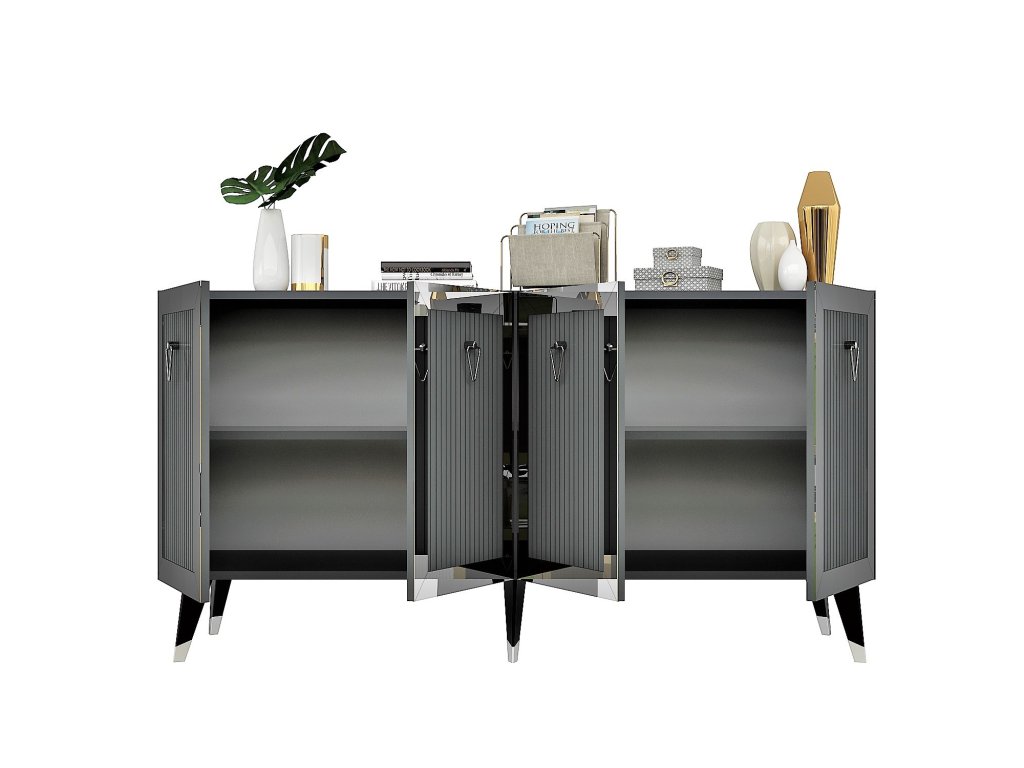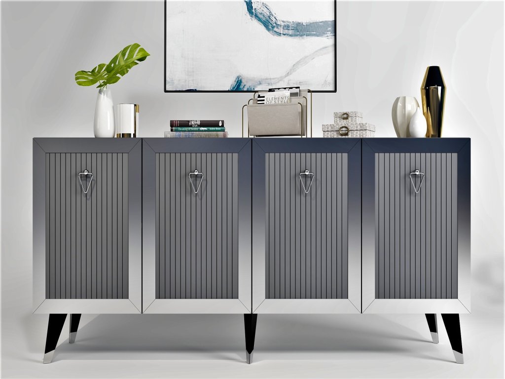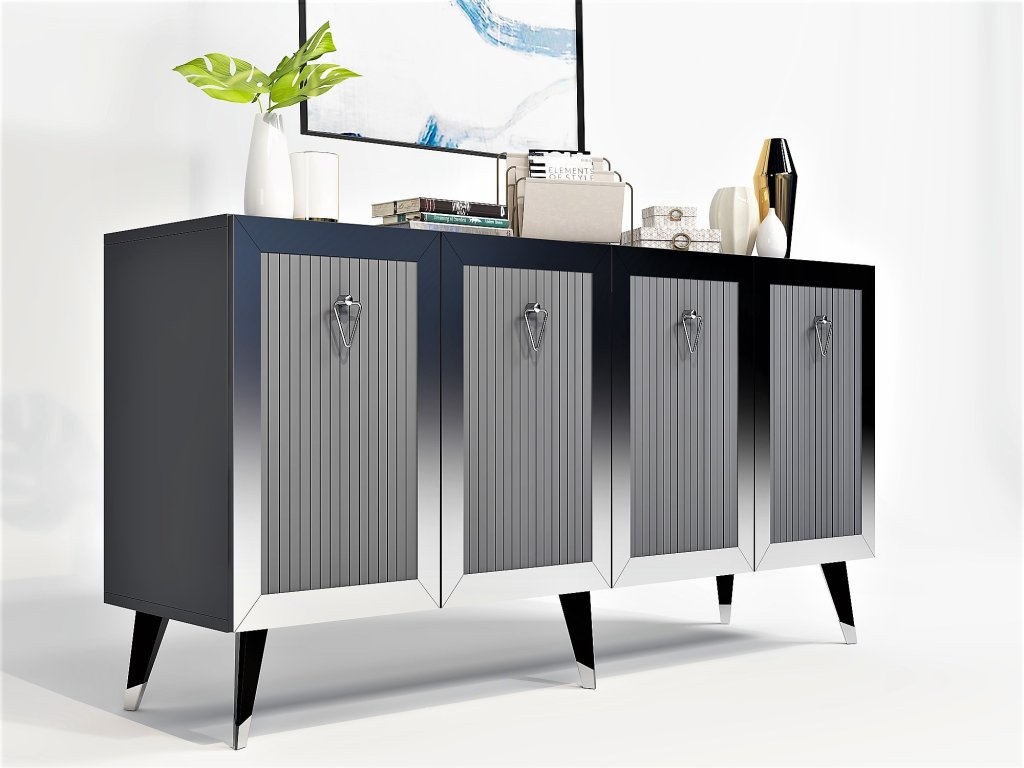 Díky svému elegantnímu a modernímu designu se tato komoda bez problémů začlení do jakéhokoli interiéru, ať už moderního nebo tradičního. Kombinace antracitové a stříbrné barvy vytváří výrazný kontrast, díky čemuž se stane ústředním bodem každé místnosti.
