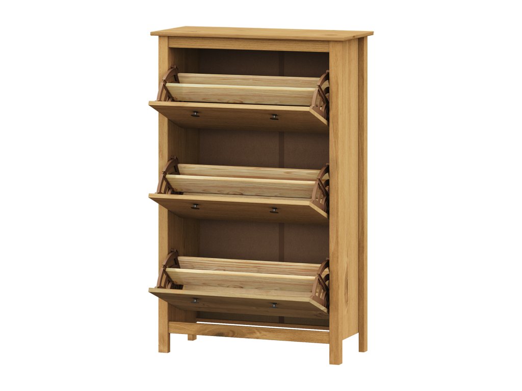 materiál masiv borovice voskovaná v medovém odstínu kovové úchytky v barevném provedení černěná mosaz 3 dvouřadé výklopyDoplňkové parametry