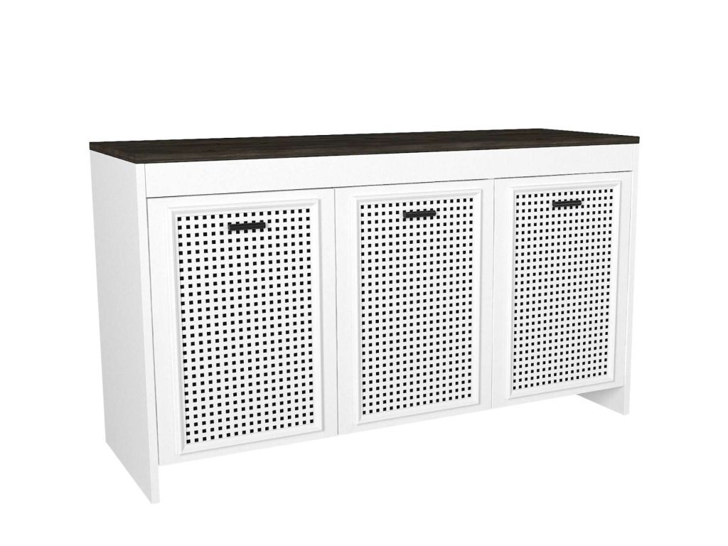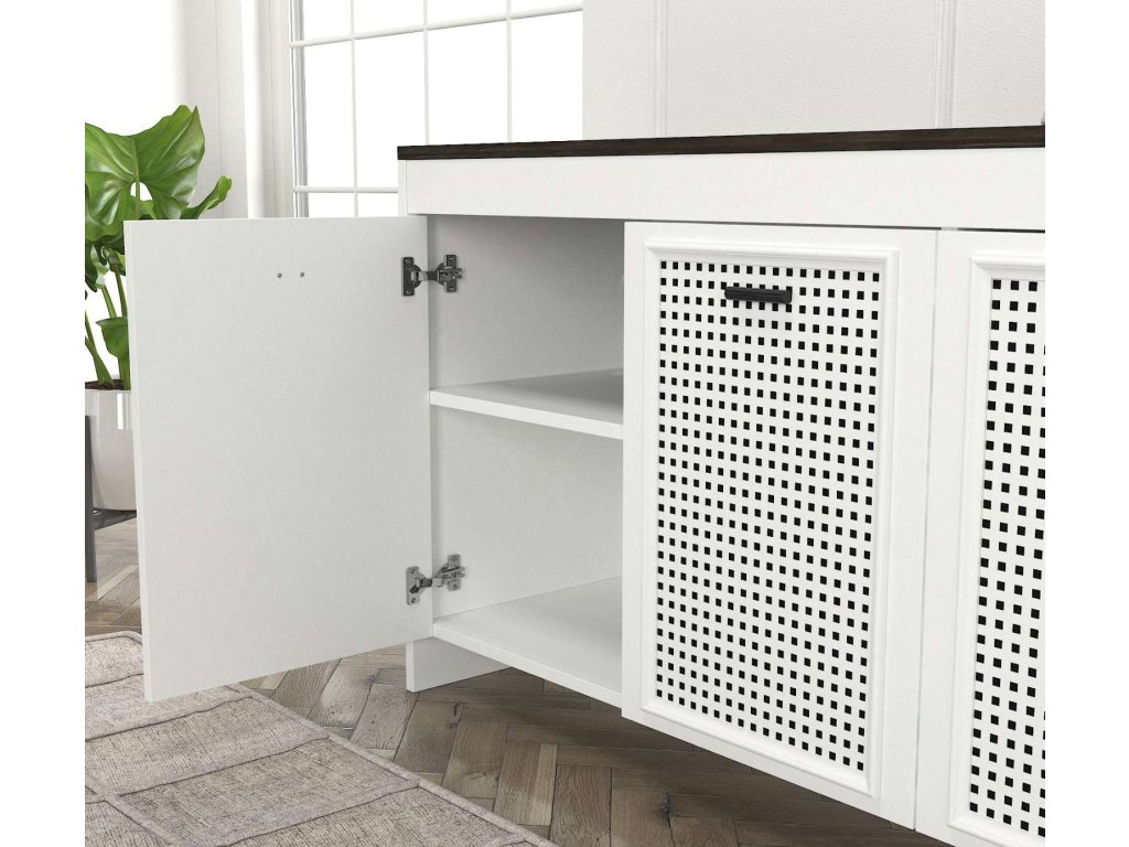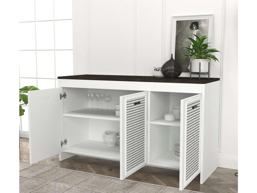 Komoda je vyrobena z kvalitního LTD materiálu s tloušťkou 18 mm, což zajišťuje její pevnost a dlouhou životnost. Elegantní kombinace bílé a tmavě hnědé barvy dodává komodě luxusní a sofistikovaný vzhled, který se hodí do jakéhokoliv interiéru. Komoda je vybavena třemi dvířky, které poskytují dostatek úložného prostoru pro vaše potřeby.