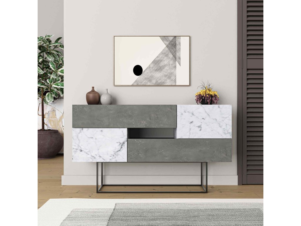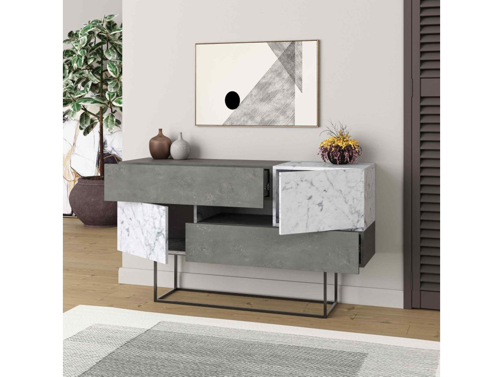 Představujeme - konzolový stolek, který ztělesňuje harmonii retro šedé a bílé Carrara. Jedná se o dokonalý doplněk pro vaši předsíň či obývací pokoj, který přidává notu luxusu a sofistikovanosti.