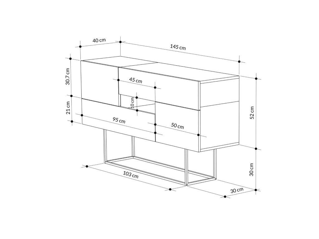 Rozměry: 82 x 145 x 40 cm - ideální velikost, jež nabízí dostatek úložného prostoru aniž by ovlivnila prostorový dojem místnosti.