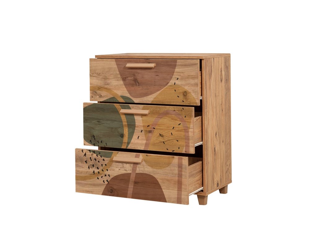 Tato elegantní komoda je vybavena třemi prostornými zásuvkami, které nabízejí ideální řešení pro ukládání drobností i větších předmětů. MDF úchytky a dekor borovice podtrhují luxusní vzhled, zatímco plastové nohy zajišťují stabilitu a snadnou údržbu.