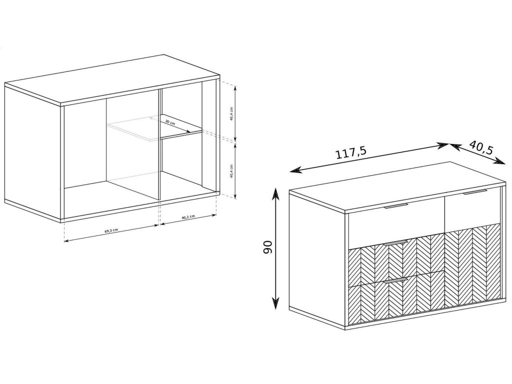 Komoda 2 dveře + 4 zásuvky TORINO kovové úchytky