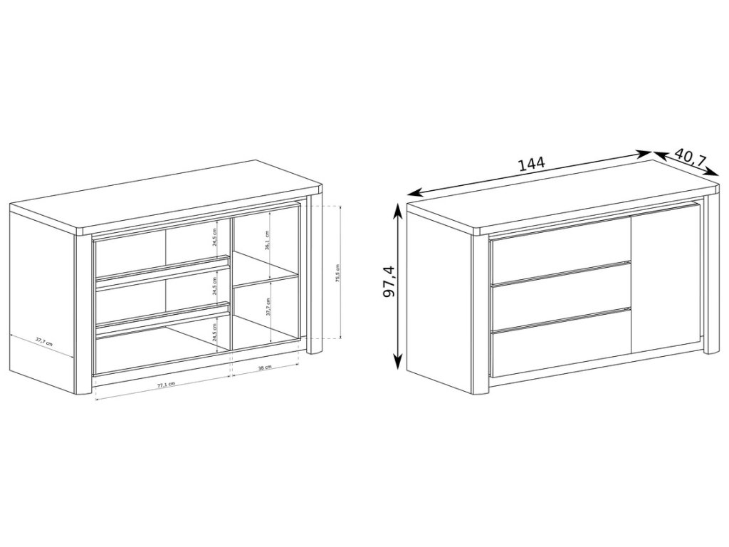Komoda jednodveřová se třemi zásuvkami s LED osvětlením v moderním bezúchytovém provedení. Kolekce nábytku v sobě spojuje jednoduchost, originální vzhled a funkčnost. Nábytek je vyroben z kvalitního lamina ohraničeného ABS páskou, korpus je v barevném provedení dub ribbeck, dvířka a zásuvky jsou v barvě bílá lesk, doplněno lištou z MDF. Zásuvky i dvířka jsou vybaveny systémem tichého dovírání. Kolekce se skládá z mnoha prvků a tento široký výběr Vám zaručí sestavit si nábytek podle svých vlastních představ a přání. Dodáváme v demontovaném stavu.Doplňkové parametry