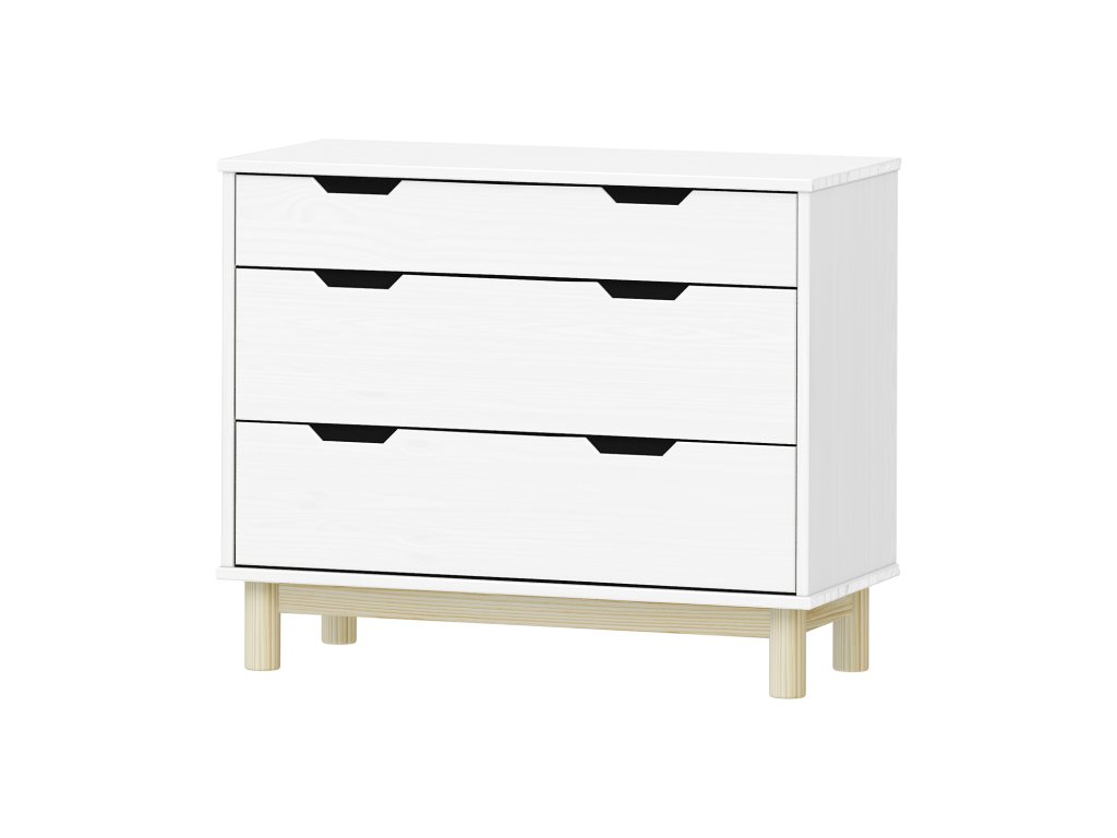materiál masiv borovice, barevné provedení bílý lak 1 menší a 2 větší zásuvky s kovovými pojezdyDoplňkové parametry