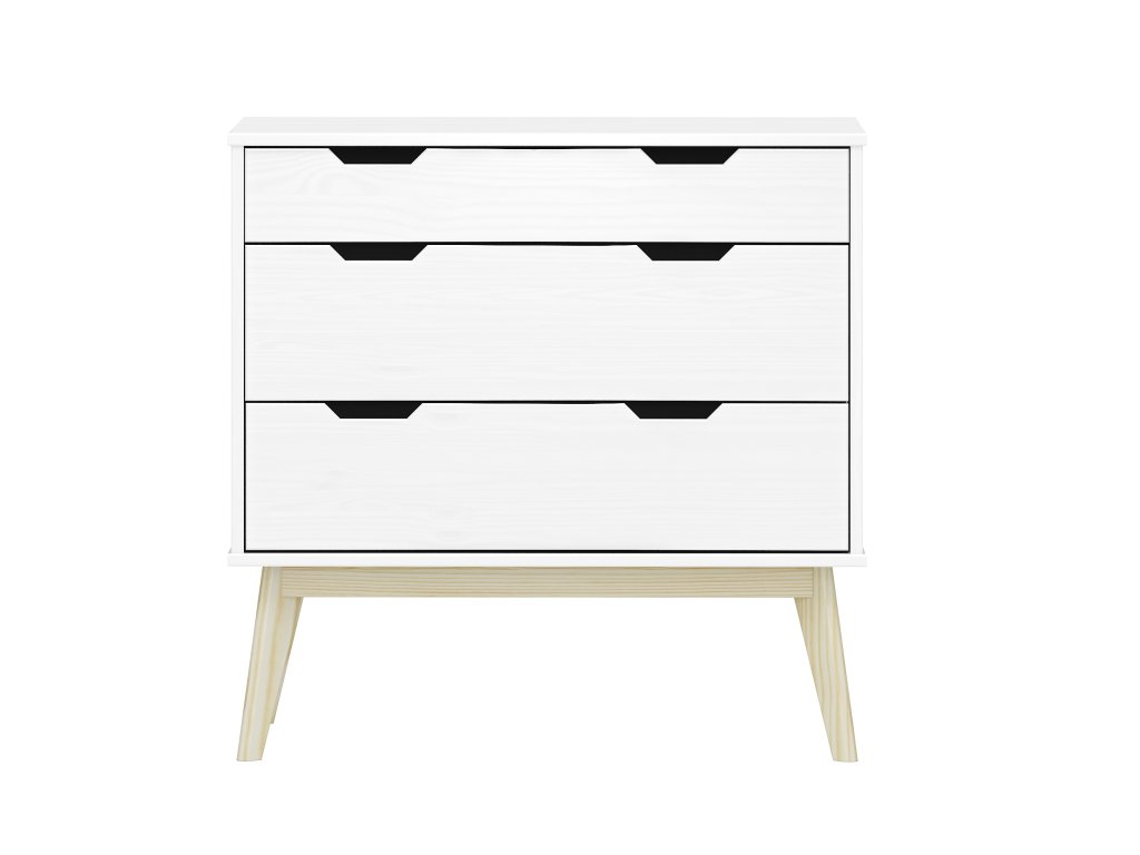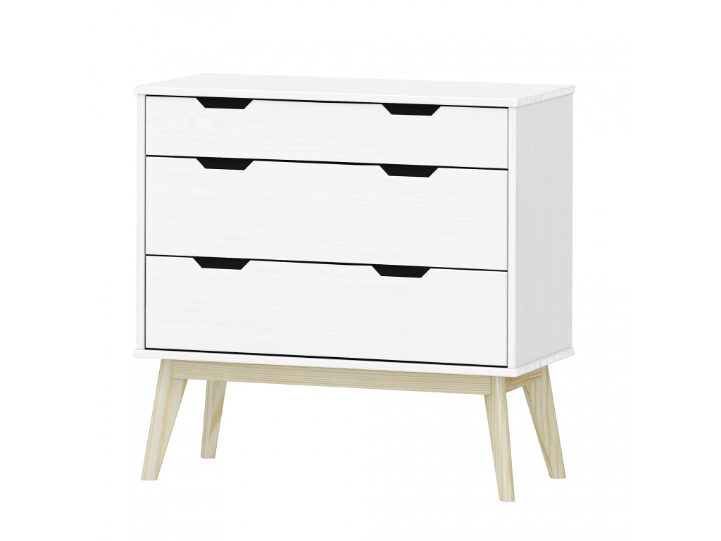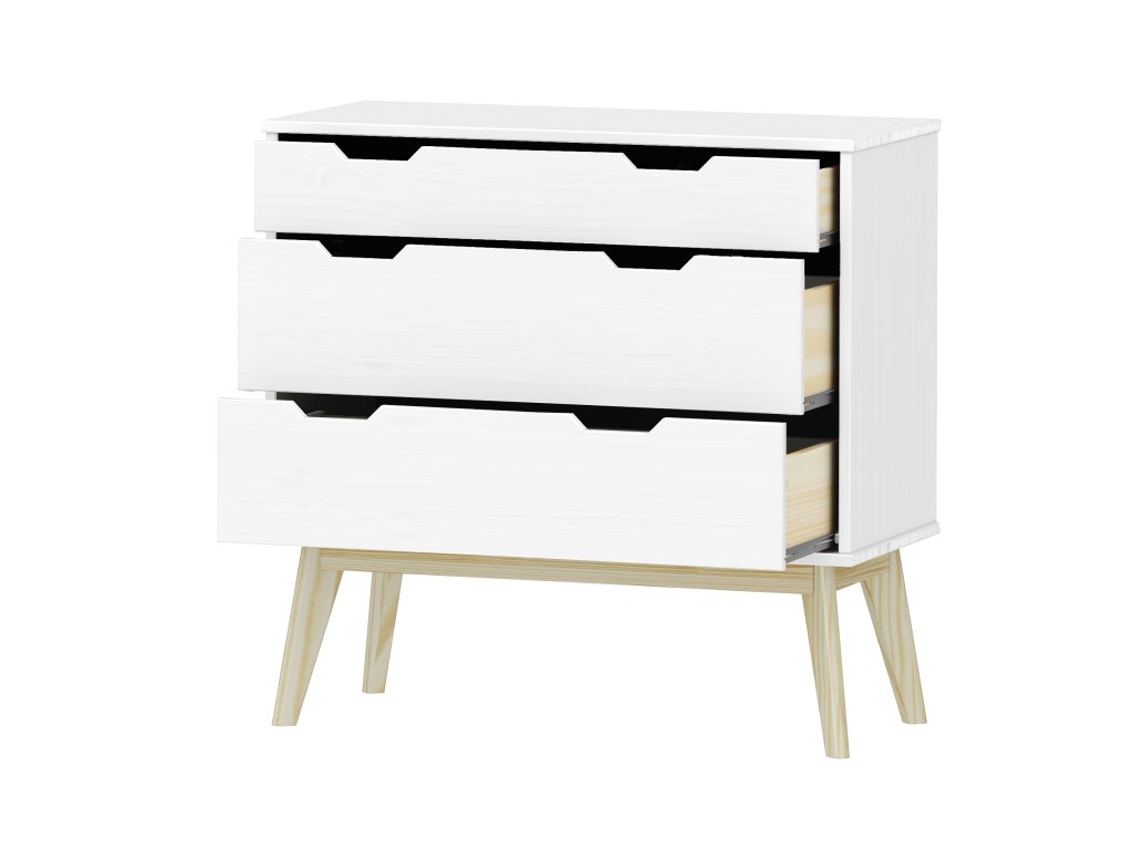 materiál masiv borovice, barevné provedení bílý lak 1 menší a 2 větší zásuvky s kovovými pojezdyDoplňkové parametry