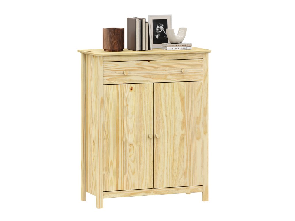 materiál masiv borovice, lakované provedení 1 zásuvka s kovovými pojezdy, 2 plné dveře, 1 police maximální nosnosti uvedeny v návodu k montážiDoplňkové parametry