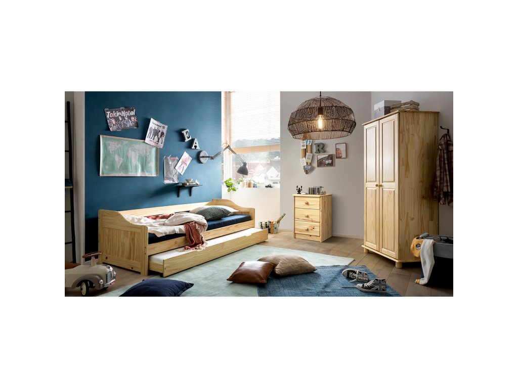 materiál masiv borovice, lakované provedení 3 zásuvky s kovovými pojezdy, hloubka zásuvky 27,5 cmDoplňkové parametry