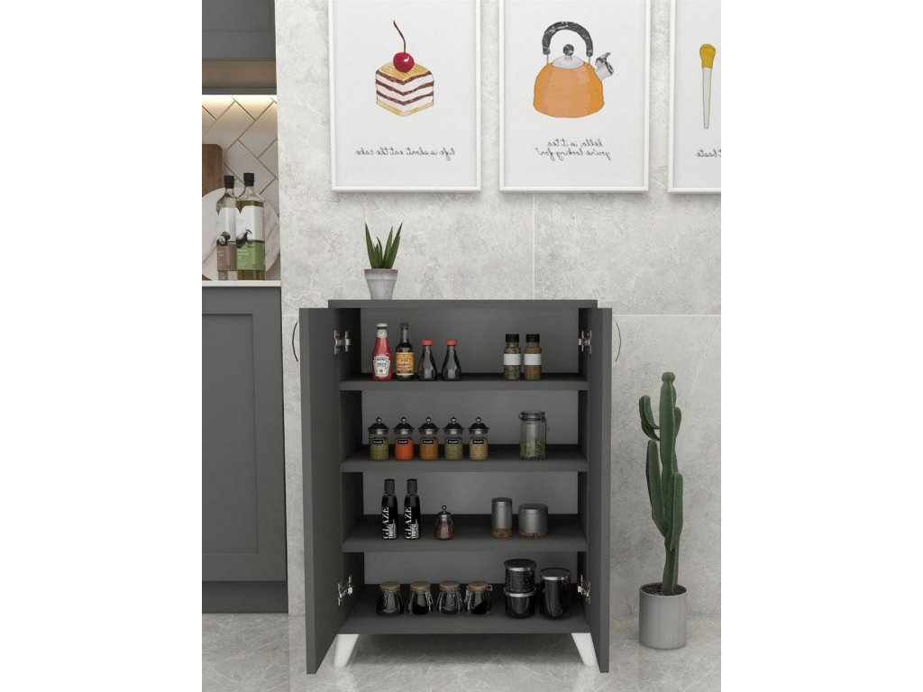Dvoudveřová multifunkční komoda v moderním stylu je vyrobena z kvalitní desky LTD nenáročné na údržbu, v barevném provedení antracit. Tloušťka materiálu - 18 mm. Uvnitř komody jsou police. Dodáváme v demontovaném stavu.Doplňkové parametry