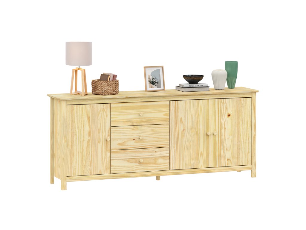 materiál masiv borovice, lakované provedení 3 zásuvky s kovovými pojezdy, 3 plné dveře, 2 police maximální nosnosti uvedeny v návodu k montážiDoplňkové parametry