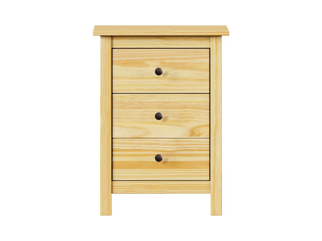 materiál masiv borovice, lakované provedení kovové úchytky v barevném provedení černěná mosaz tři zásuvky s kovovými pojezdyDoplňkové parametry