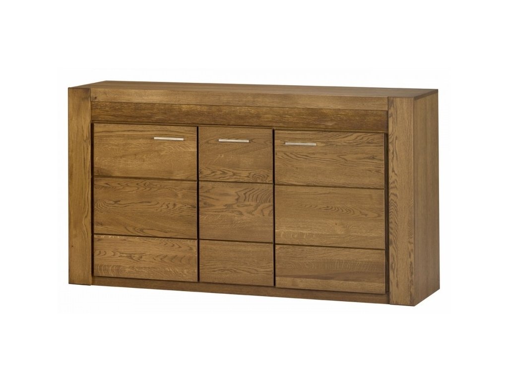Komoda 3-dveřová. Vsazením osvětlení do ozdobné rýhované lišty, které je v ceně, je zvýrazněn rustikální vzhled masivního dřeva. Celá řada se vyznačuje elegancí a jednoduchými tvary, které zaručují plné využití prostoru. Nábytek je v barvě dub rustical, vyroben z kvalitního masivního dřeva, korpusy vnitřní jsou z lamina, korpusy vnější jsou z přírodní dýhy. Elegantní úchyty jsou z kovu. Dodáváme ve smontovaném stavu.Doplňkové parametry