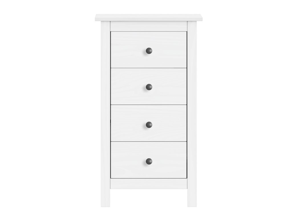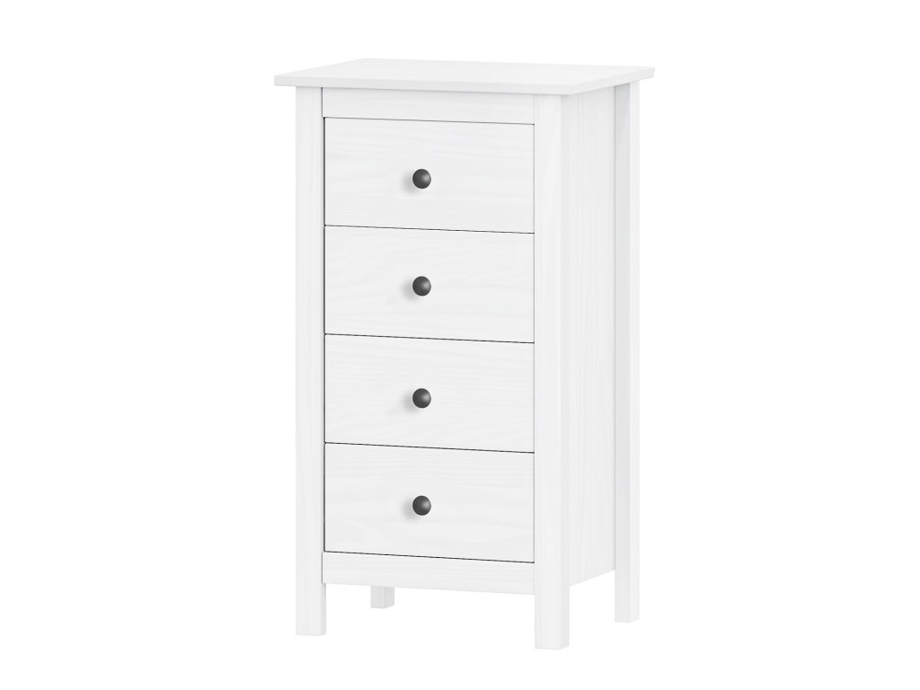 materiál masiv borovice, barevné provedení bílý lak kovové úchytky v barevném provedení černěná mosaz 4 zásuvky s kovovými pojezdyDoplňkové parametry