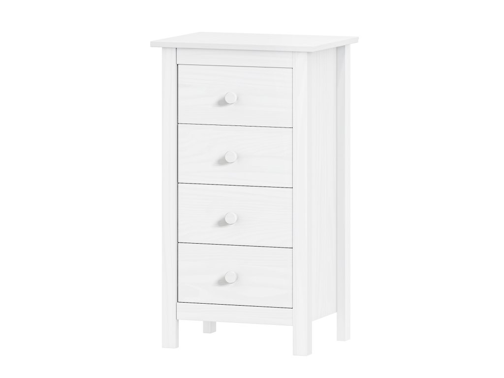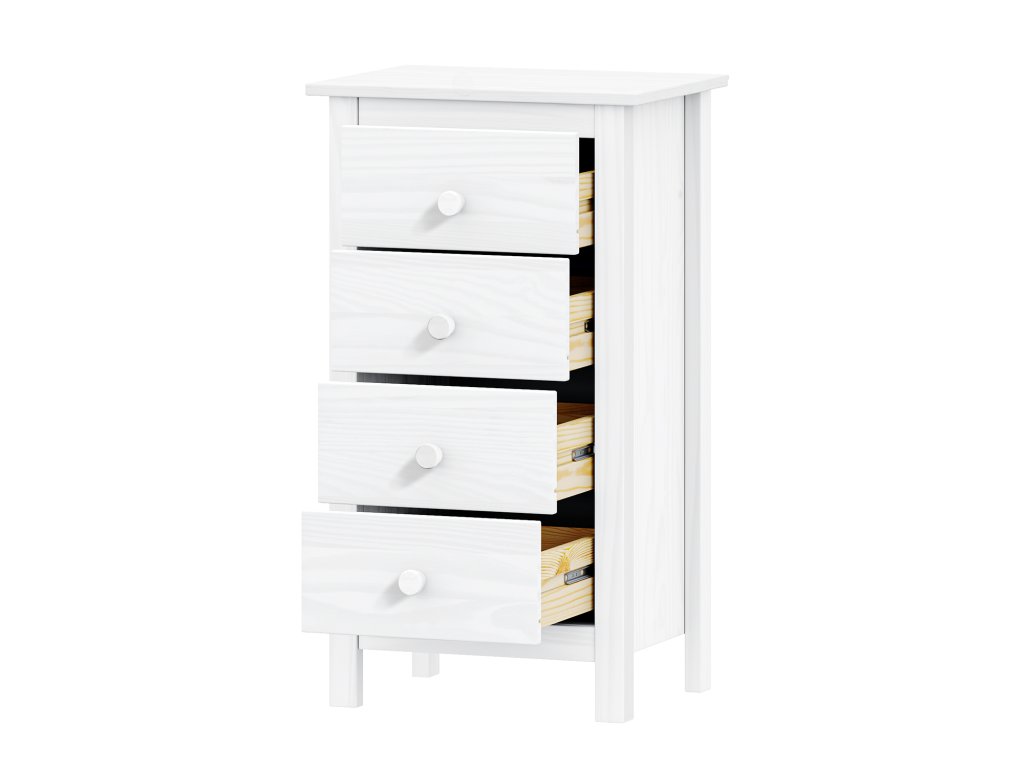 materiál masiv borovice, barevné provedení bílý lak 4 zásuvky s kovovými pojezdyDoplňkové parametry