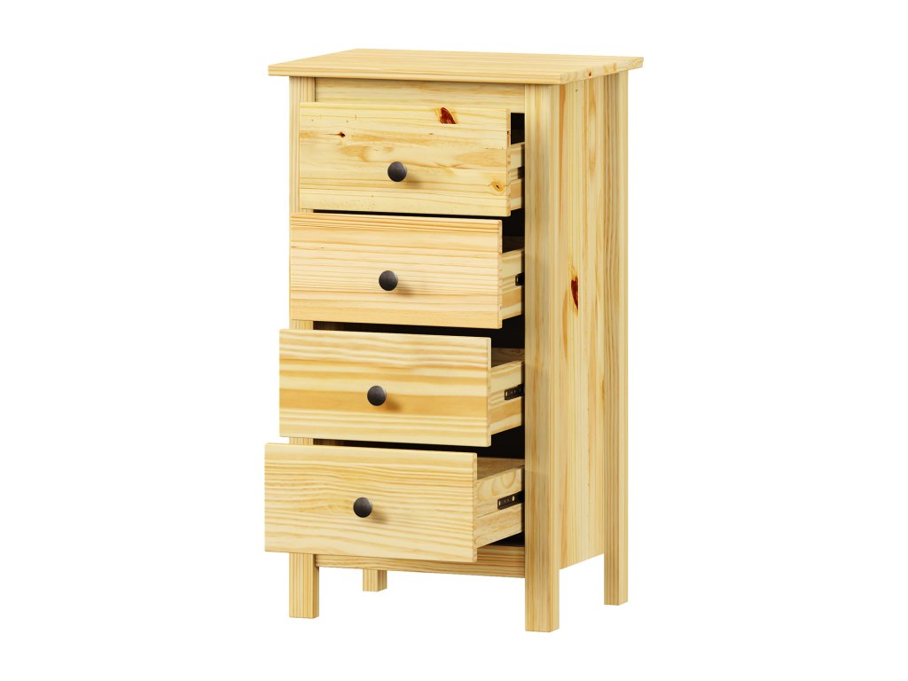 materiál masiv borovice, lakované provedení kovové úchytky v barevném provedení černěná mosaz 4 zásuvky s kovovými pojezdyDoplňkové parametry