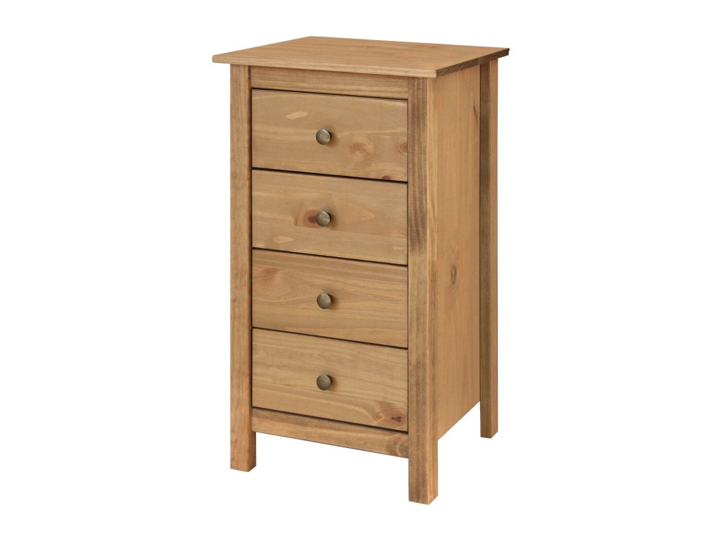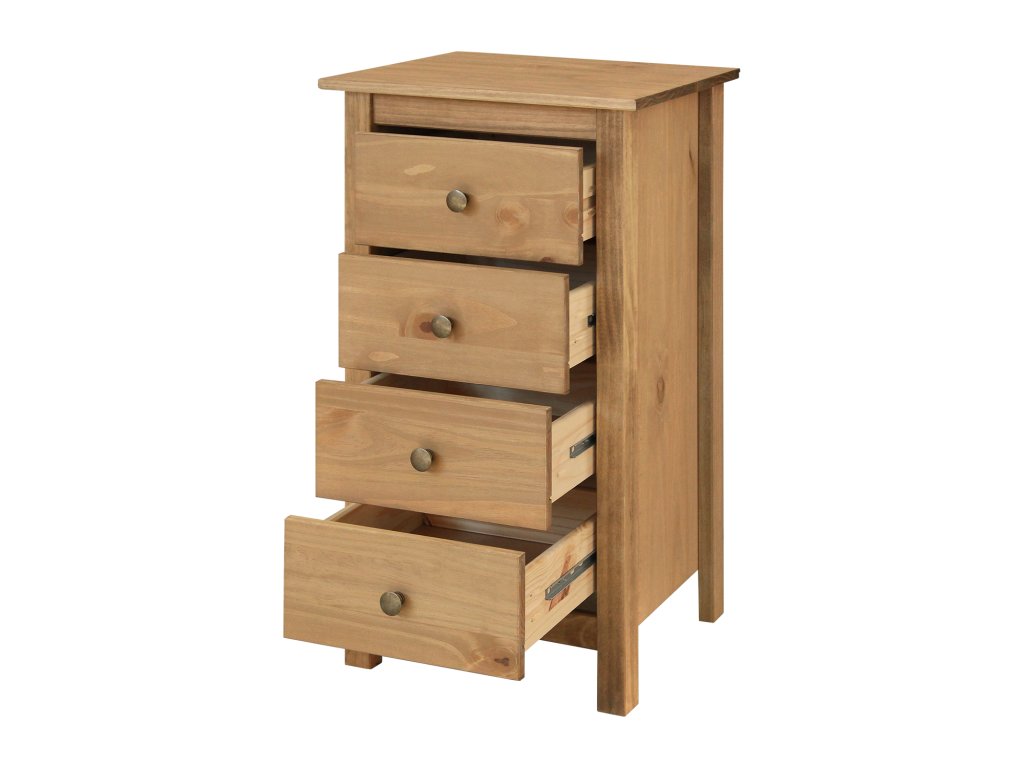 materiál masiv borovice voskovaná v medovém odstínu kovové úchytky v barevném provedení černěná mosaz 4 zásuvky s kovovými pojezdyDoplňkové parametry